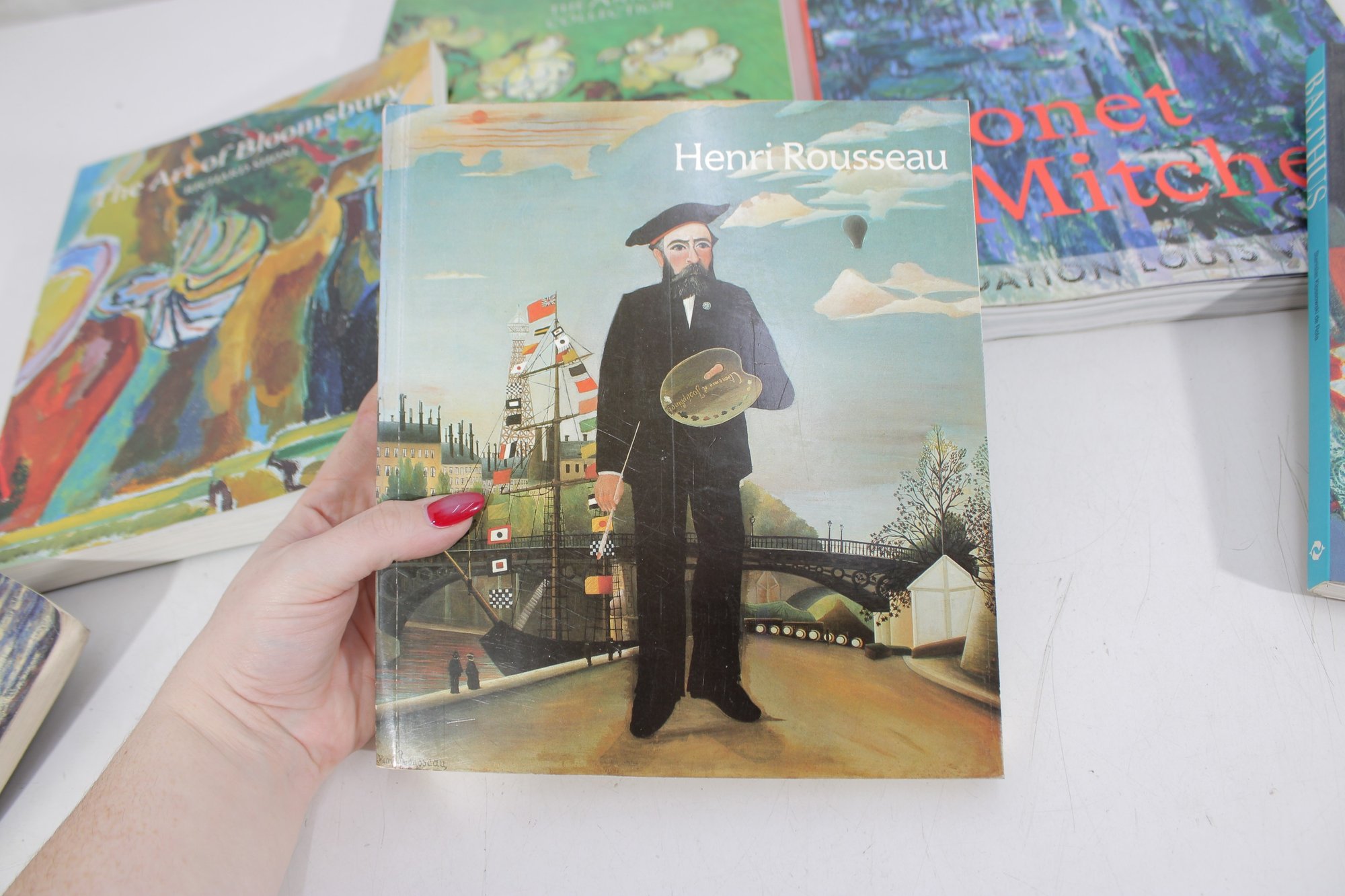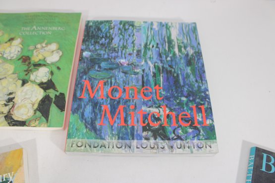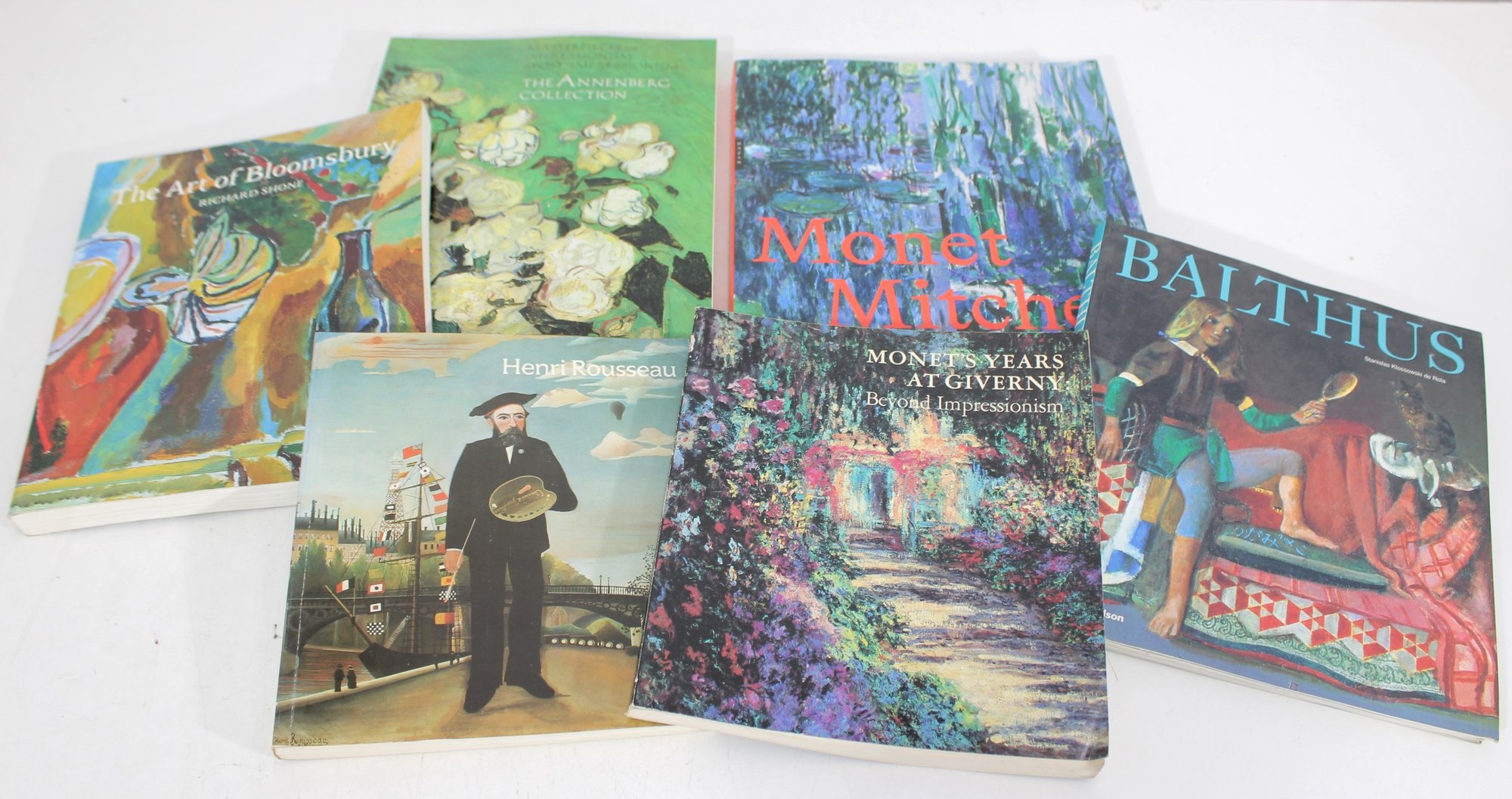 Beautiful collection of six art books and exhibition catalogs featuring renowned artists and important collections. This curated lot includes titles on Monet, Joan Mitchell, Balthus, Henri Rousseau, and other notable works, offering a rich variety of styles from Impressionism to modern and contemporary art.