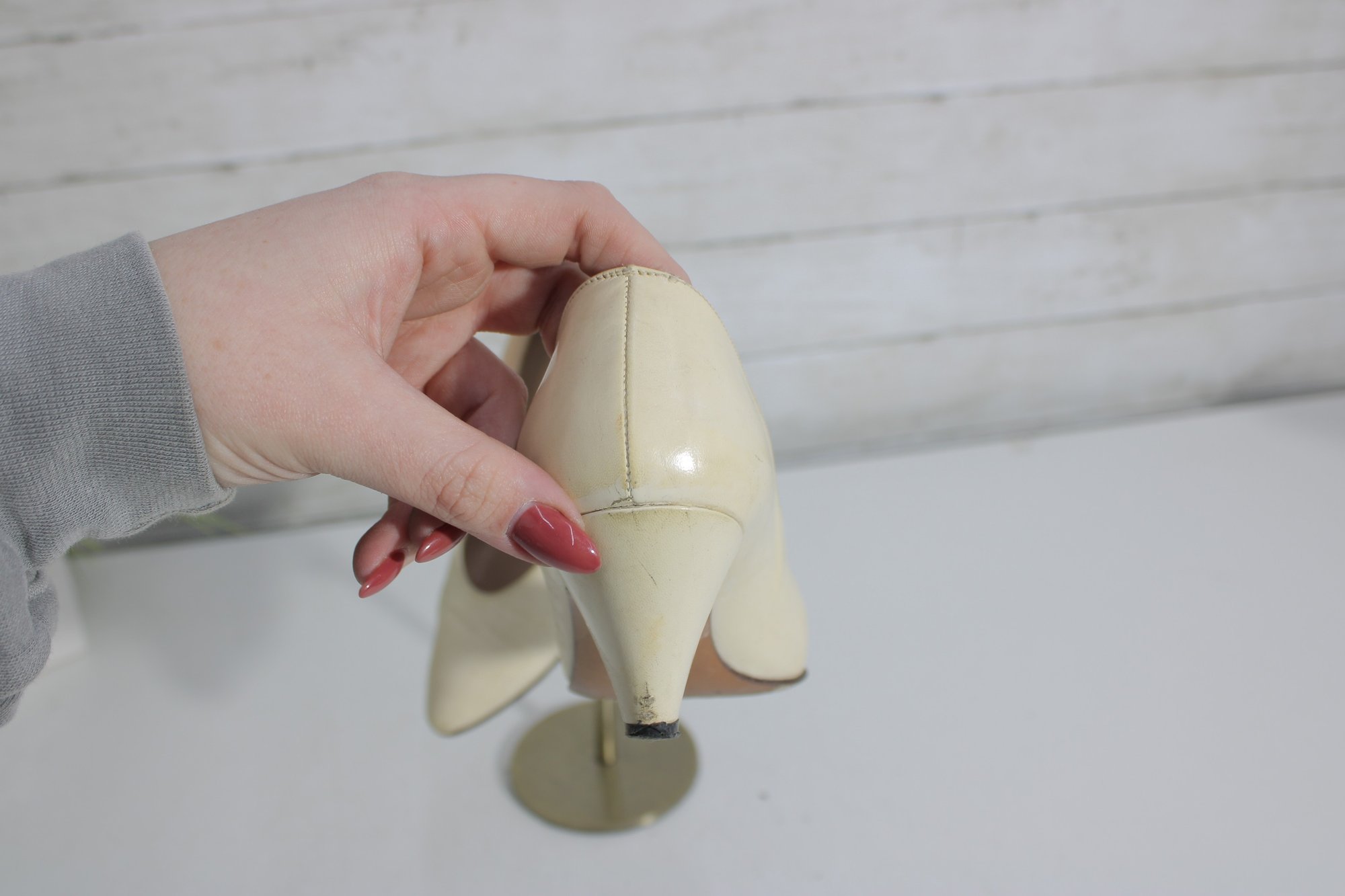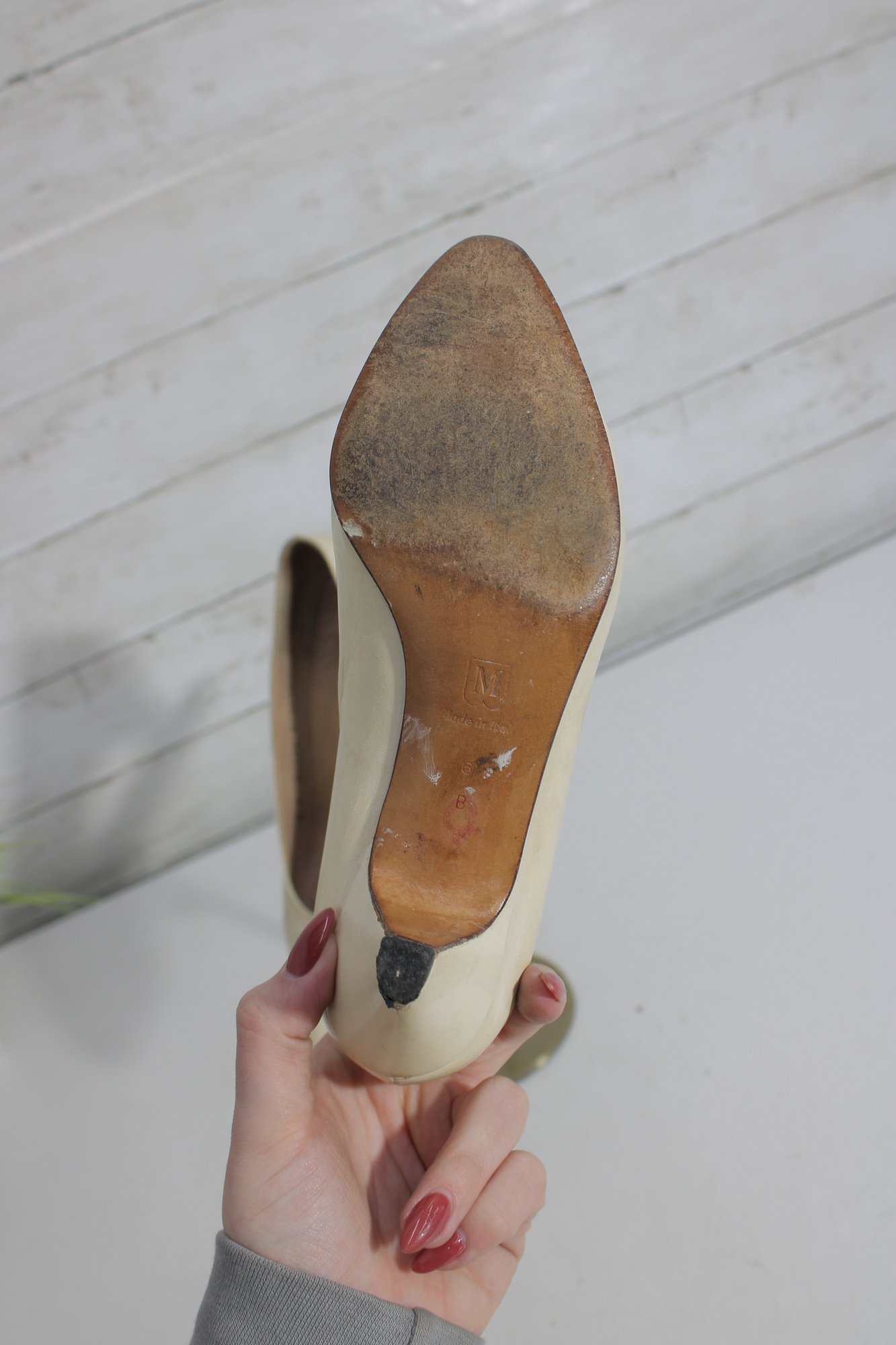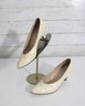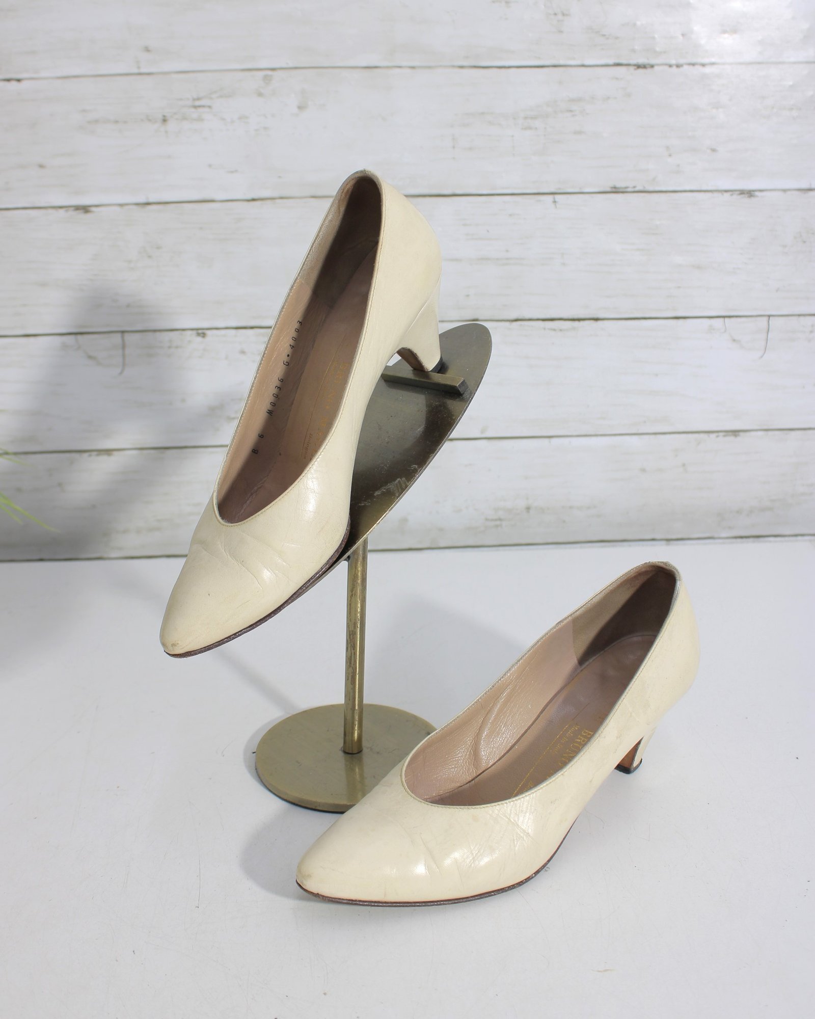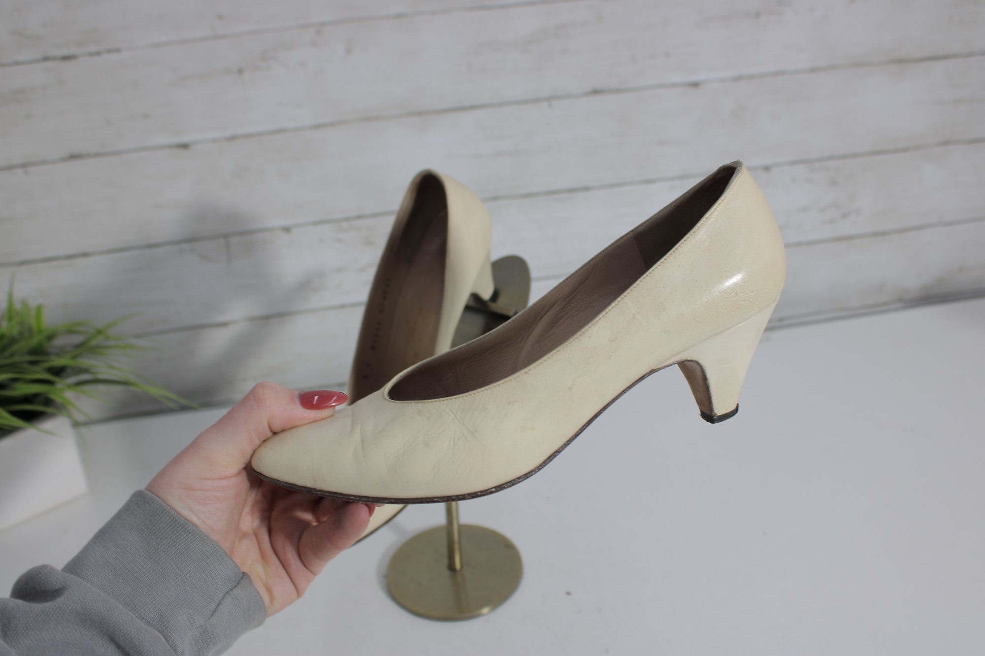 Step into timeless elegance with these authentic Bruno Magli leather pumps, expertly crafted in Italy. Featuring a sleek, classic silhouette, these shoes are finished in a soft cream/ivory tone that pairs effortlessly with both professional and formal looks.