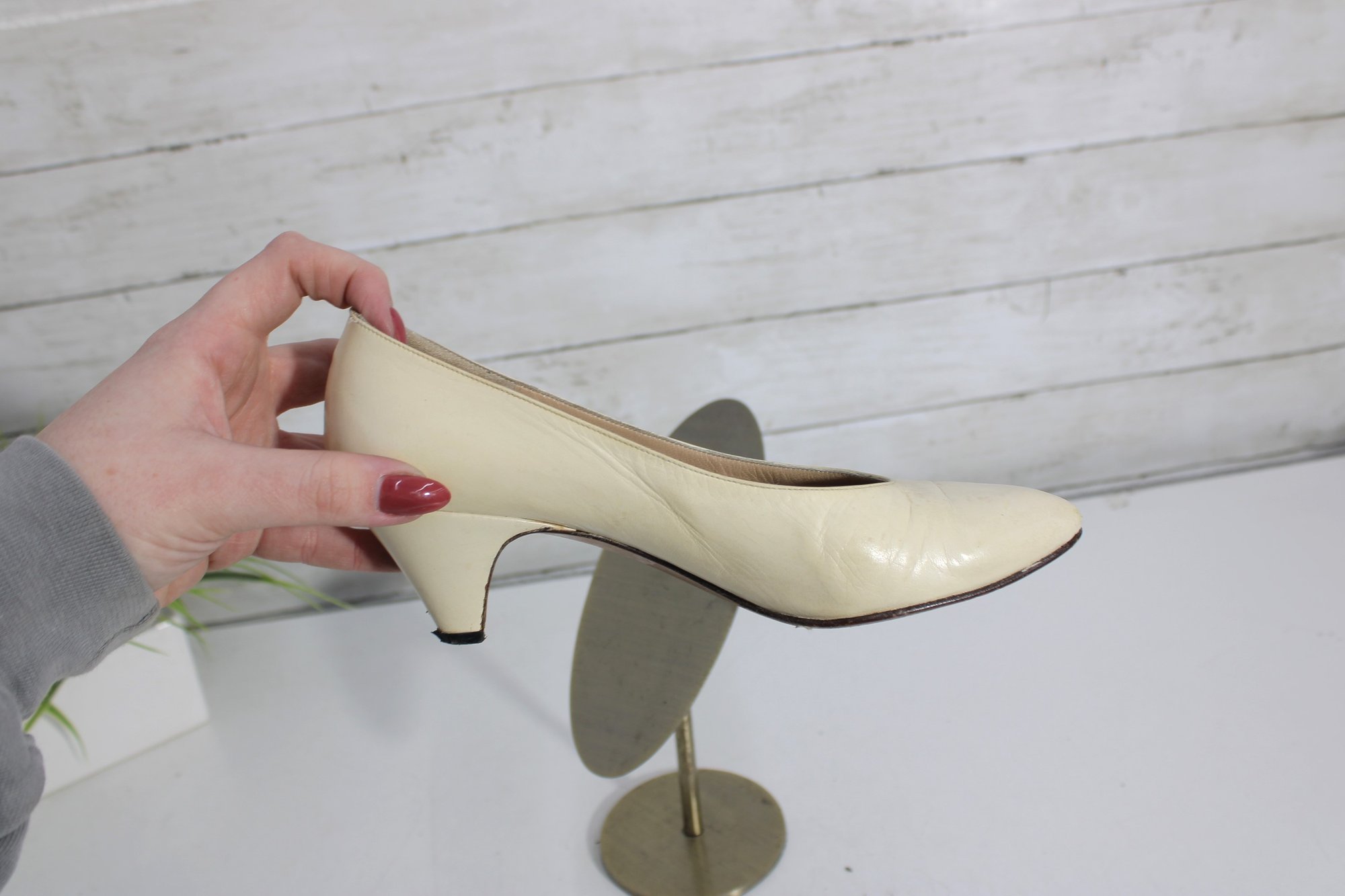 The modest low heel offers comfort without sacrificing style, making them perfect for all-day wear, special events, or a refined vintage wardrobe addition.