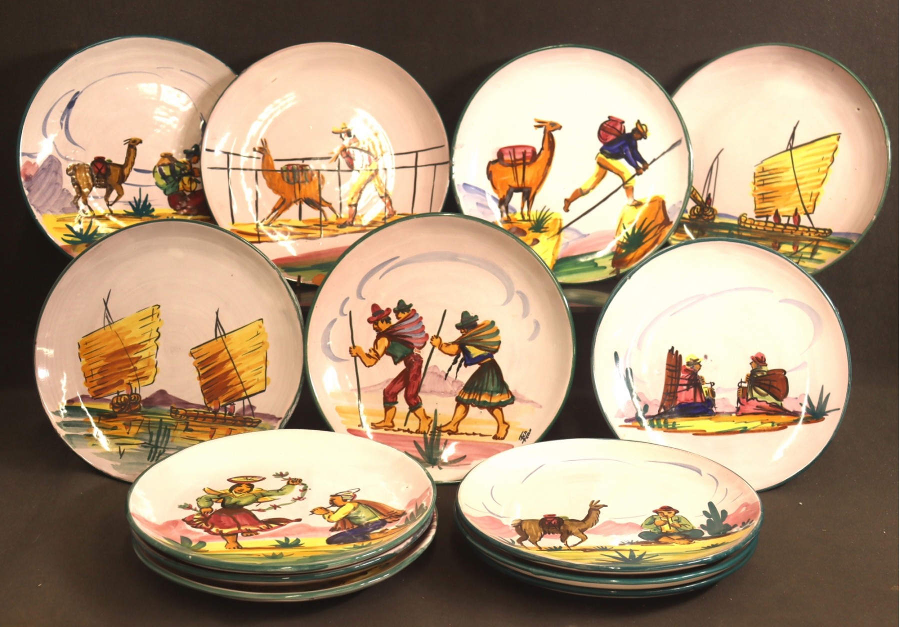 Note: there is edge and near edge chip and missing glaze spot in at least one plate