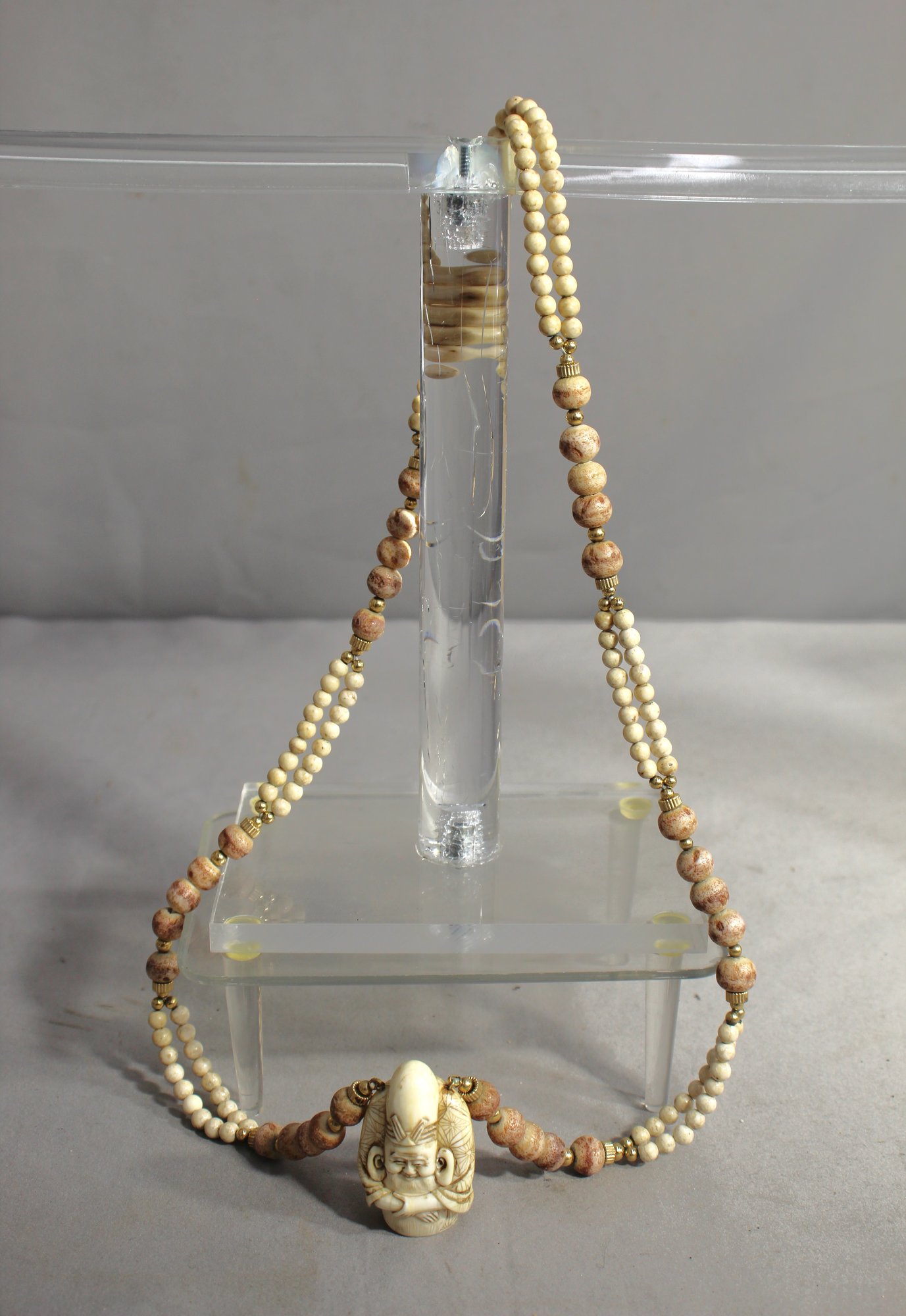 #13-Vintage Beaded Necklace With Carved Japanese Figure Pendant