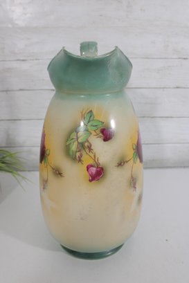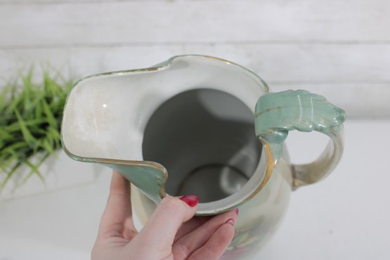 The piece has a graceful, classic form with a gently flared spout and sturdy handle, making it both decorative and functional. The hand-painted artwork and subtle shading give it a timeless English cottage aesthetic, perfect for display or use as a vase.