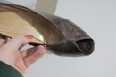 Pre-owned with visible wear consistent with use, including creasing to the leather and wear to the soles and heels as shown in photos.