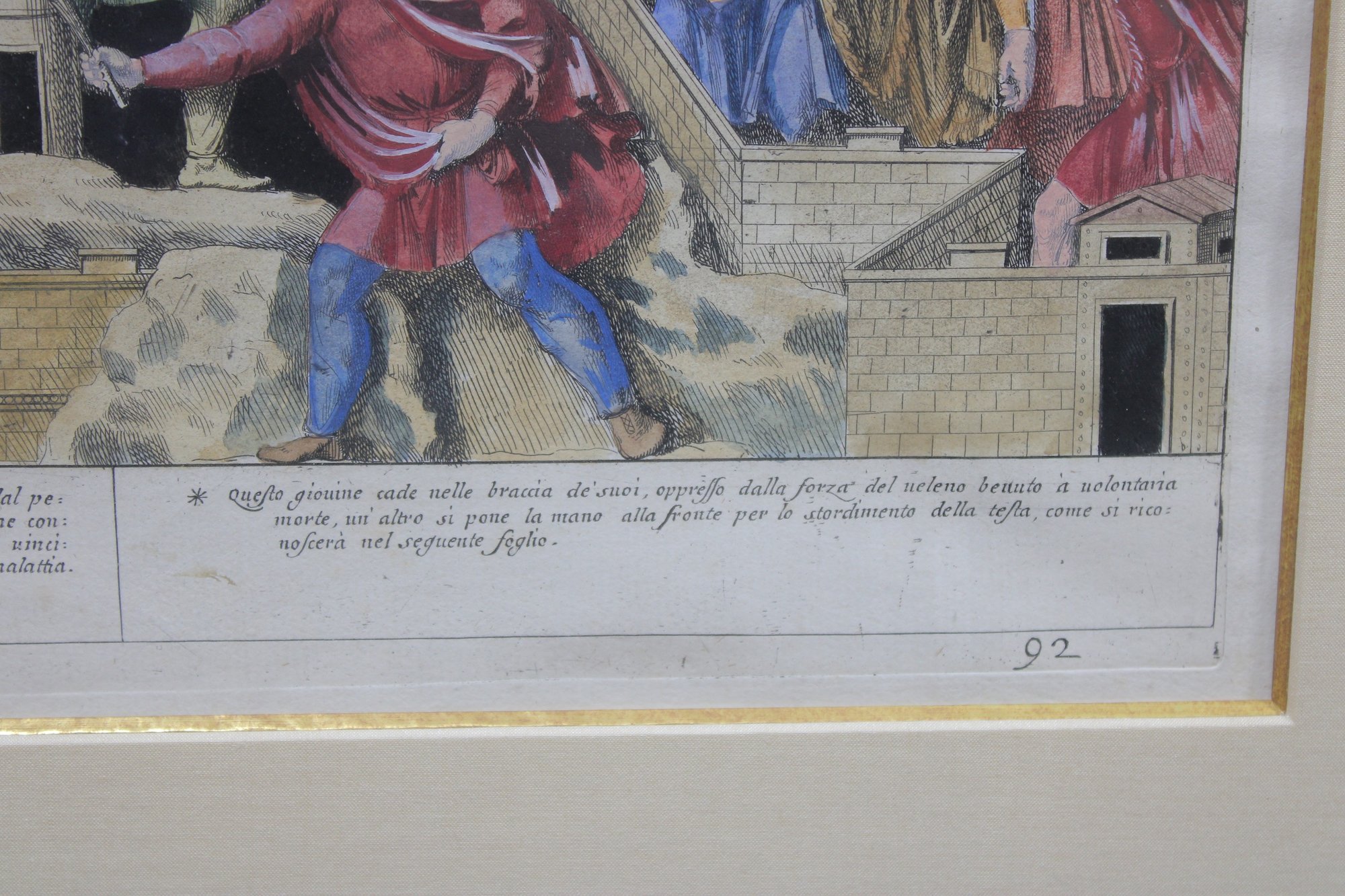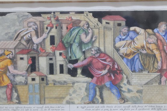 This historic print is attractively matted and presented in a traditional black and gilt frame, giving it a formal, museum-style appearance well suited for a library, study, or classical interior.