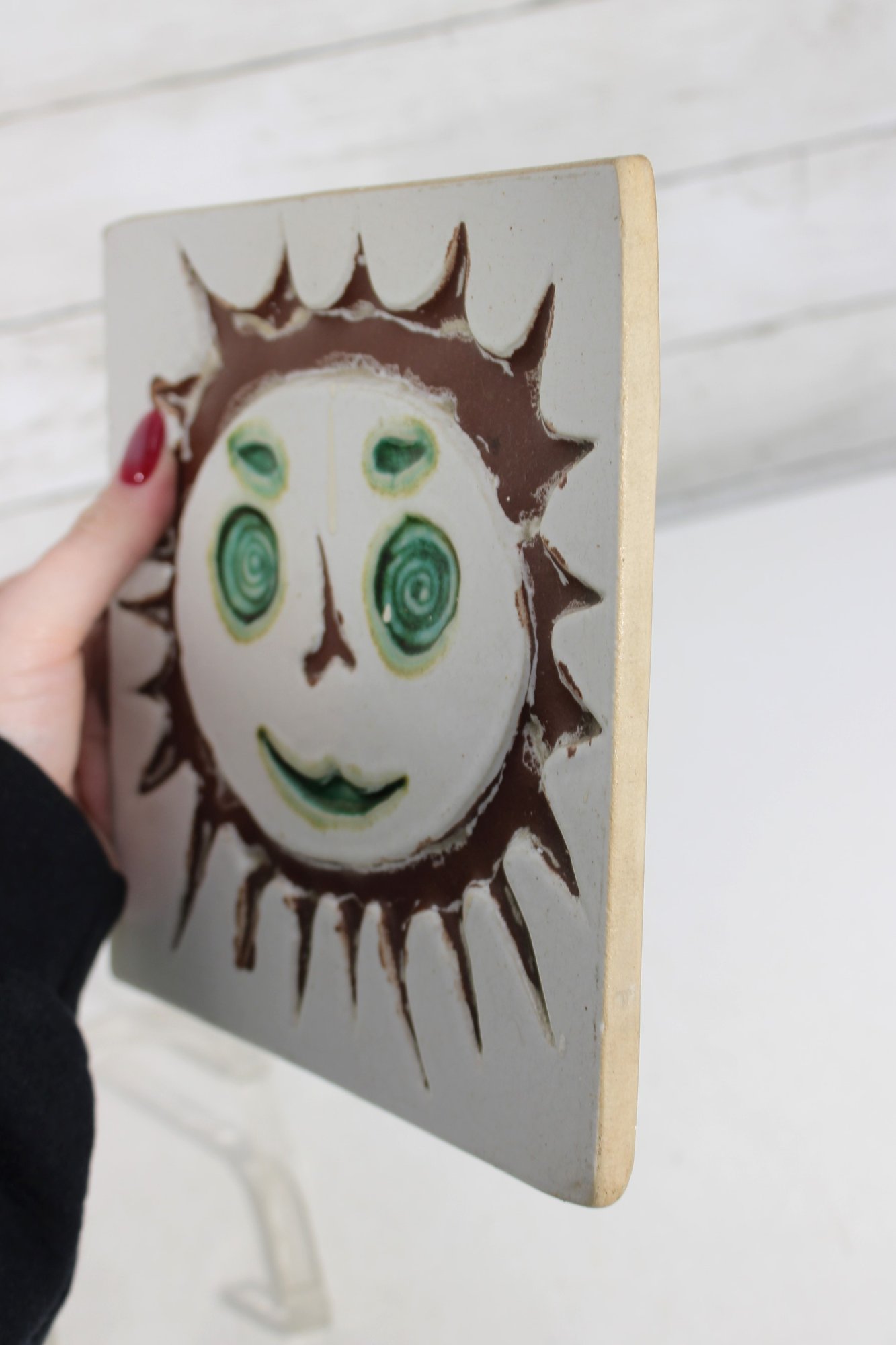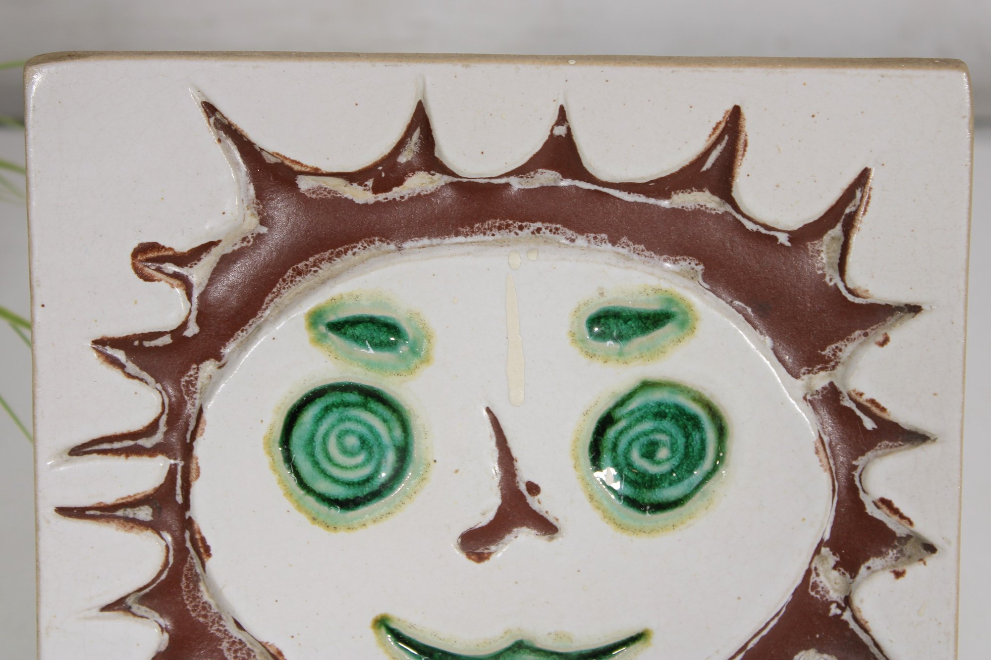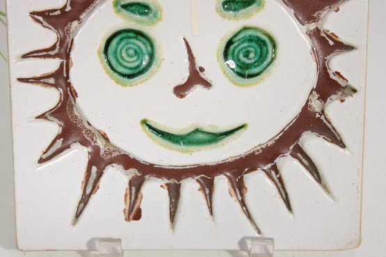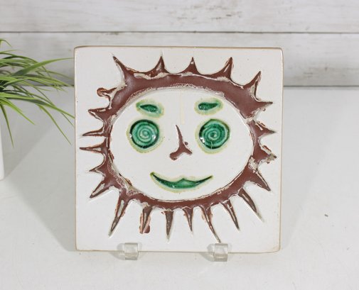 1960s Bennington Pottery David Gil Smiling Sun Tile Mid-Century Trivet/Wall Hanging 8 X 8