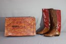 1970s Vintage Leather Boots Enzo Angiolini Boho Patchwork-sz 10M