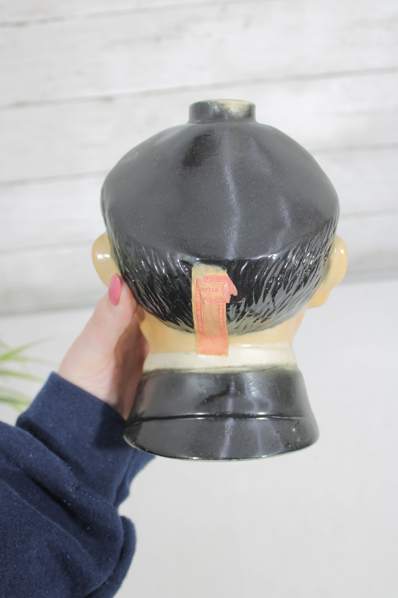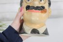 The decanter features a detailed sculpted bust design with hand-painted facial features and dark hair. Originally produced to hold Ezra Brooks whiskey, these novelty decanters have become popular collectibles among vintage barware and television memorabilia collectors.