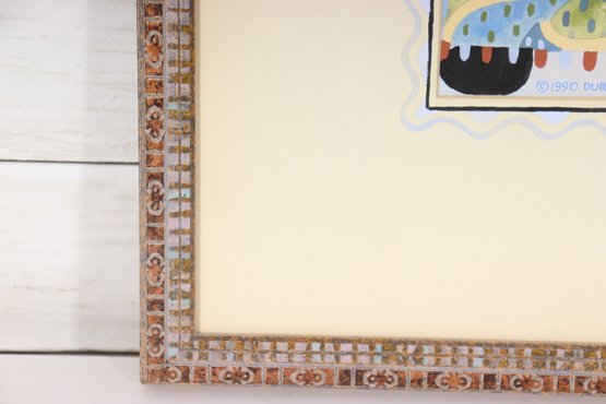 The piece is professionally matted and framed, giving it a warm, finished look that’s ready to hang. Durga’s distinctive style—known for its gentle expressions, symbolic animals, and storybook atmosphere—makes this work especially appealing to collectors of folk art, outsider art, and imaginative illustration.