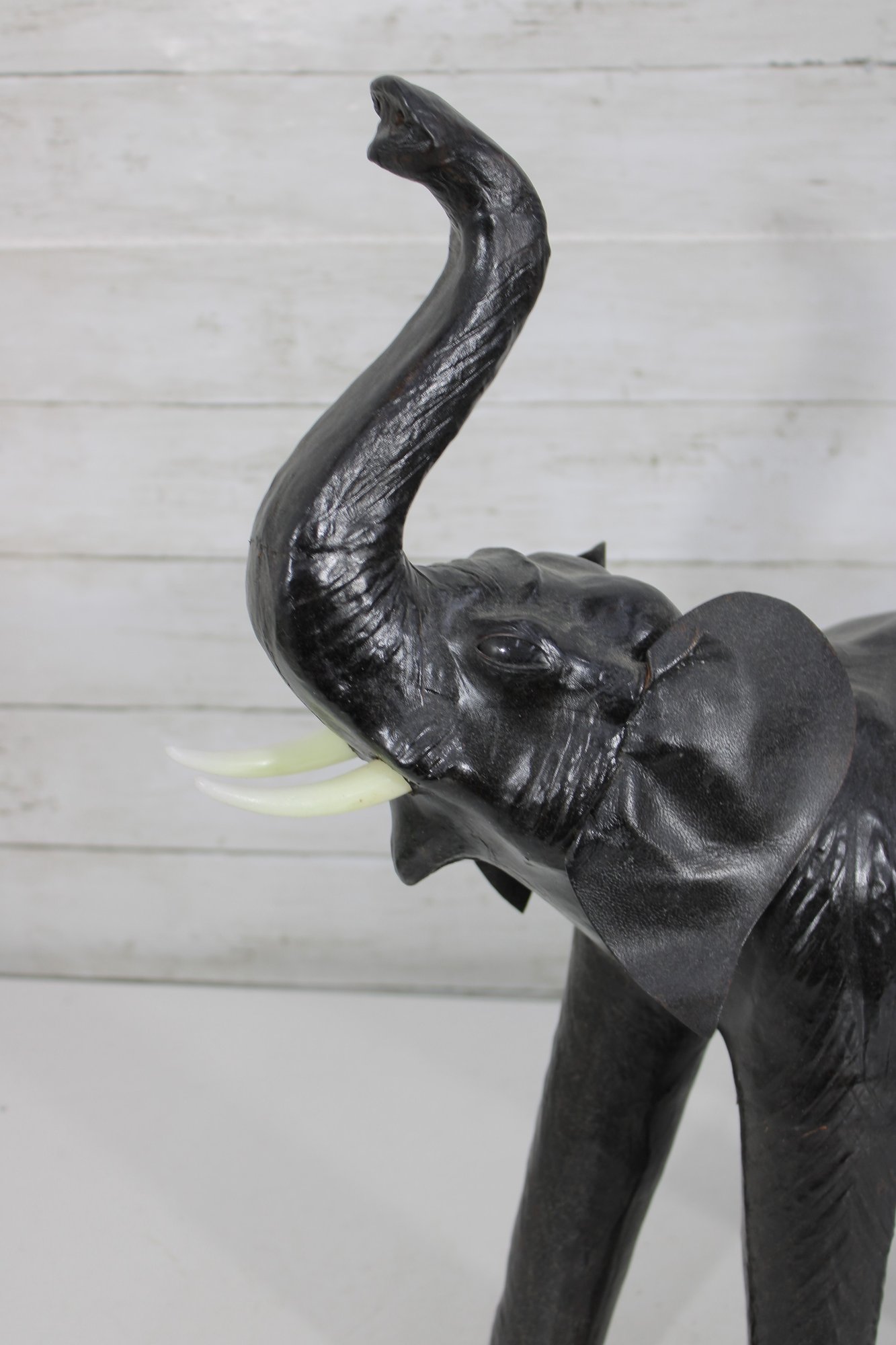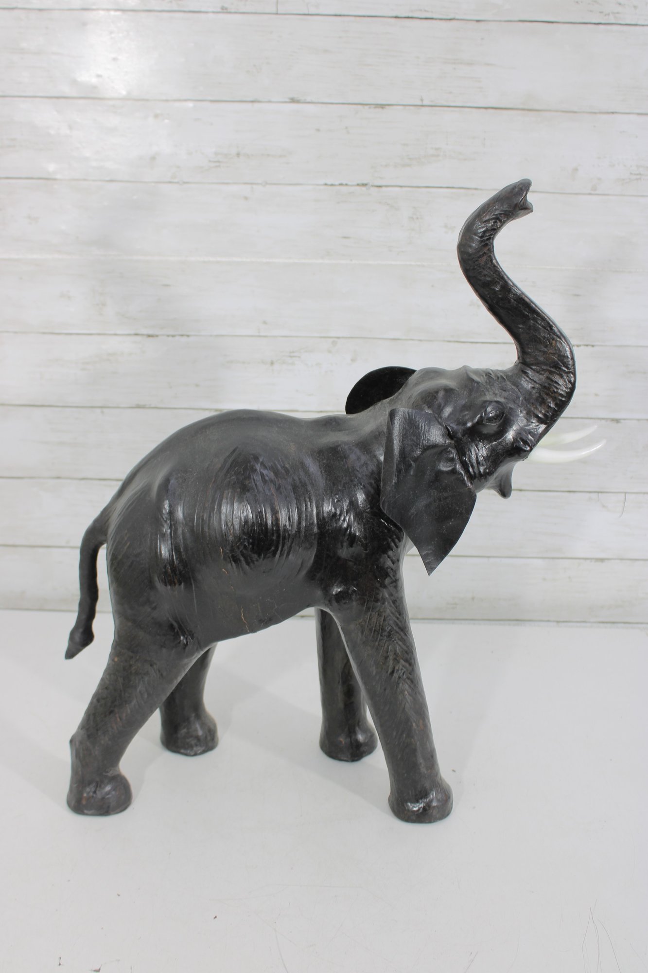 Light-colored tusks provide contrast, and the defined ears and trunk add dimension while keeping a stylized decorative form.