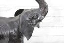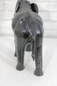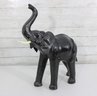 Striking decorative elephant sculpture standing 21.5 inches tall, featuring a deep black finish and classic raised-trunk pose. This piece brings timeless safari elegance and rich texture to any space.