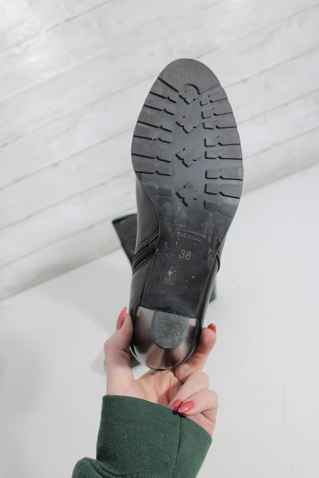 Pre-owned and in good condition. Shows light wear consistent with normal use, including minor creasing and outsole wear.