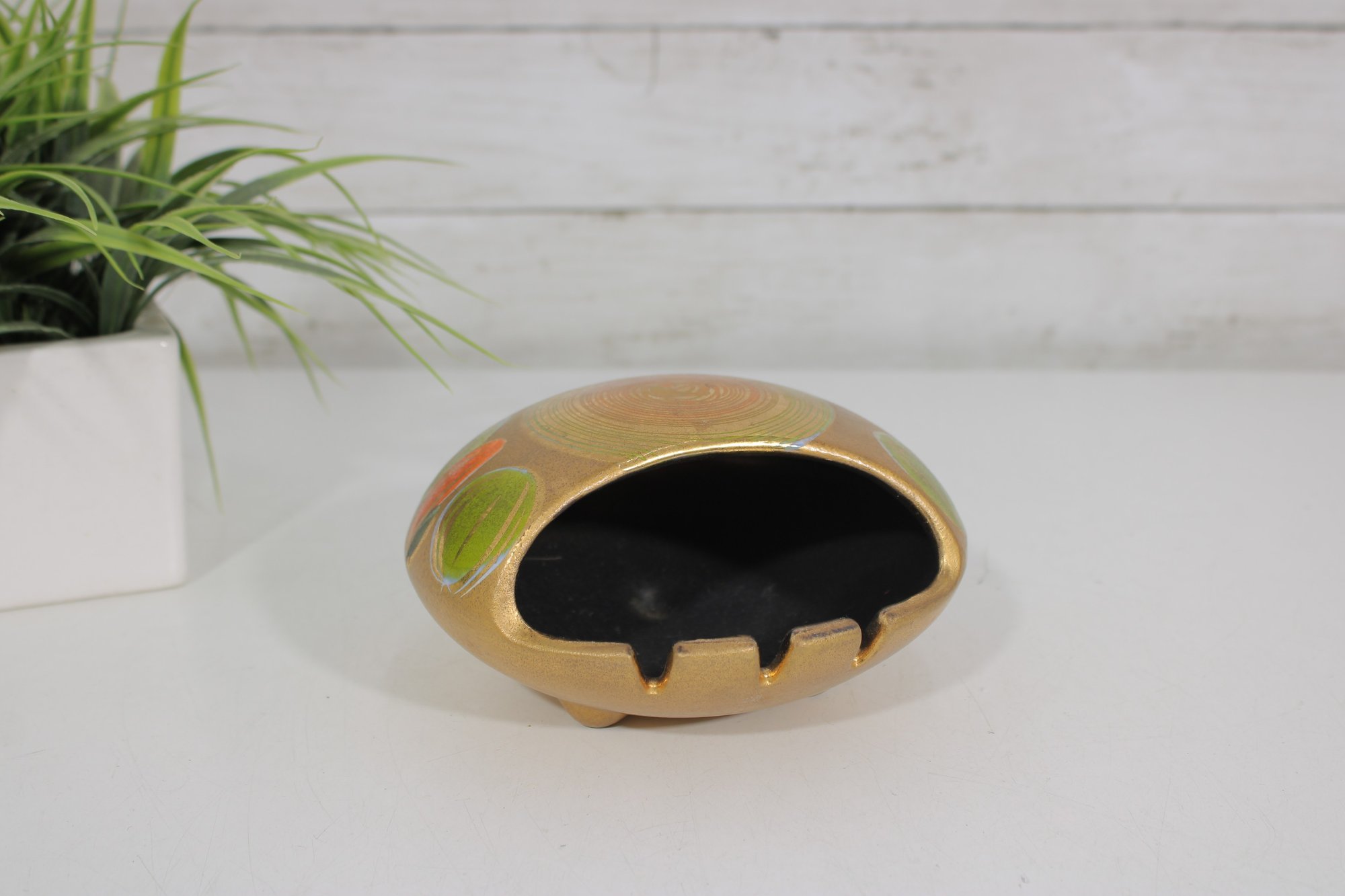 3.5" X 5.5" Sascha Brastoff "More Gold" Clam Shell Ashtray