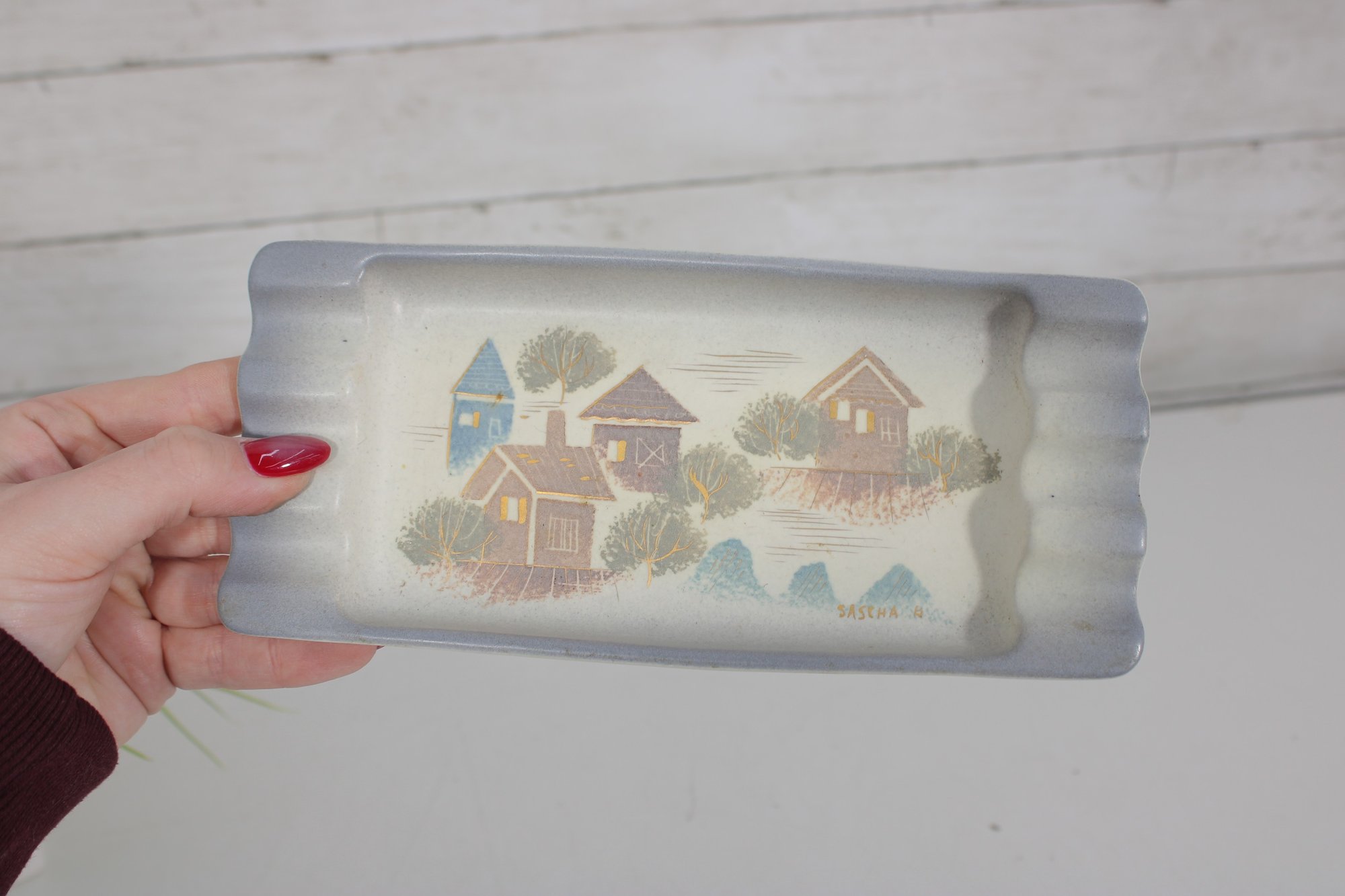 3.5" X 9" VINTAGE SIGNED SASCHA BRASTOFF MCM ASHTRAYs