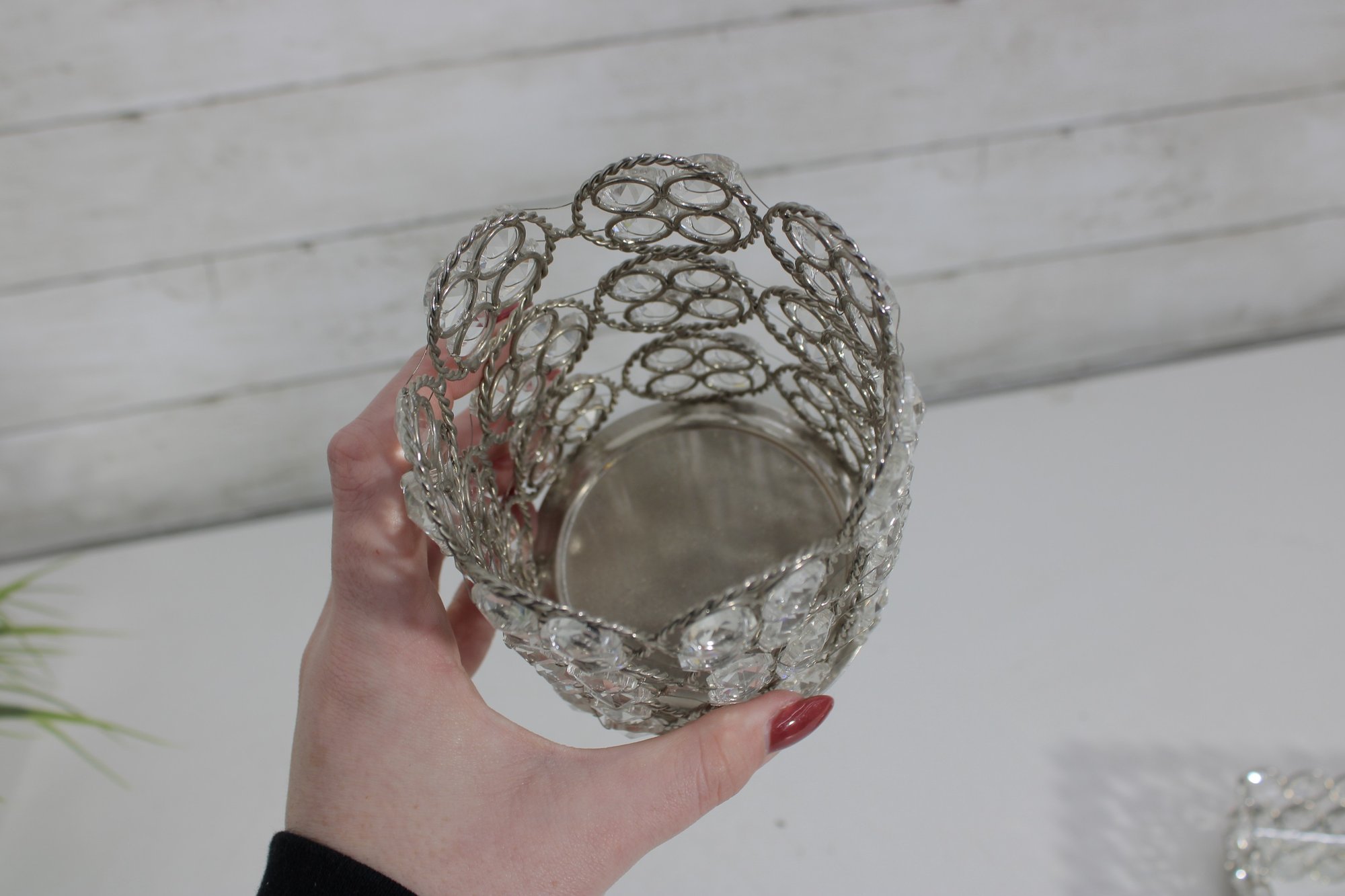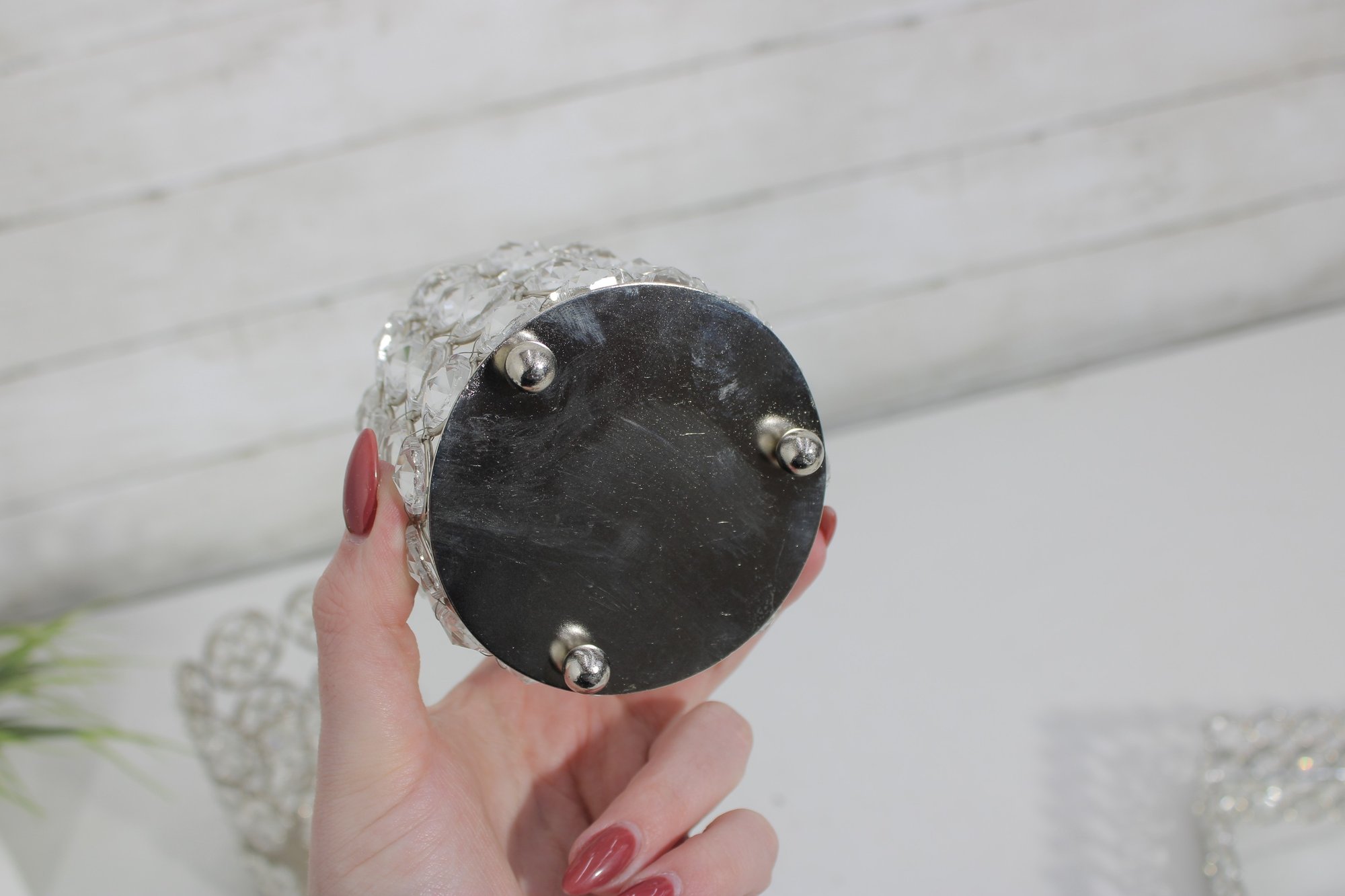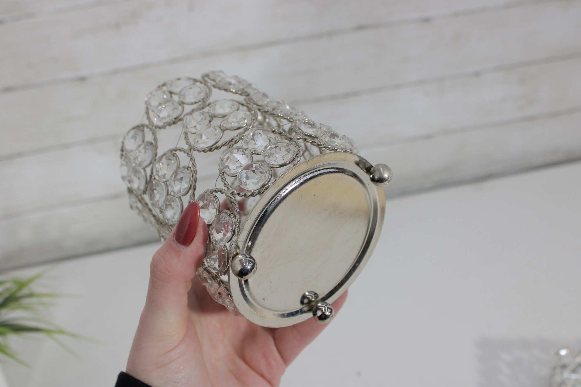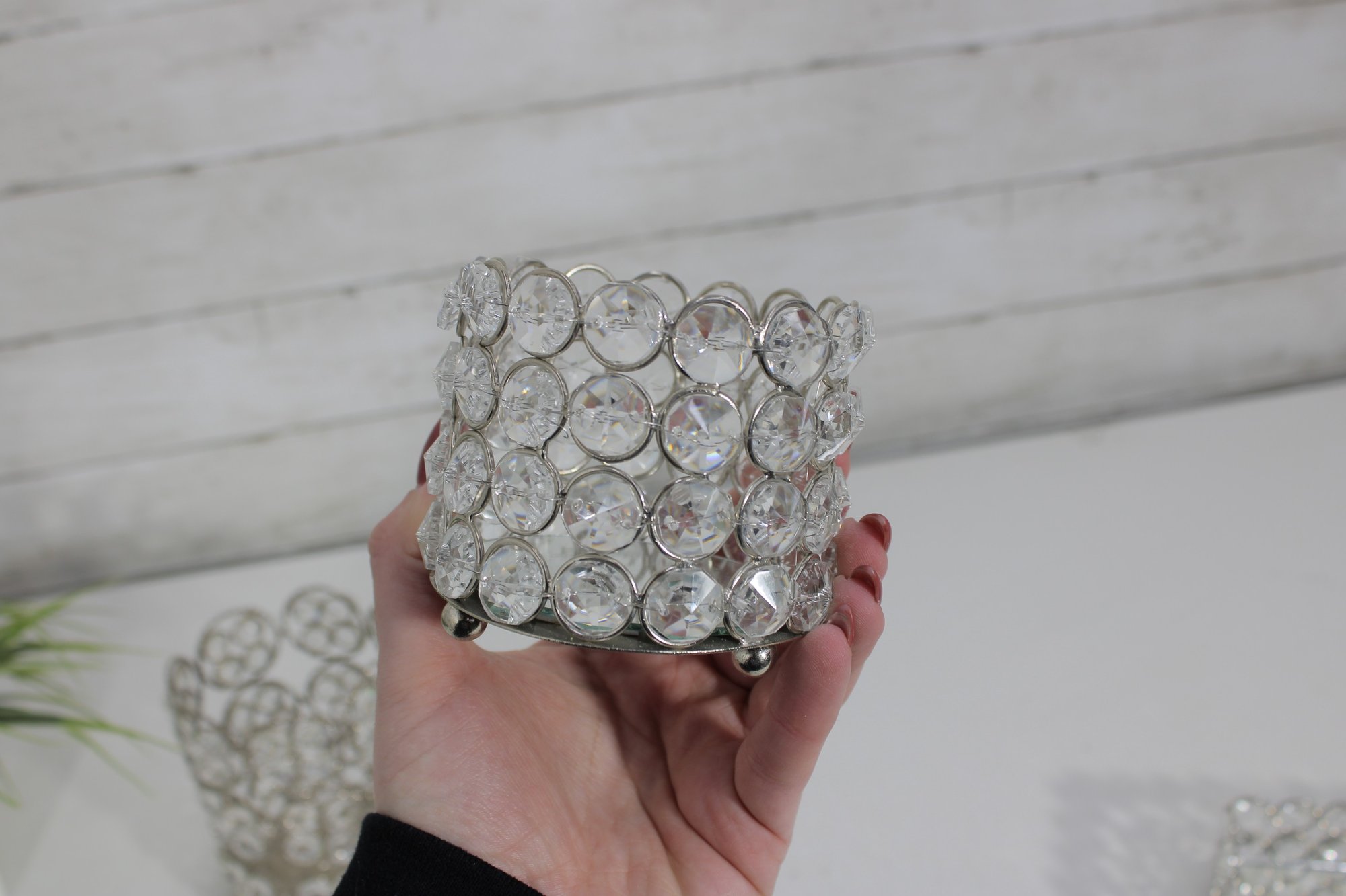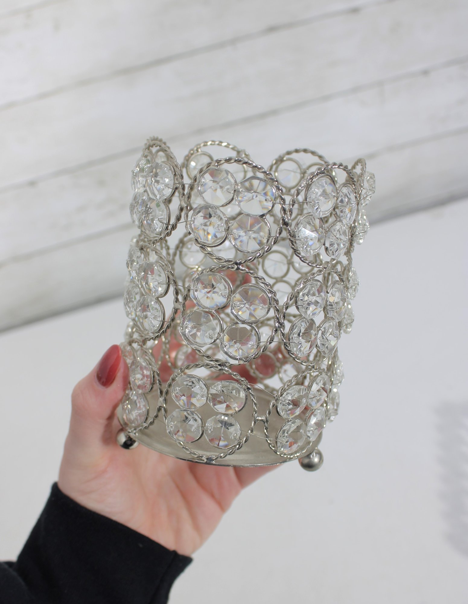 Larger round holder measuring approximately 5.5" tall