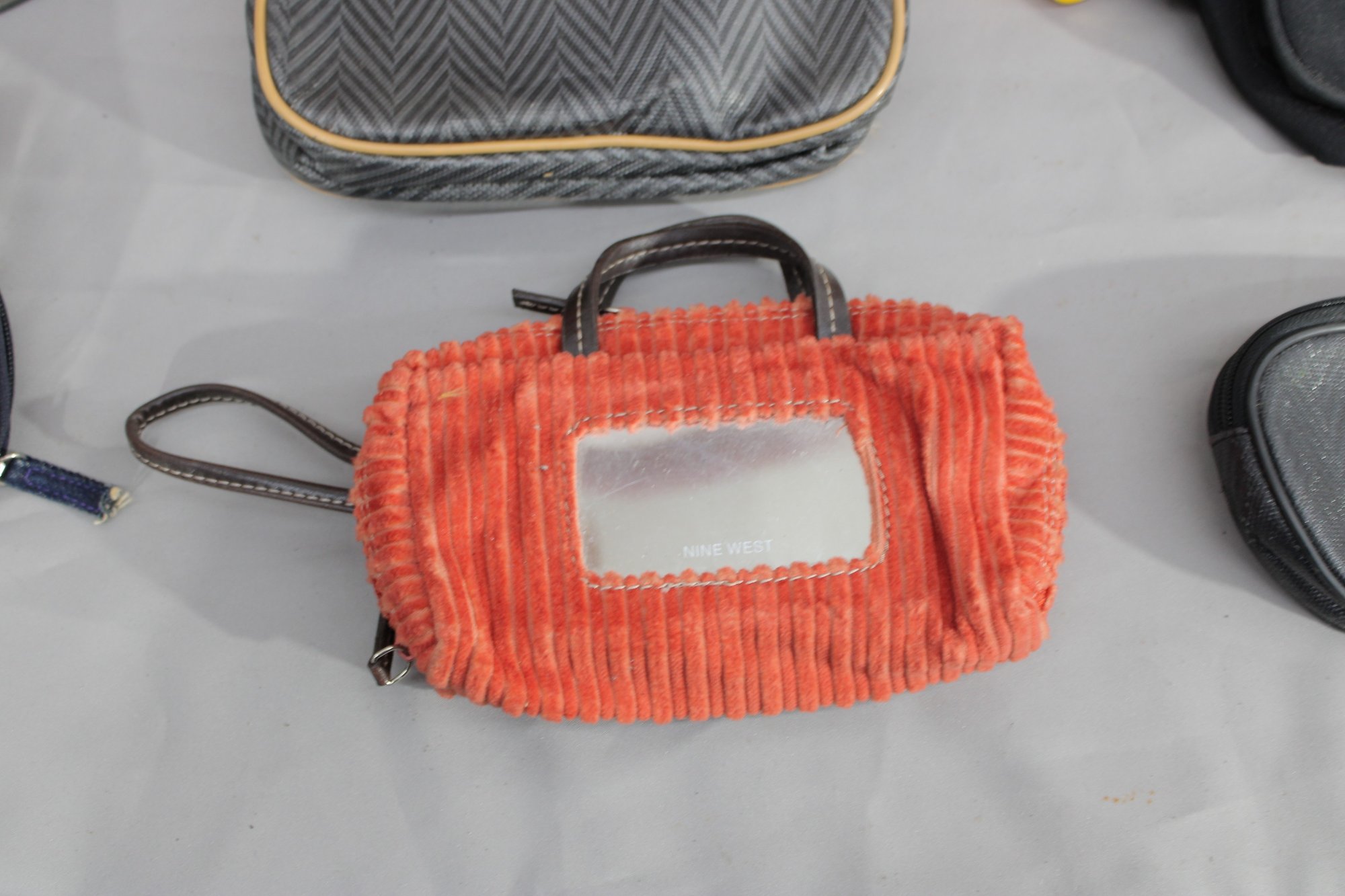 a mixed lot of small bags and mini purses in a variety of styles, colors, and materials. The group includes compact crossbody bags, zippered travel pouches, wristlets, and small everyday purses—perfect for light carry, travel, or organizing essentials.
