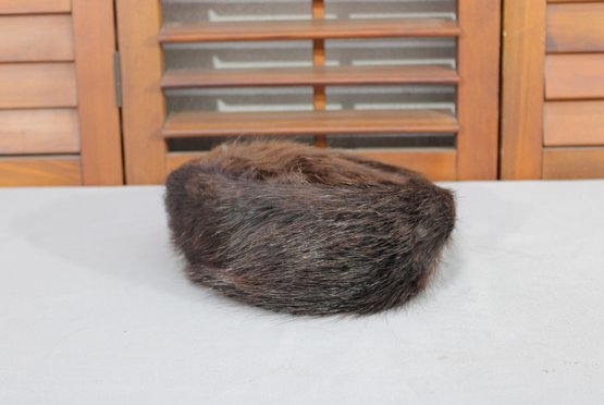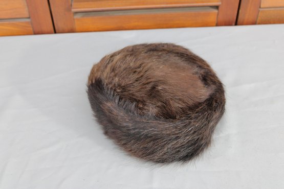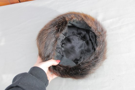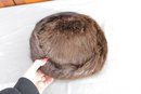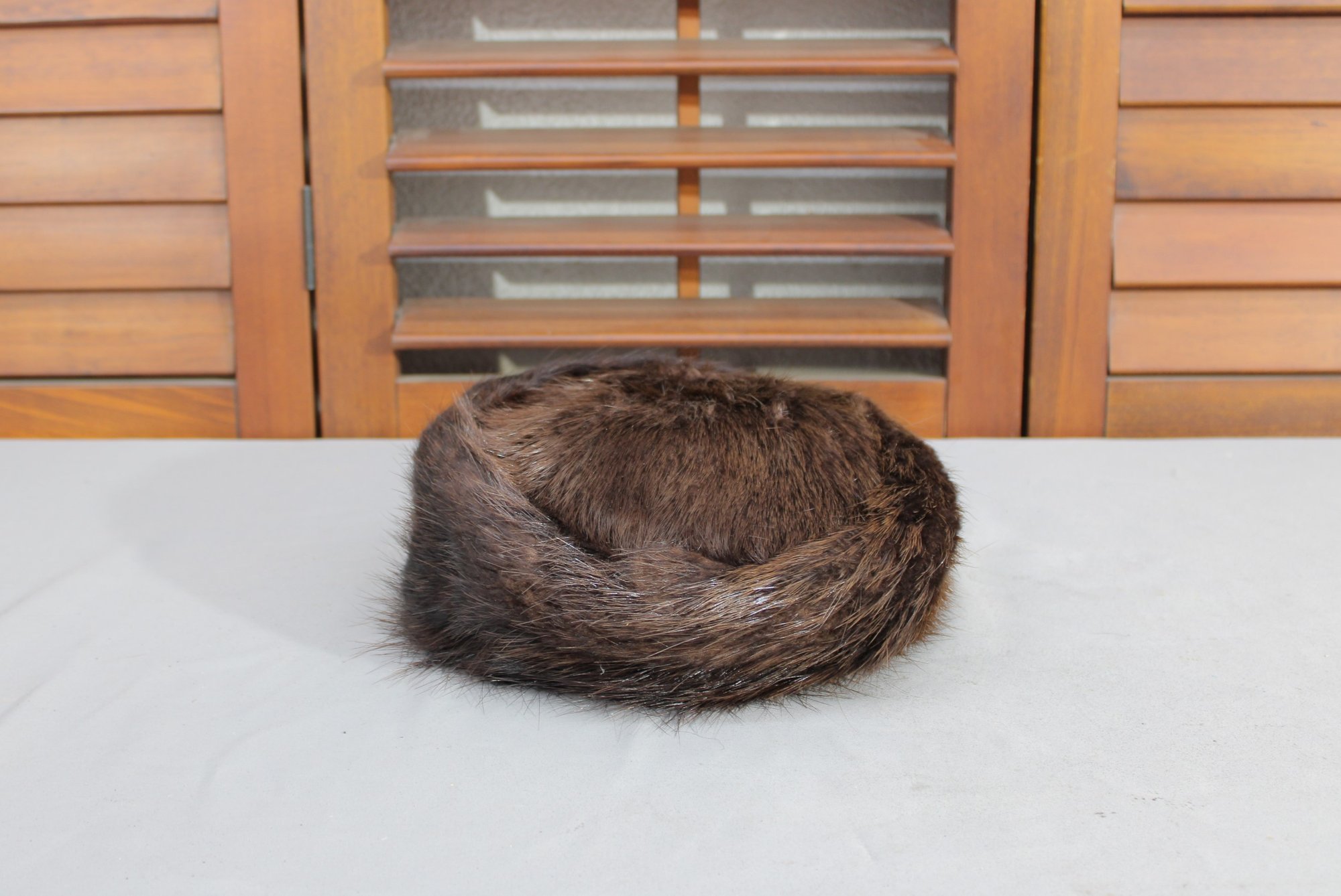 beautiful vintage real fur hat in rich shades of brown. The hat features soft, natural fur with subtle color variation and a classic rounded silhouette. Fully lined interior for comfort and warmth.
