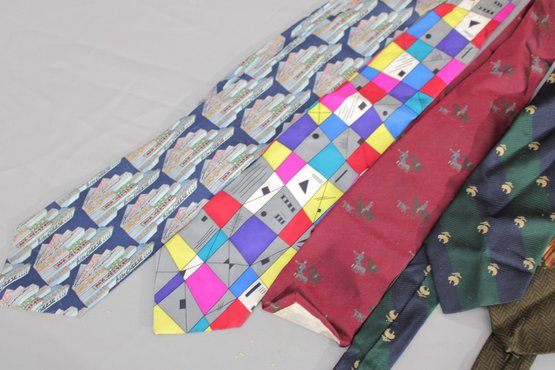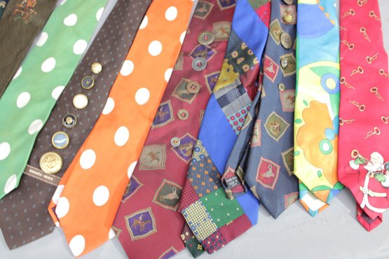 #315-Vintage Novelty Tie Lot Fun & Whimsical Mens Neckties Polka Dots, Graphics & Bold Prints