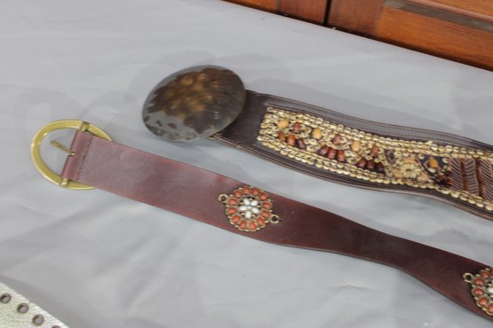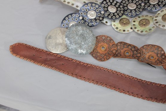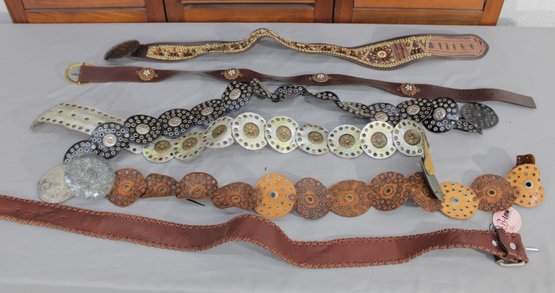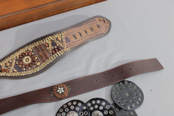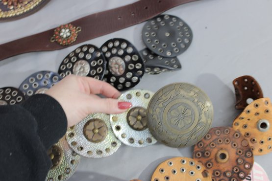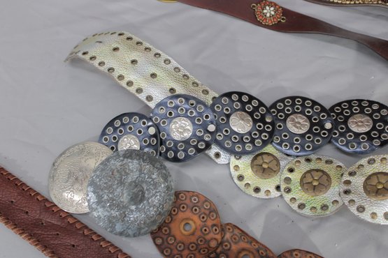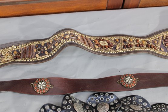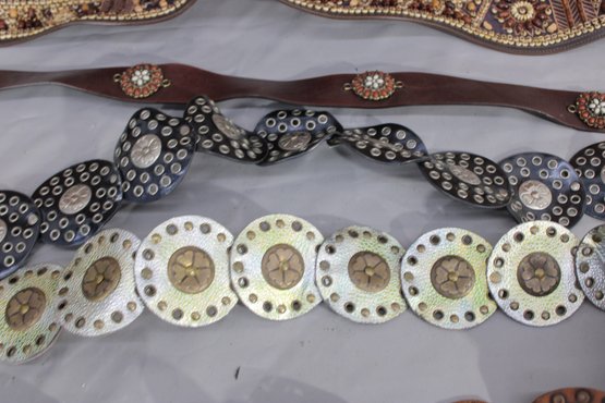 #329-Decorative Leather Belt Lot Concho & Embellished Western-Style Belts