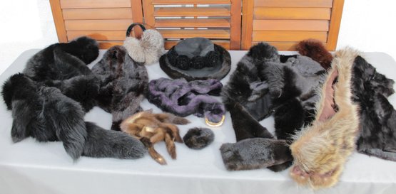 #334-Group Lot Of Vintage Fur Accessories Hats, Collars, Stoles & Trims