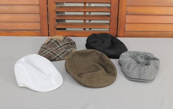 #344-Group Lot Of Flat Caps & Driving Hats Plaid, Tweed & Modern Styles