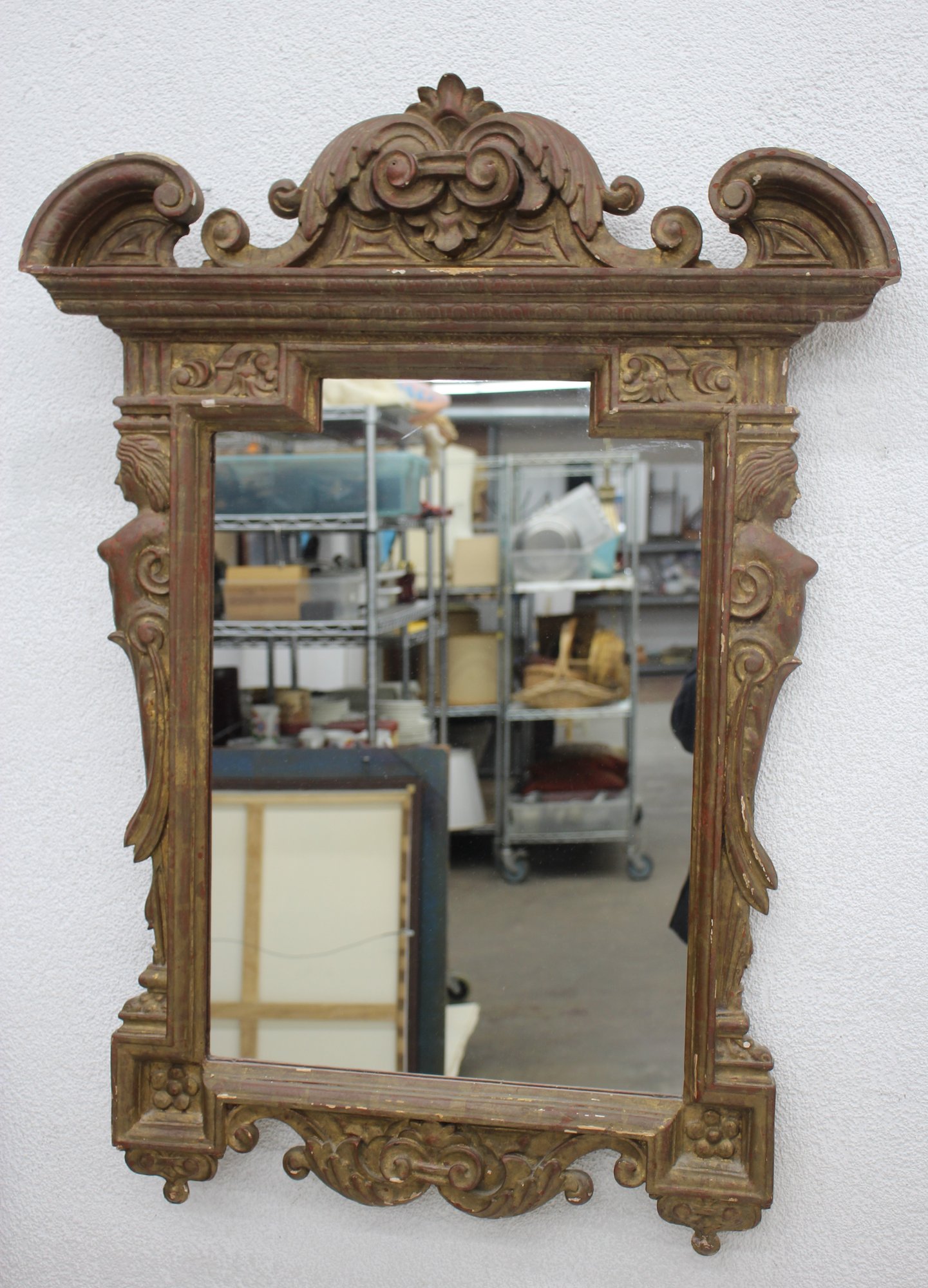 This exquisite vintage wall mirror features a beautifully carved wooden frame with intricate detailing and a classical design. The ornate scrollwork and floral crest add a touch of elegance and sophistication, making it a perfect addition to any traditional or vintage-inspired interior.