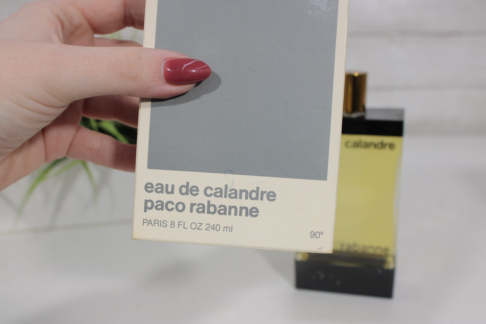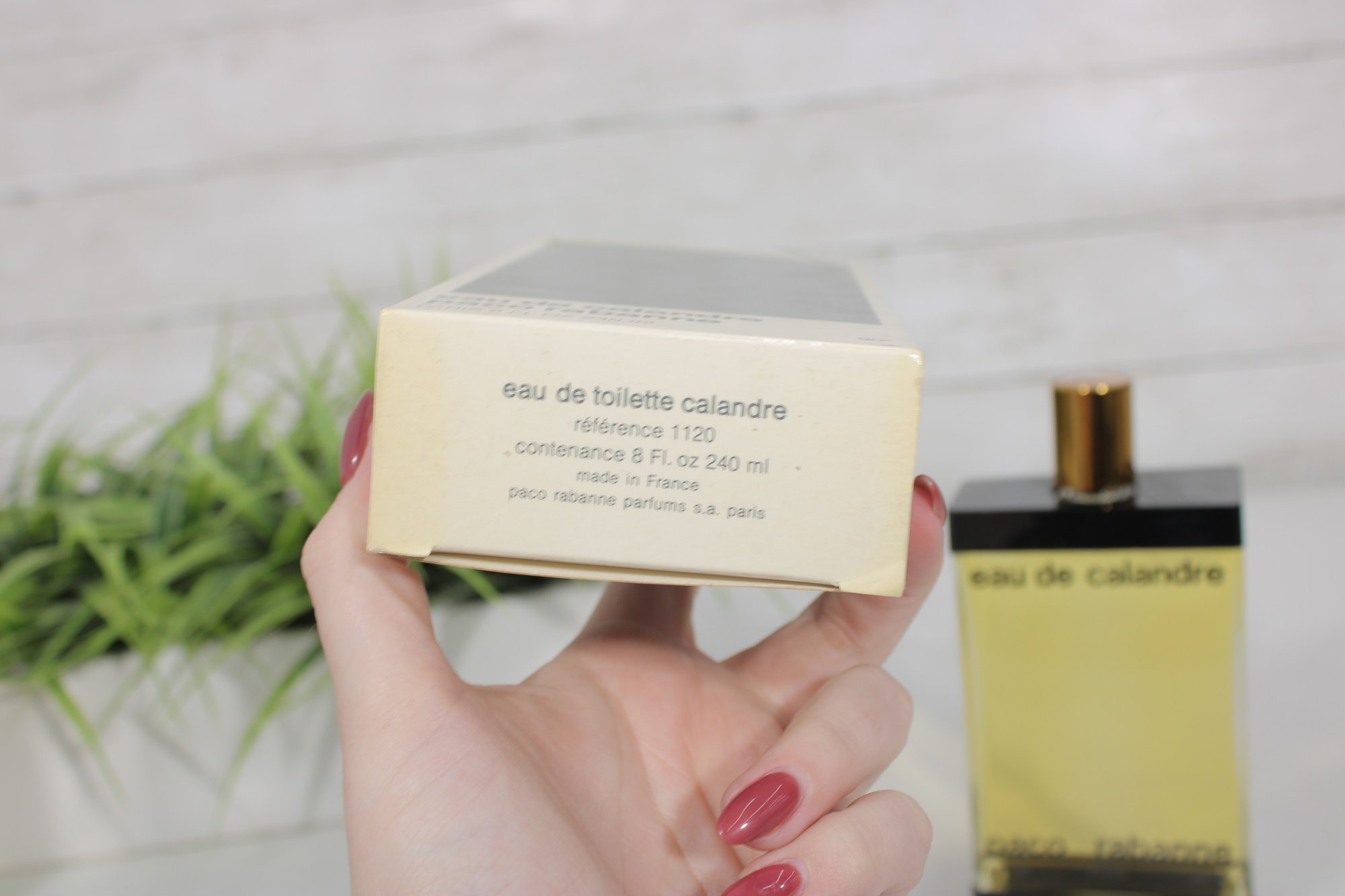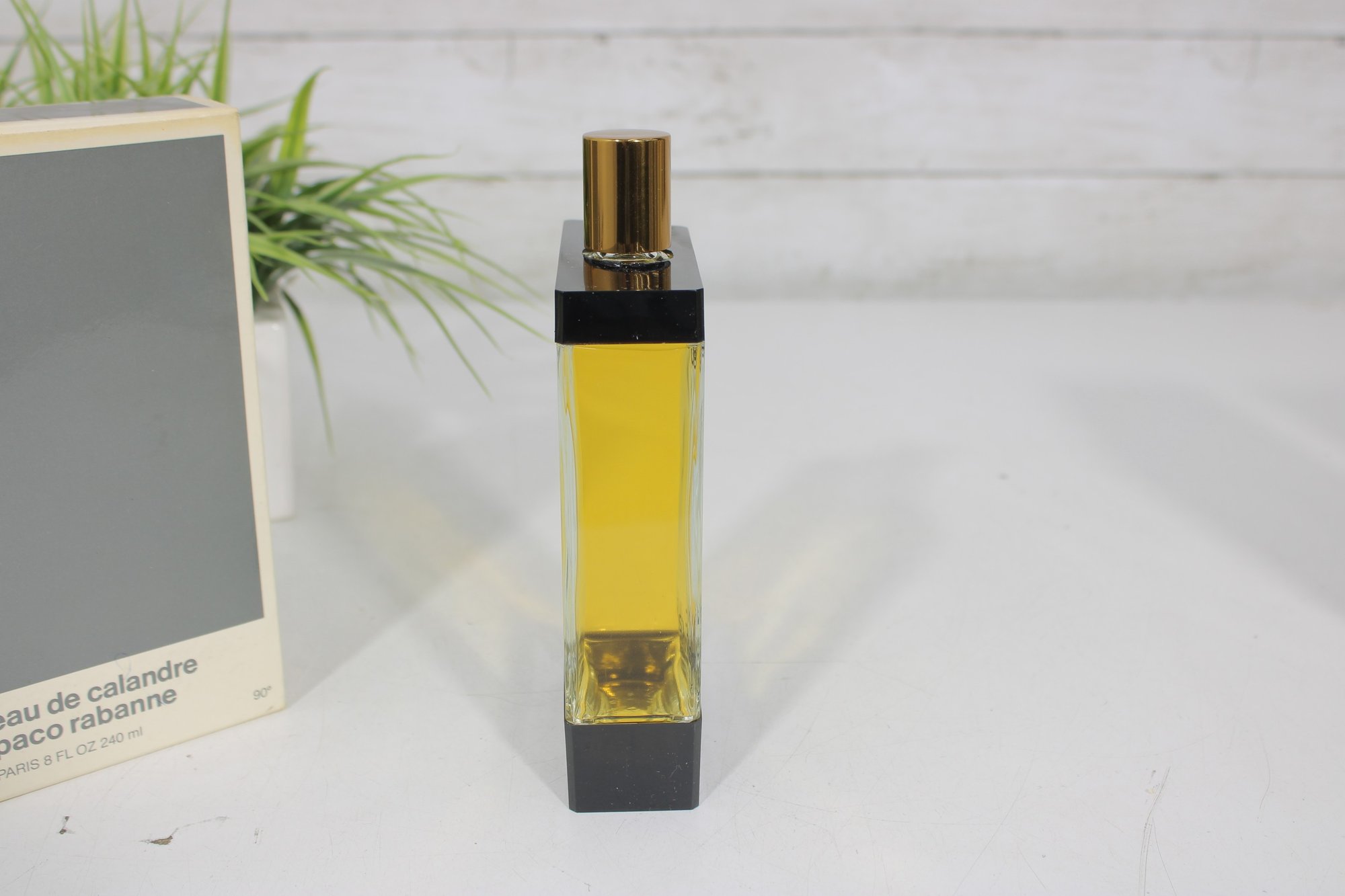 this impressive oversized format is highly desirable among collectors. Eau de Calandre is known for its crisp, elegant, and slightly metallic floral character — a bold and distinctive classic from Paco Rabanne.