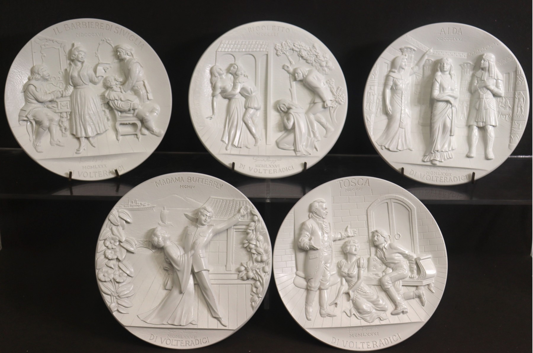Note: 4 have metal embossed, numbered round Certificate of Authenticity on back; one (Tosca) is missing the COA on back