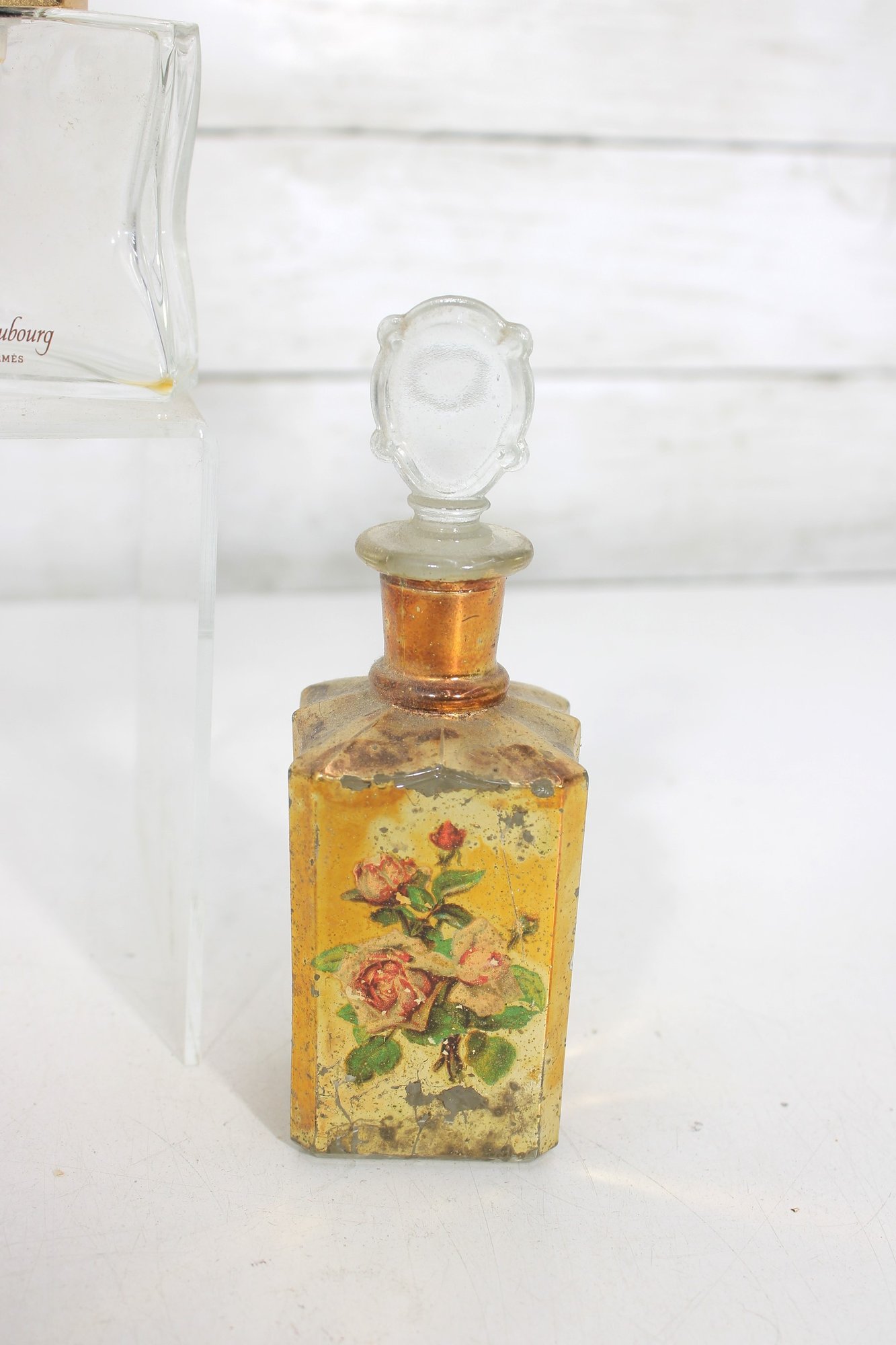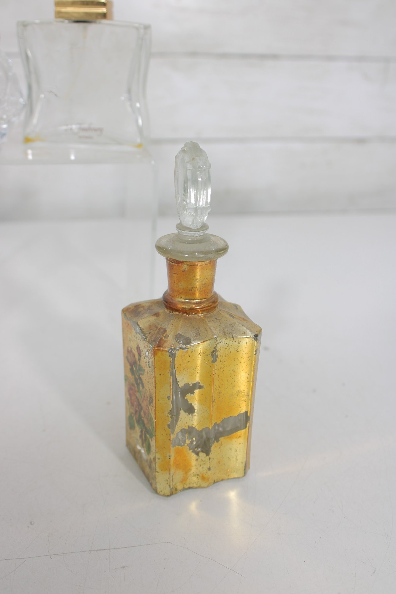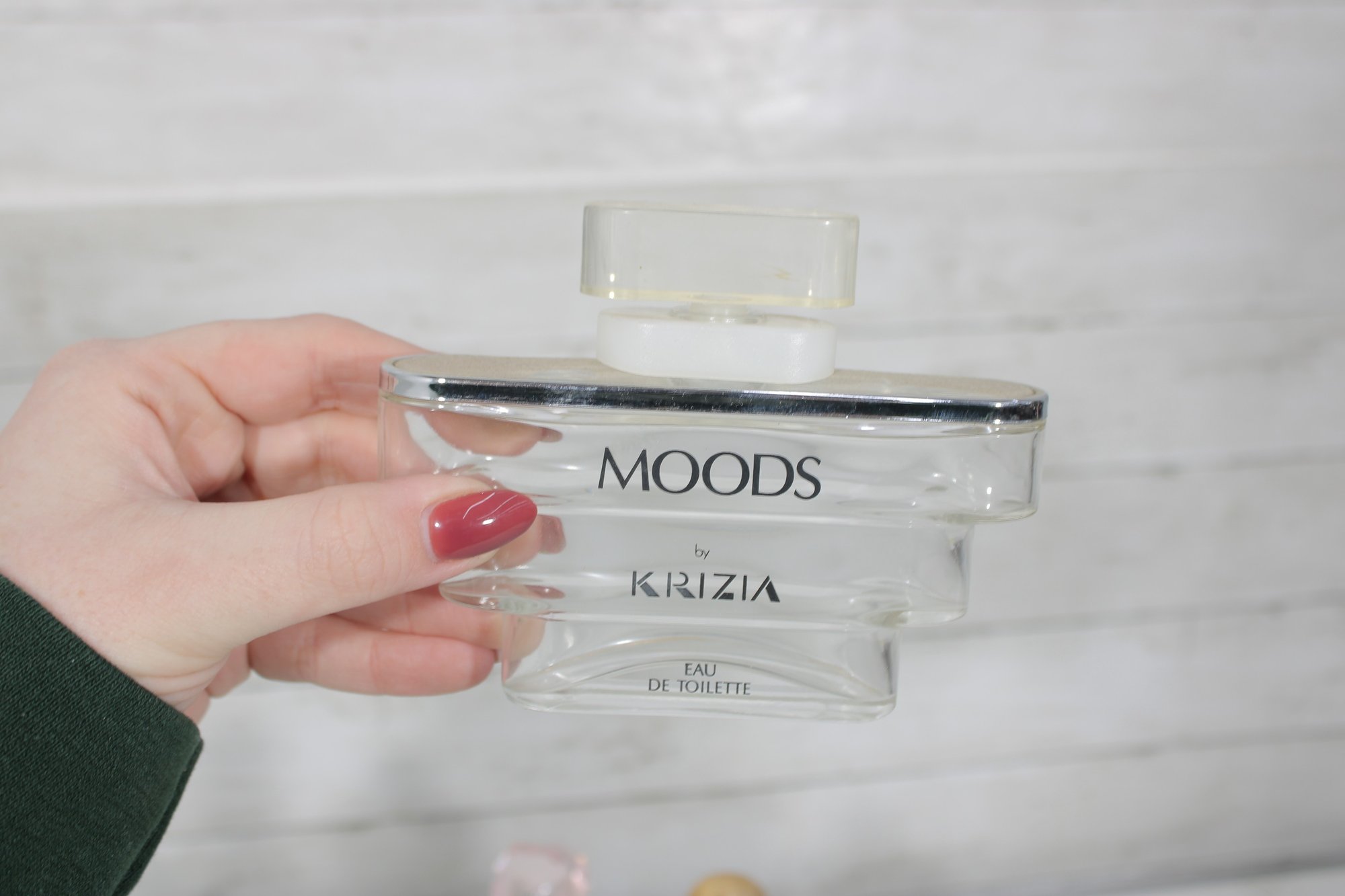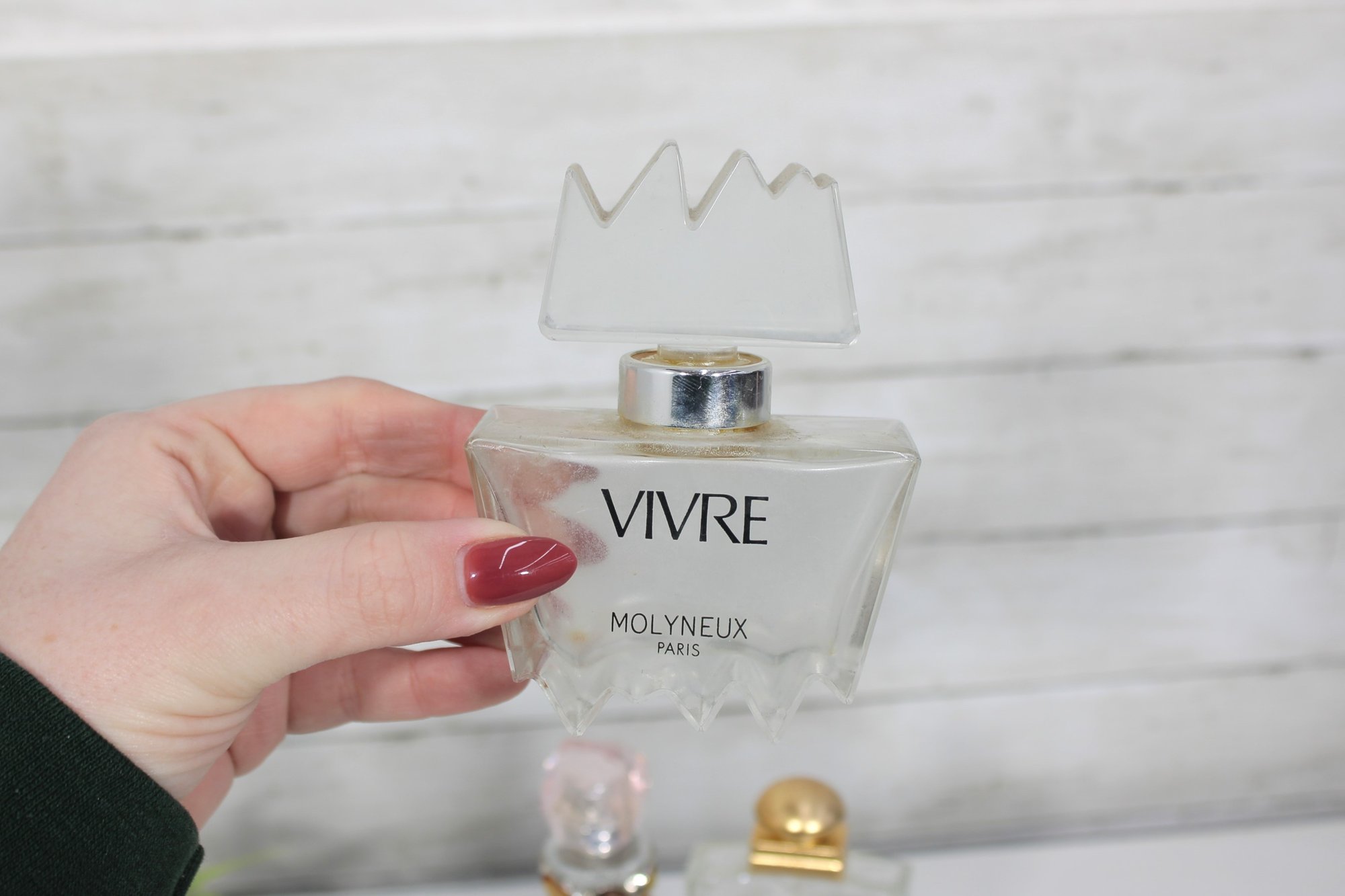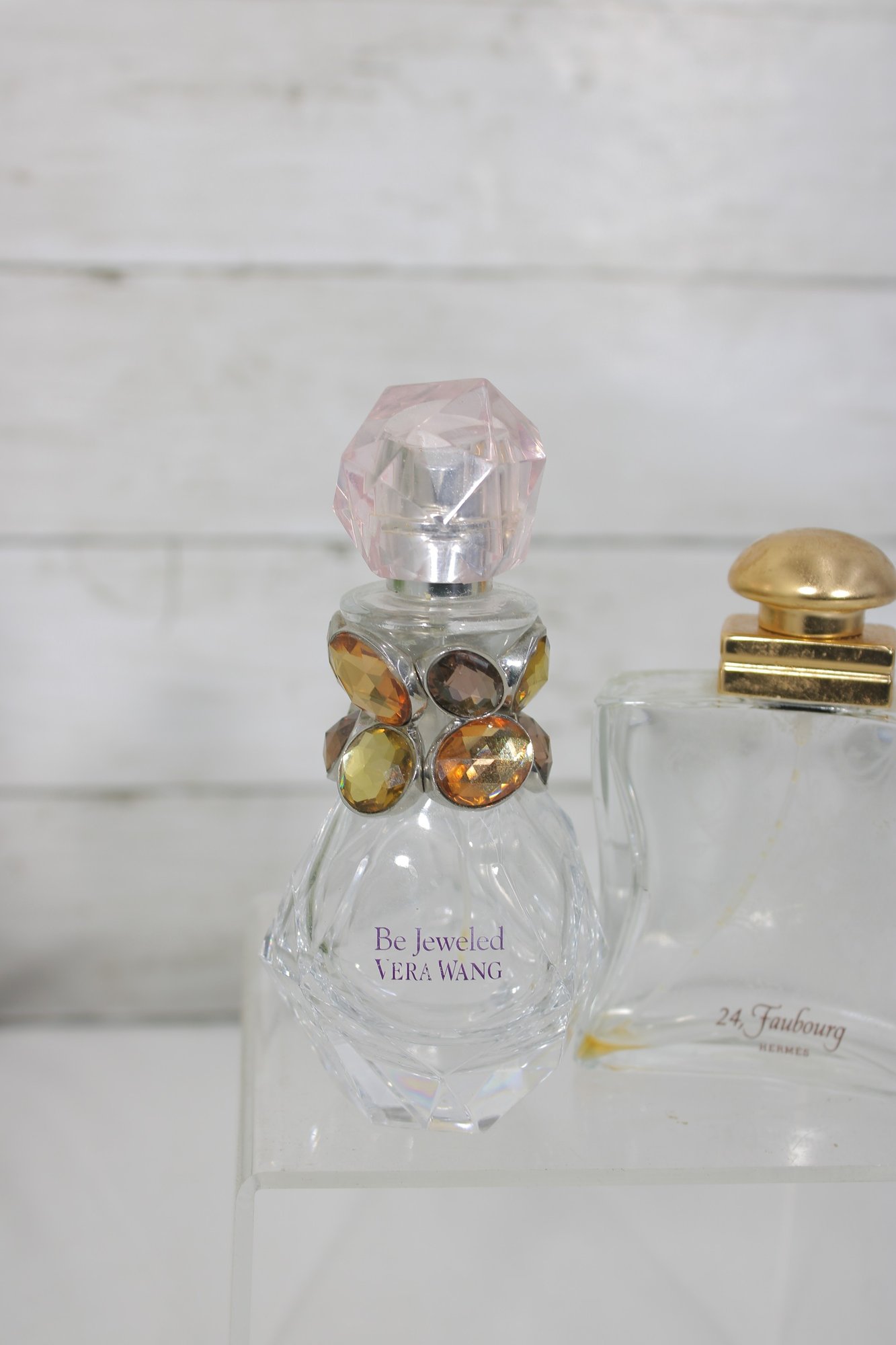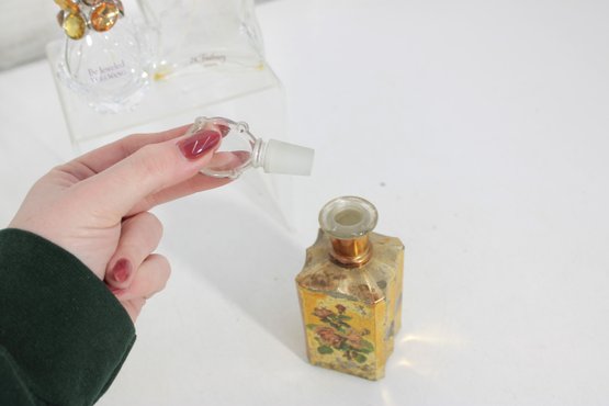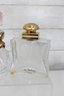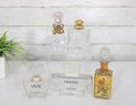 This lot includes recognizable designer bottles with elegant glass forms, crown and faceted stoppers, and classic 1970s–1990s styling.