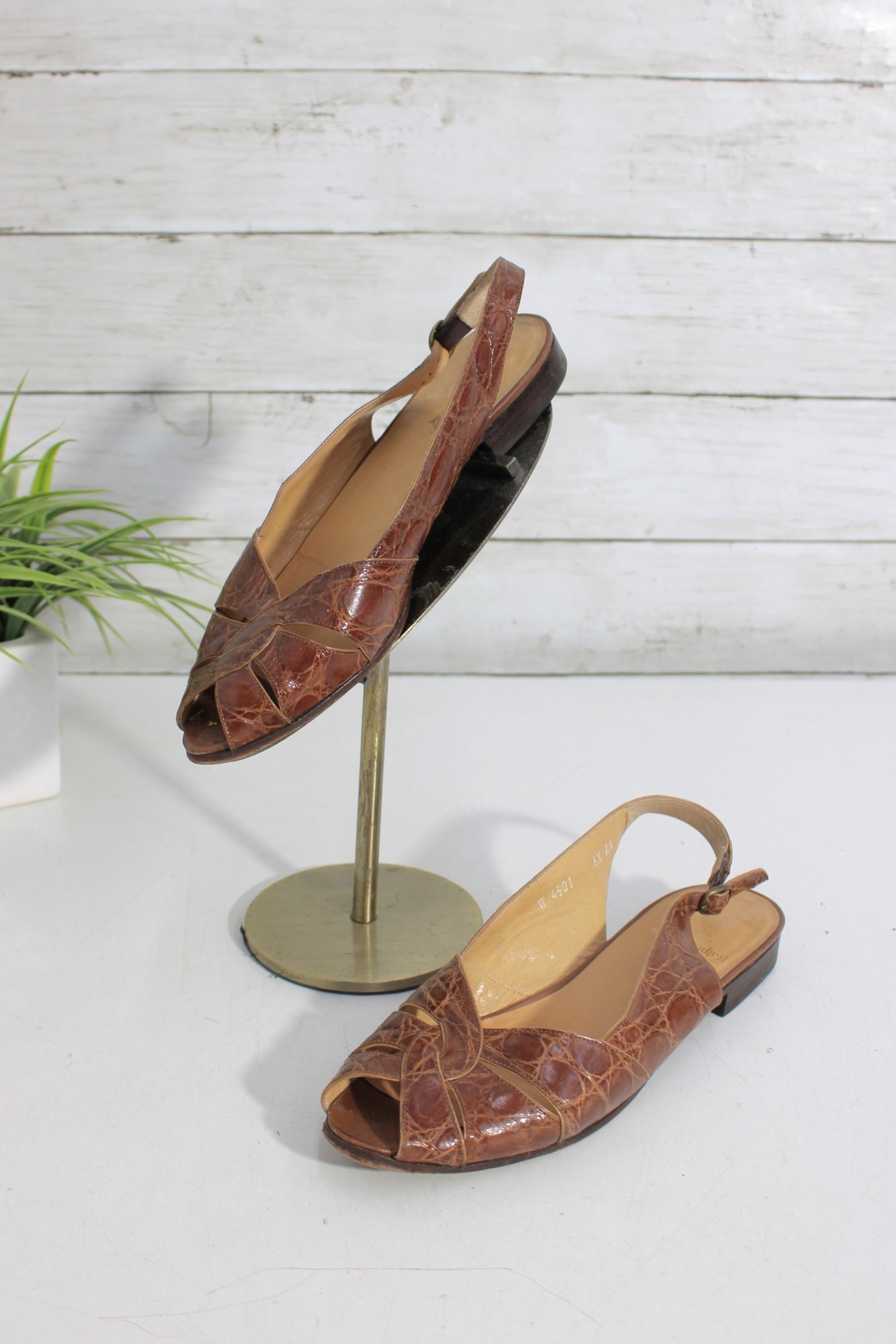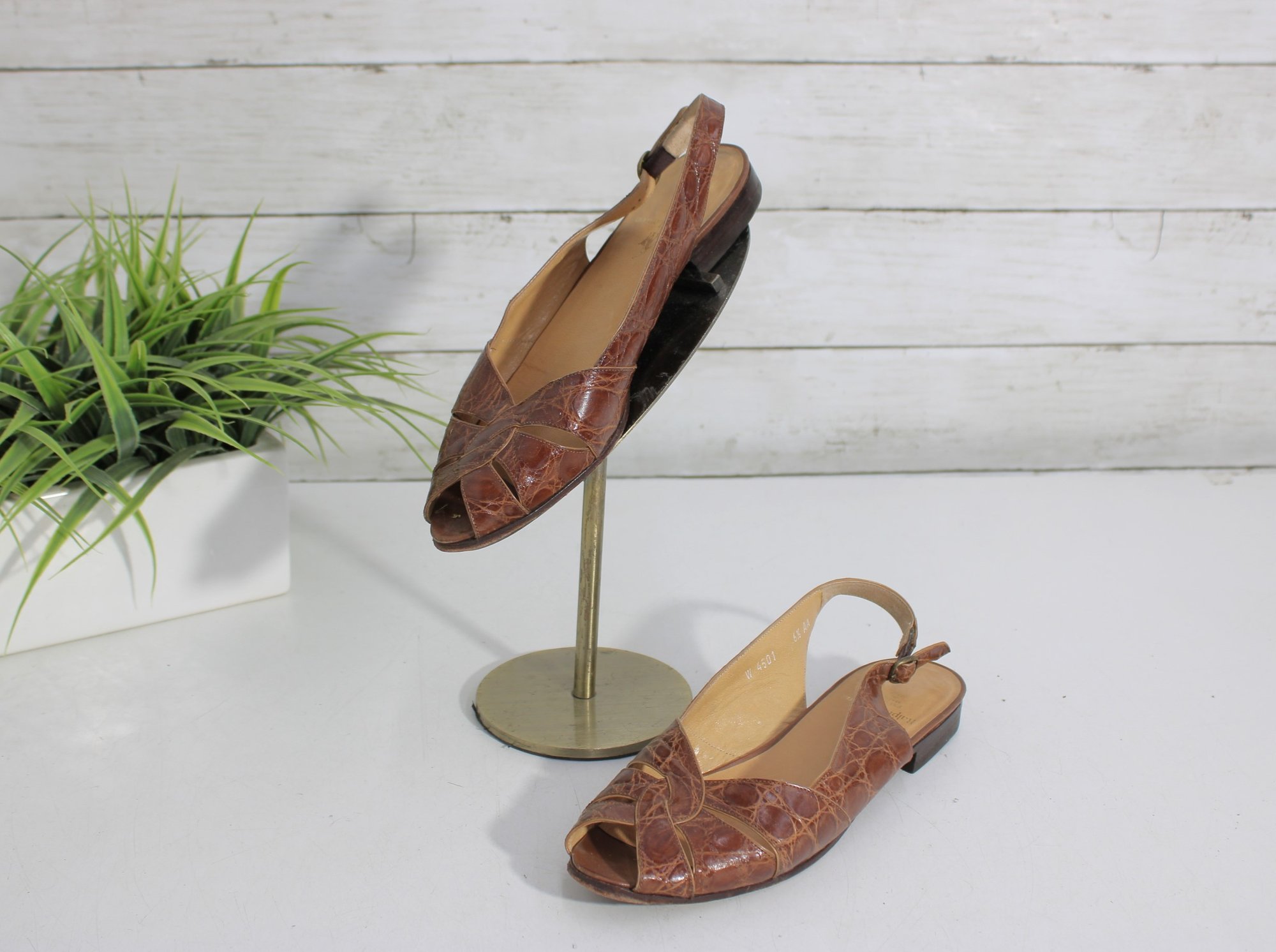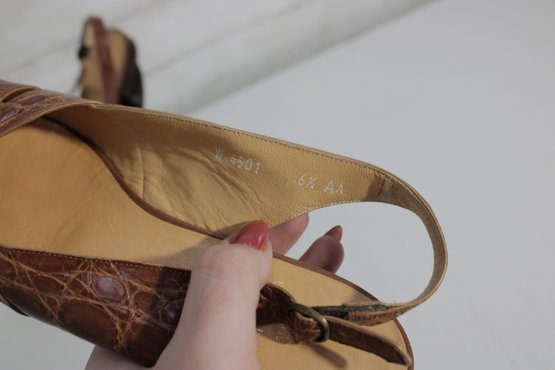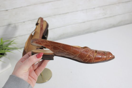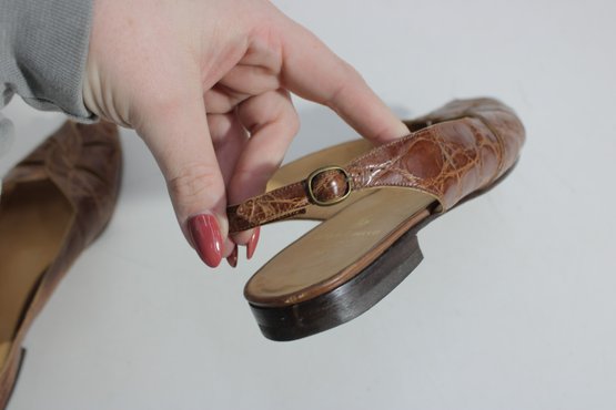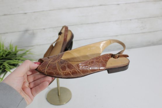 Classic and versatile, these Polo Ralph Lauren slingback flats feature a rich brown crocodile-embossed leather finish that adds texture and sophistication to a timeless silhouette.