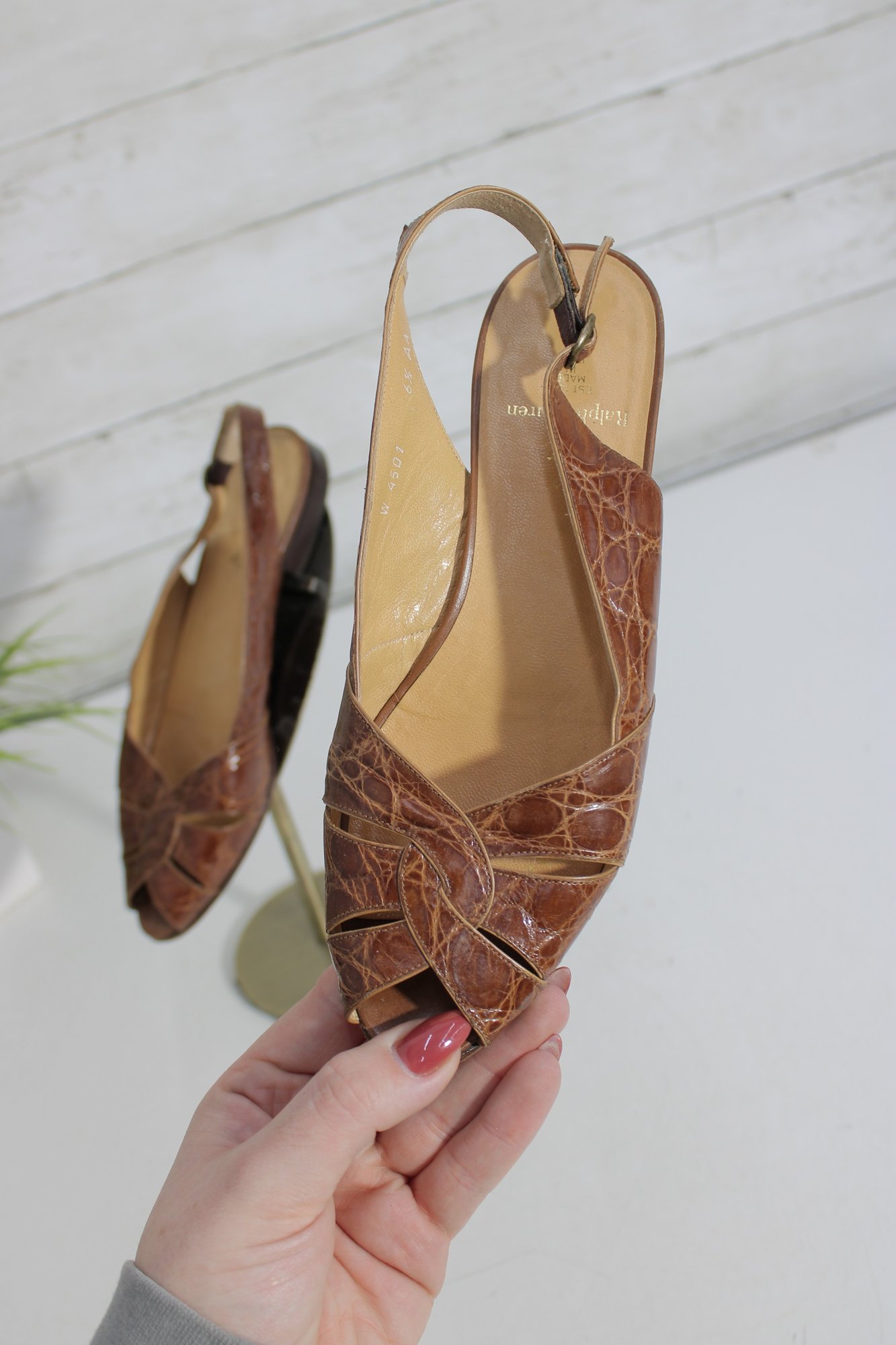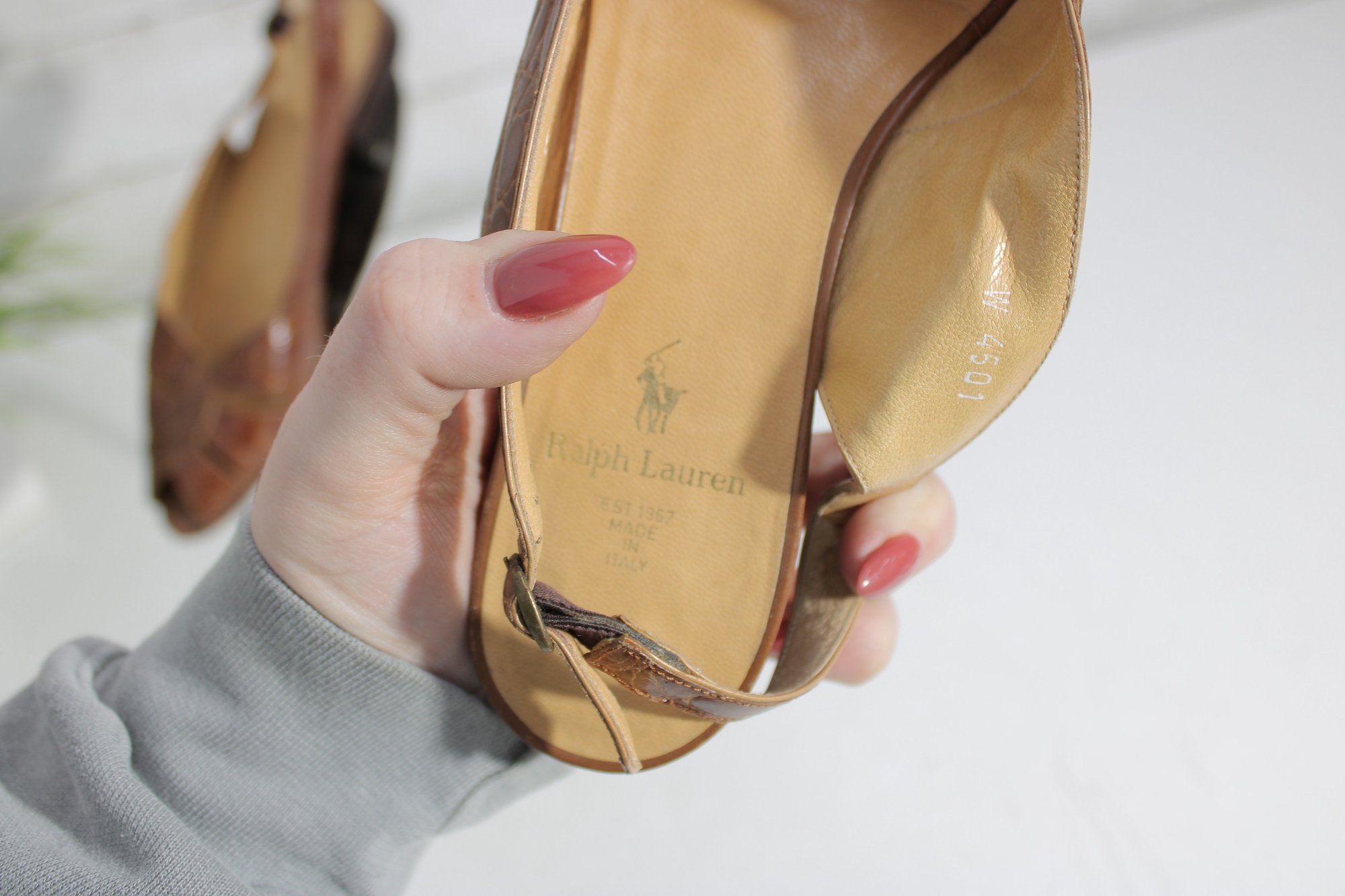 Designed with a comfortable low heel and adjustable slingback strap, these shoes are perfect for everyday wear, work, or casual outings. The peep-toe style and quality leather construction reflect Ralph Lauren’s refined, understated elegance.