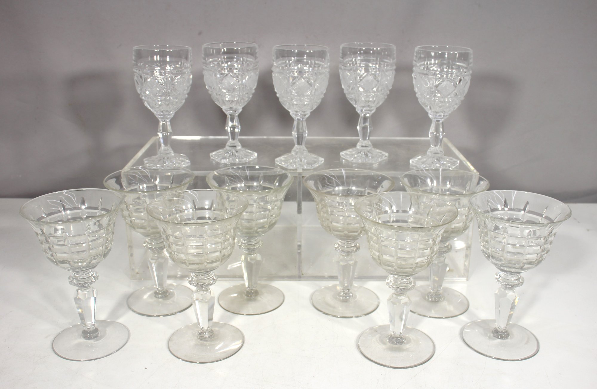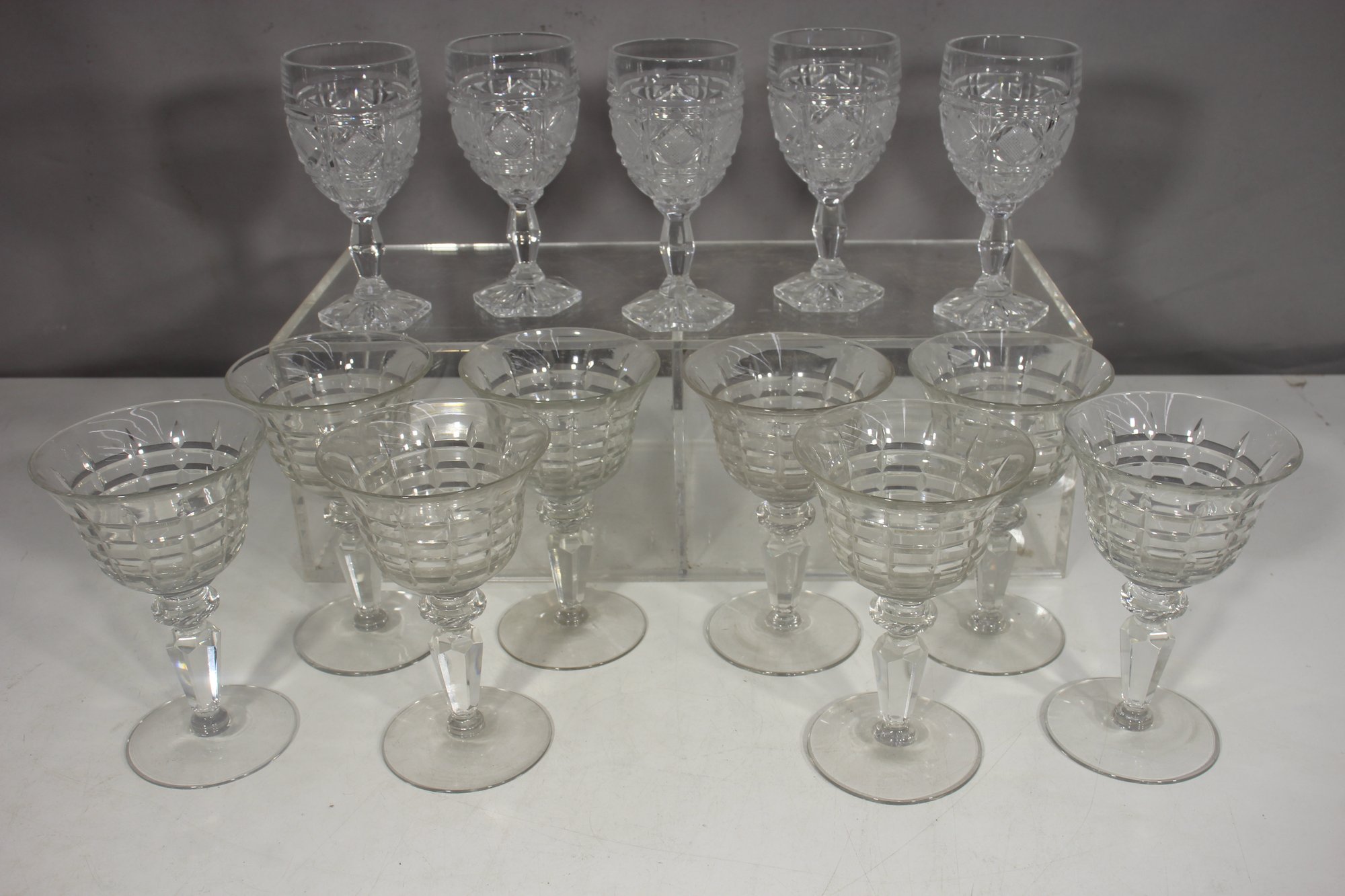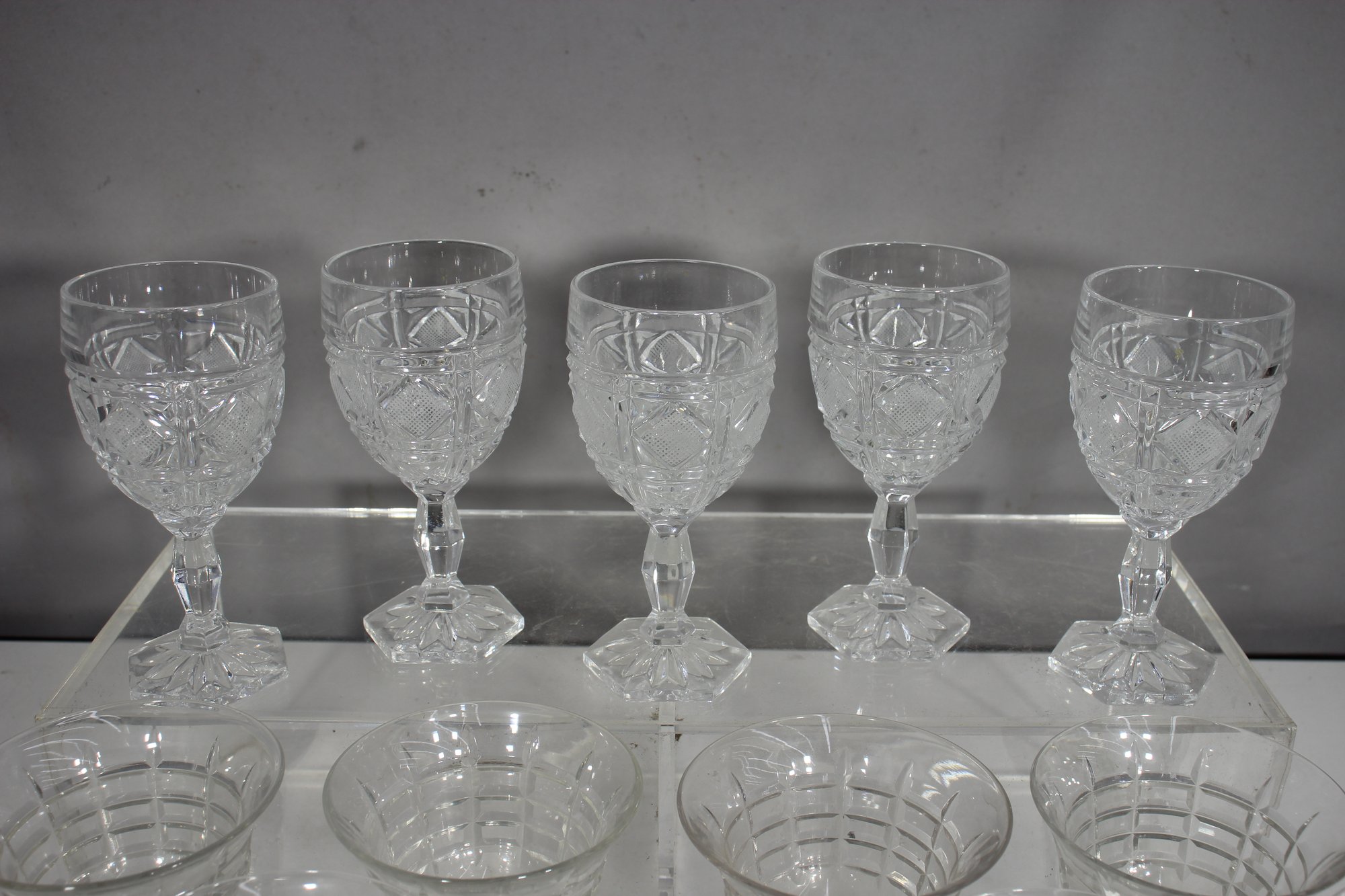 6"H Cut Crystal Stemware Glasses Mix Set
