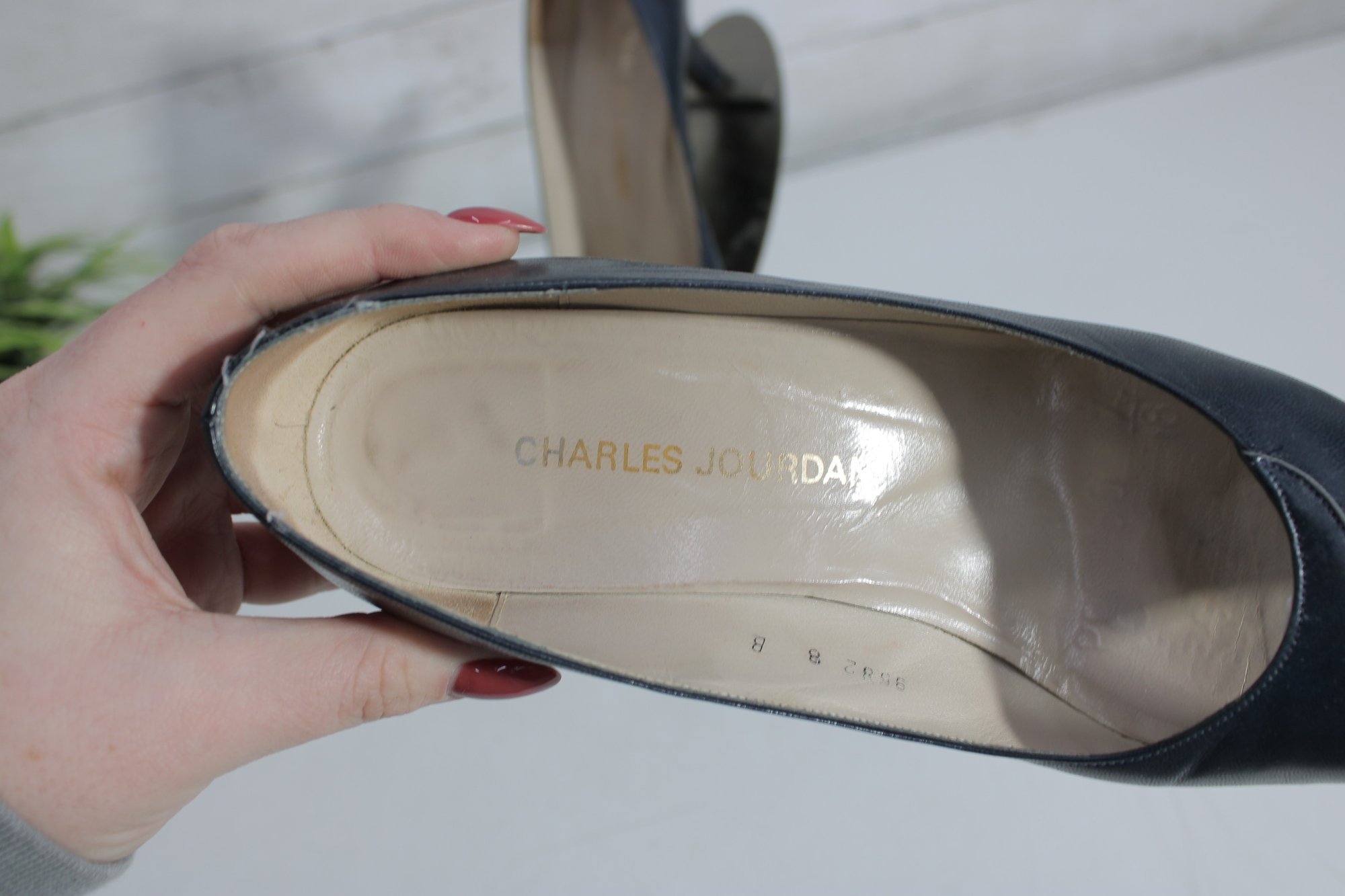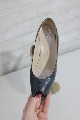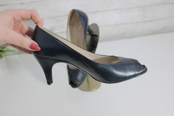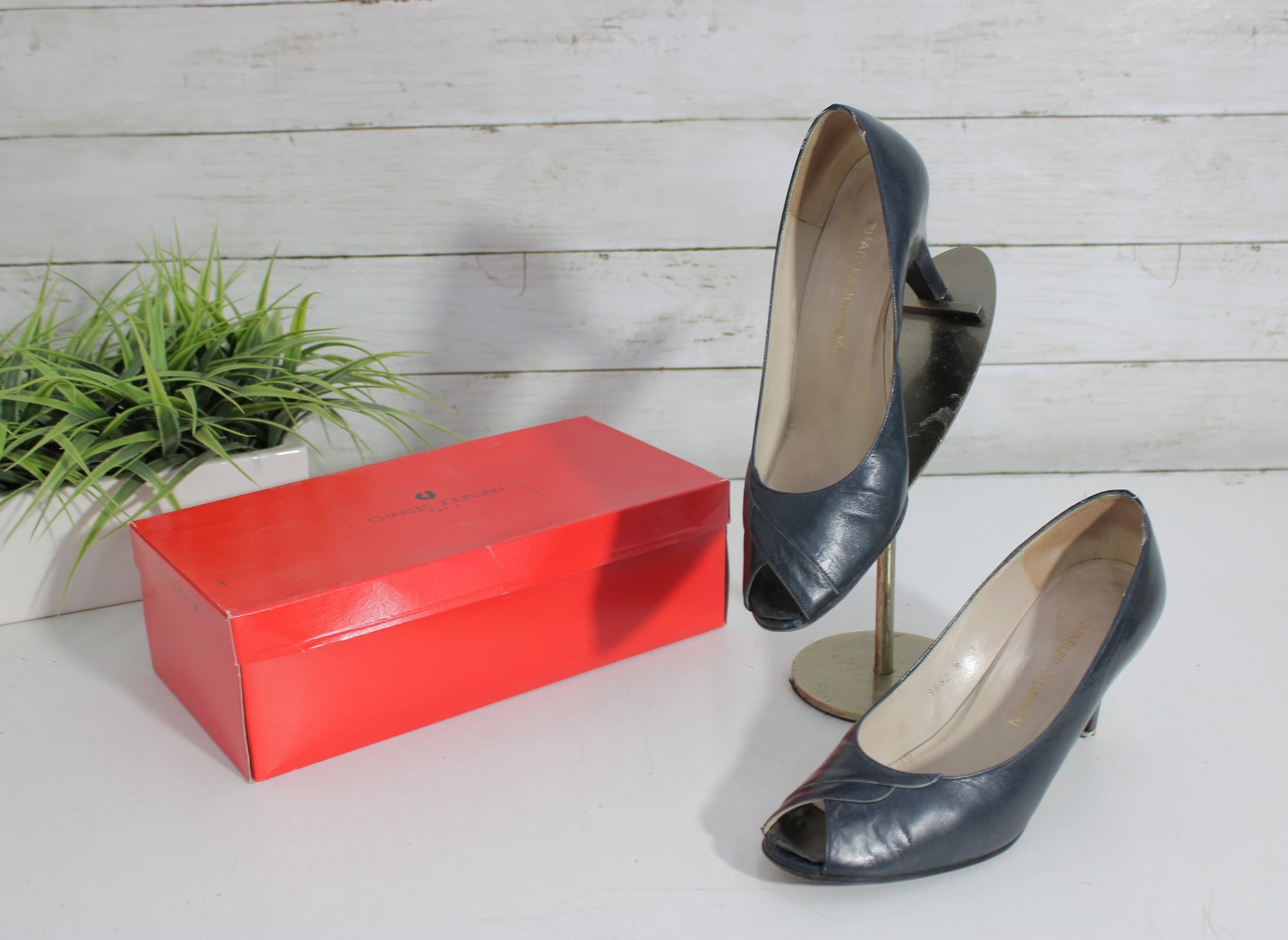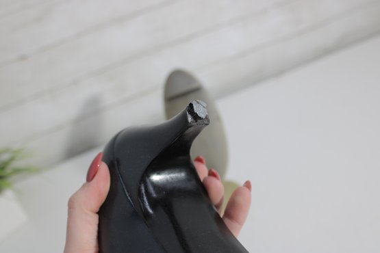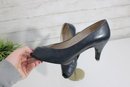 these Charles Jourdan leather pumps showcase classic French design with a sleek black leather upper and a refined silhouette. A versatile style that works beautifully for office wear, formal occasions, or polished everyday outfits.