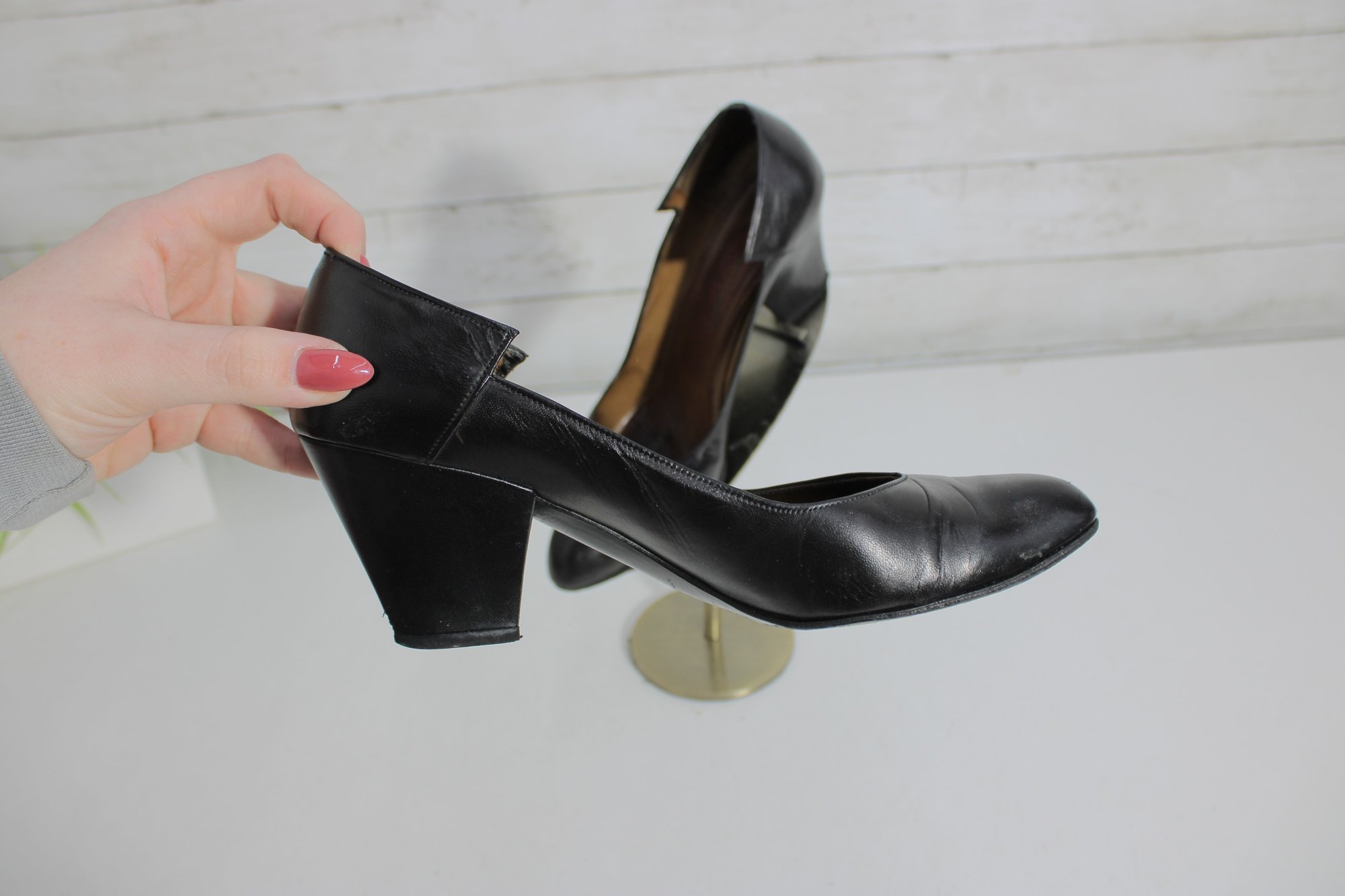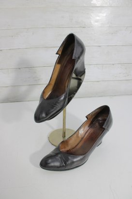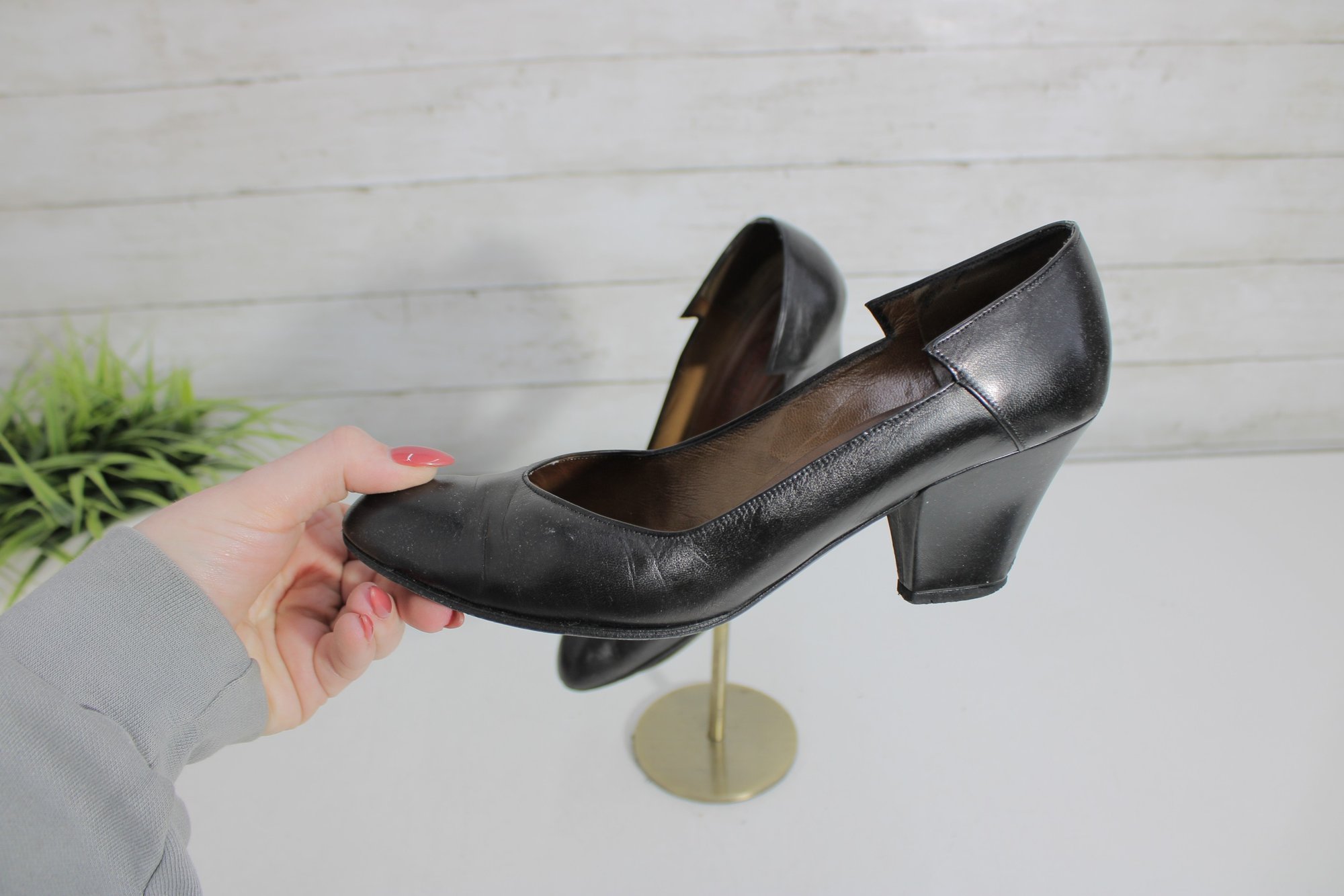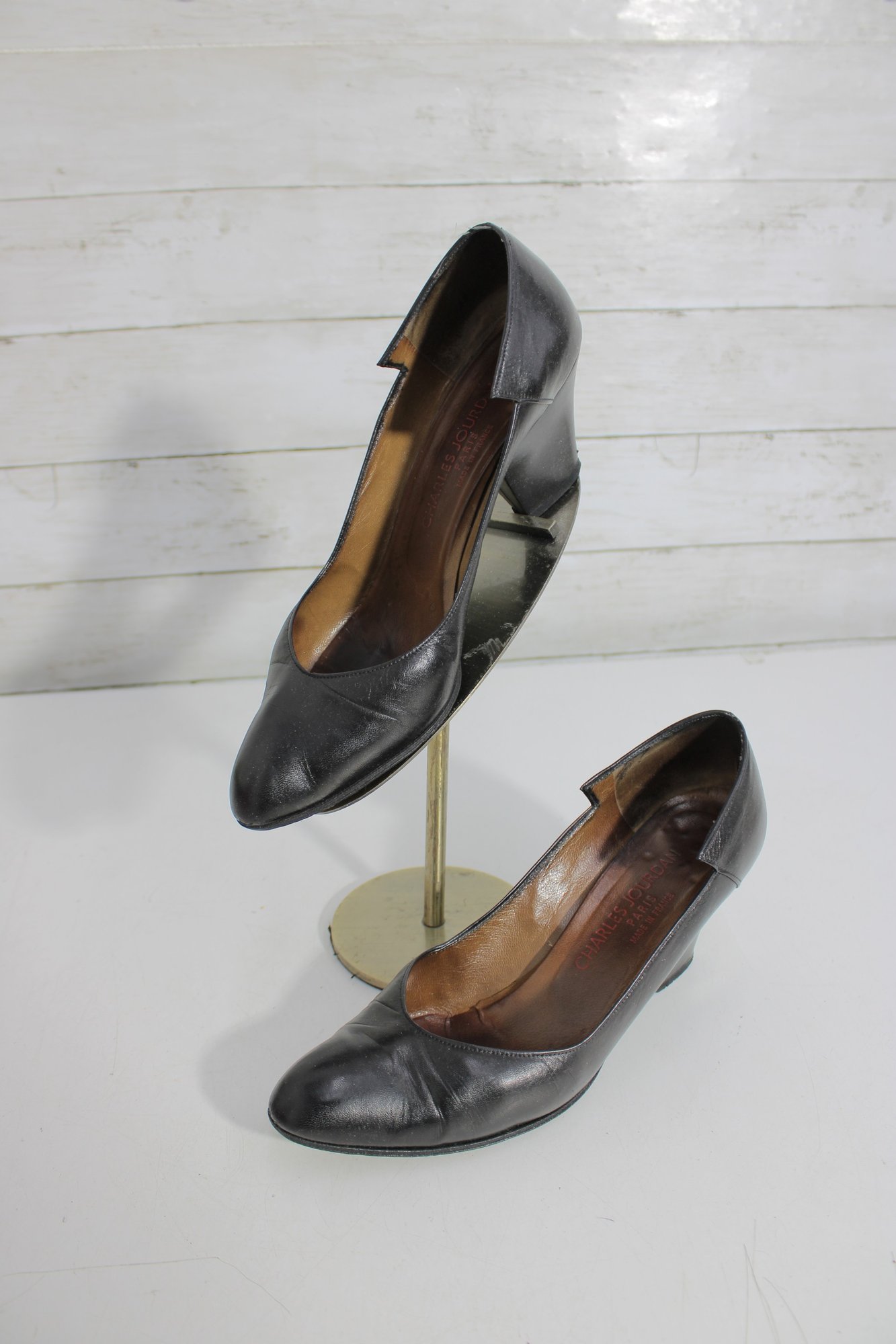 Classic and sophisticated, these vintage Charles Jourdan Paris heels are a timeless wardrobe staple. Crafted from smooth black leather, these elegant pumps feature a gently pointed toe and a comfortable block heel, offering both style and wearability.