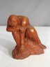 Beautiful and thought-provoking 6-inch terracotta sculpture depicting a seated, contemplative figure in a pensive pose. The piece features intricate hand-carved details, with a textured surface that enhances its raw and expressive aesthetic.