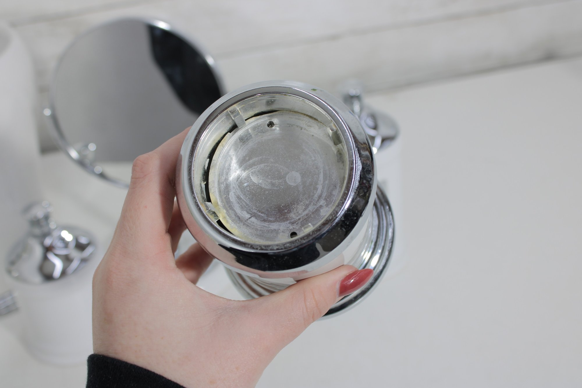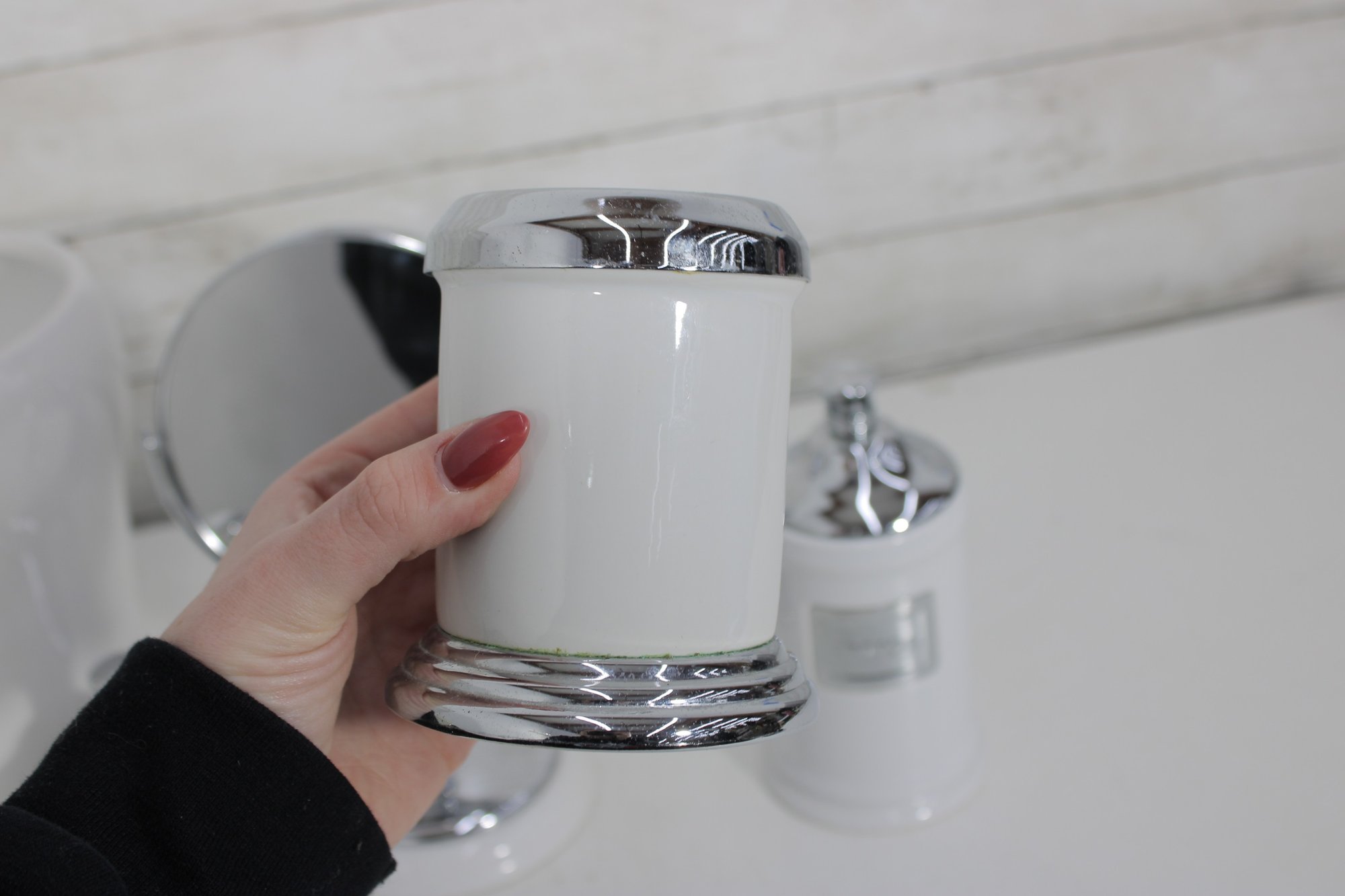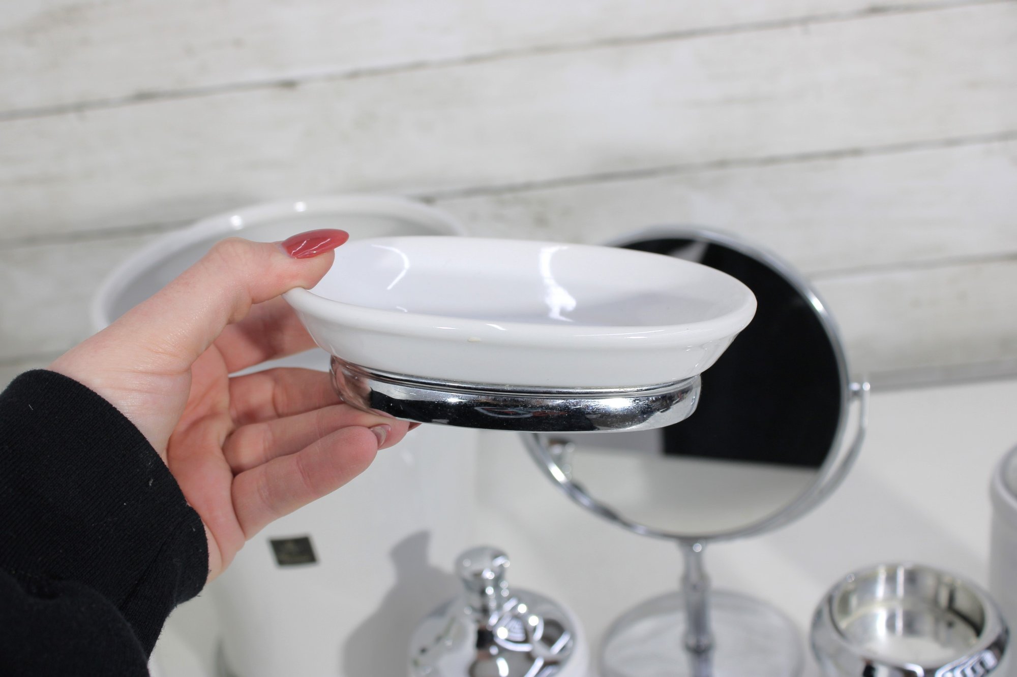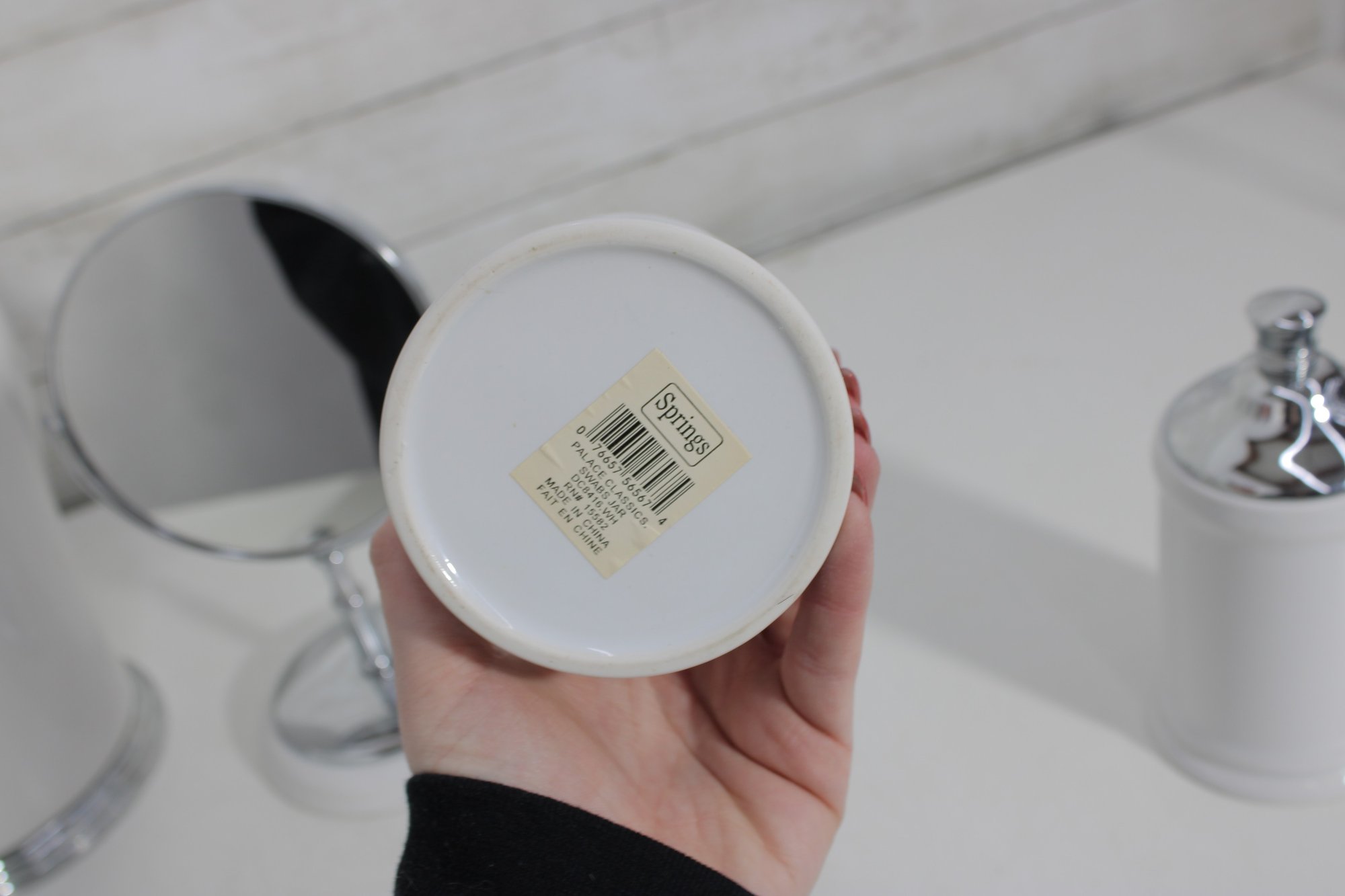 this coordinated 7-piece white and chrome bathroom accessory set. With its crisp white finish and sleek metallic accents, this collection brings a fresh, hotel-inspired feel to any bath or vanity space.