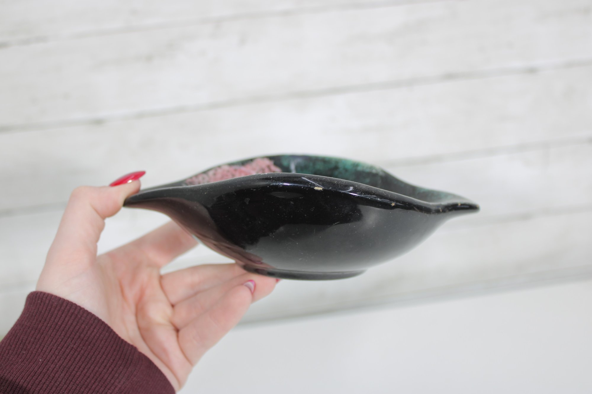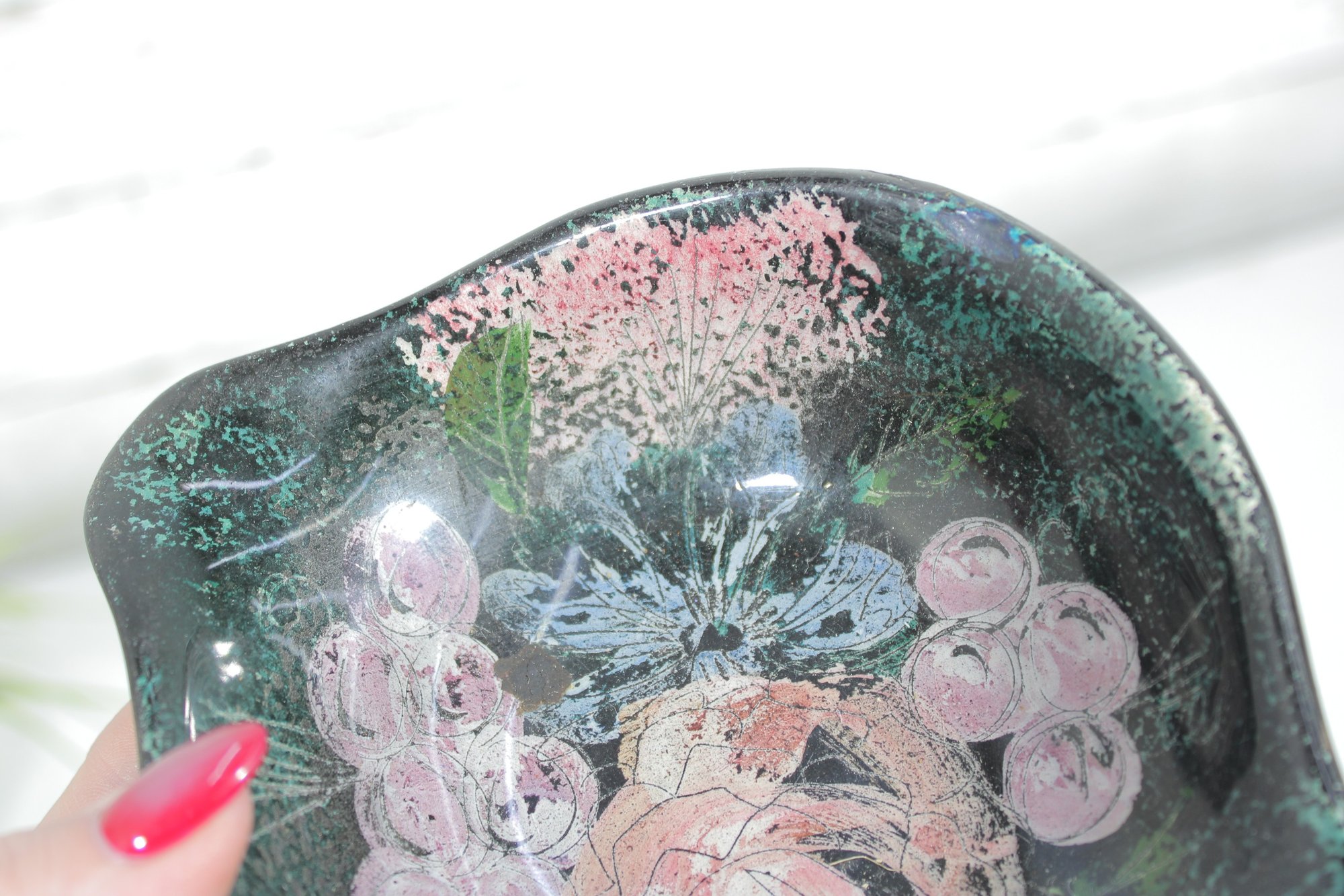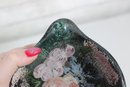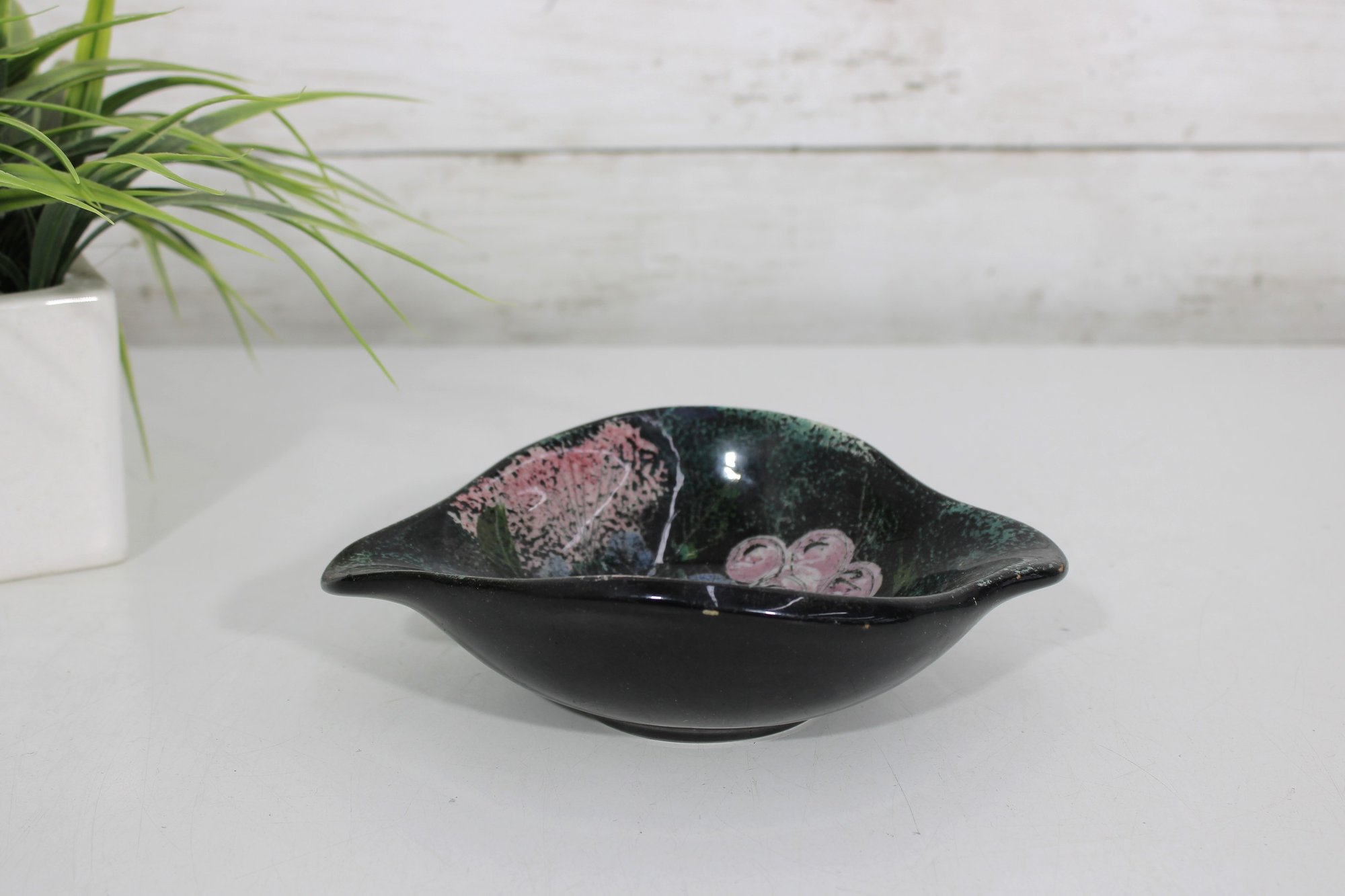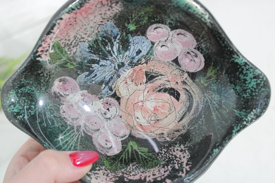 7" X 5.5"Sascha Brastoff Vanity Fair Black Floral Vanity /Trinket Dish 1950s Signed