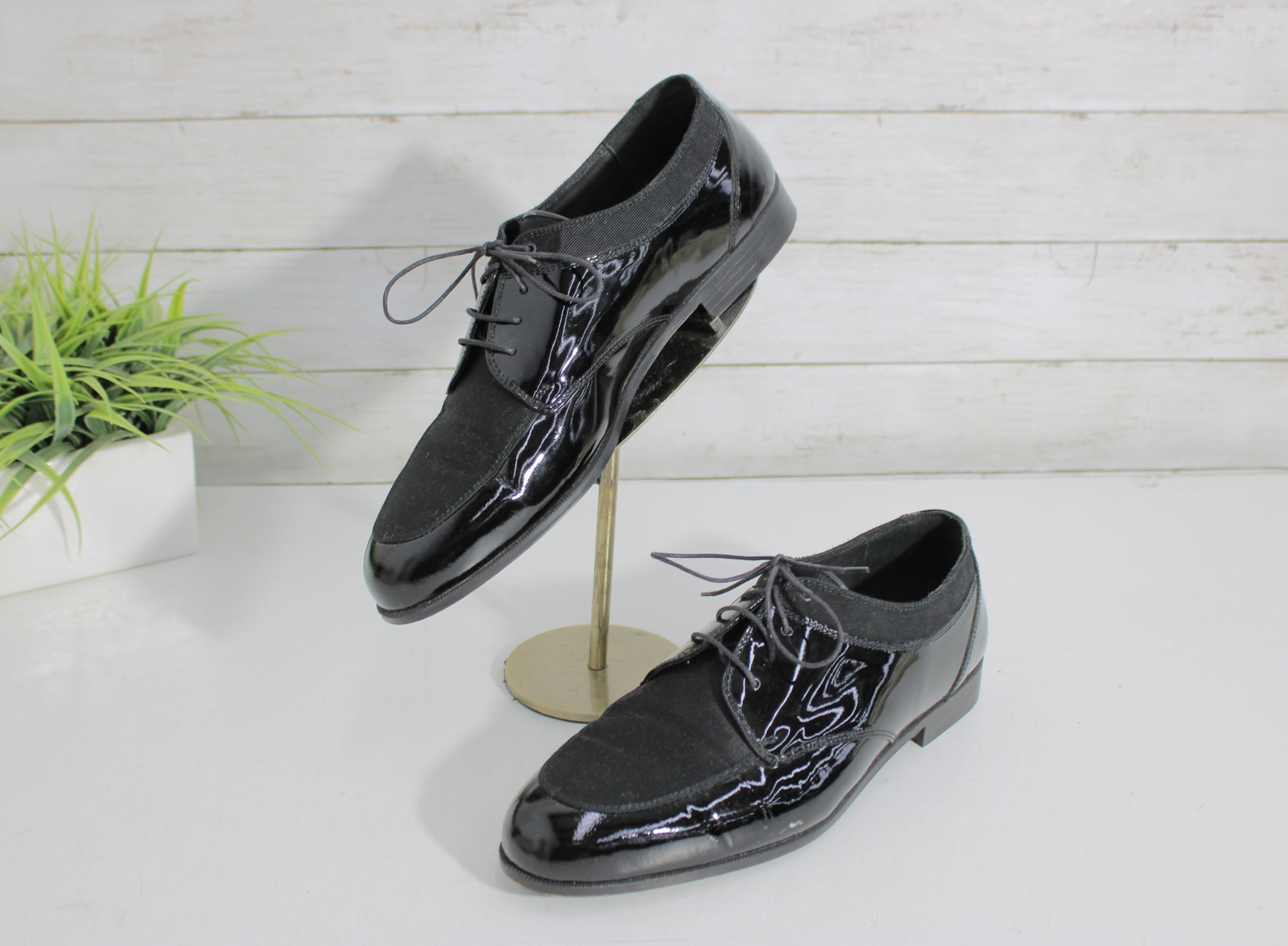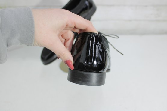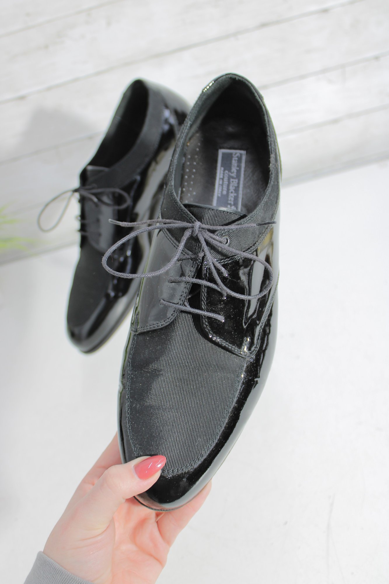 Sleek and sophisticated, these Stanley Blacker Couture oxfords blend classic tailoring with modern style. Featuring a striking mix of glossy black patent leather and soft suede, these lace-up shoes offer a polished look perfect for workwear, dressy casual outfits, or menswear-inspired fashion.