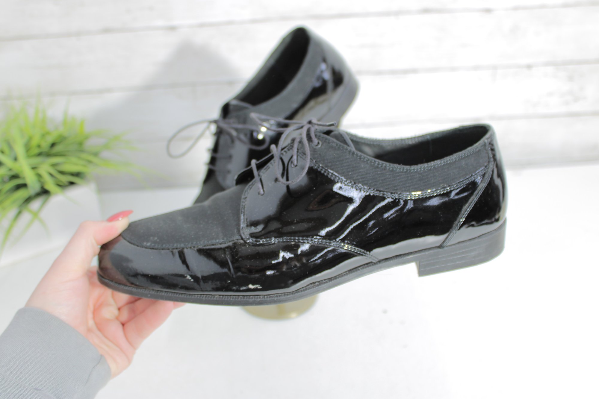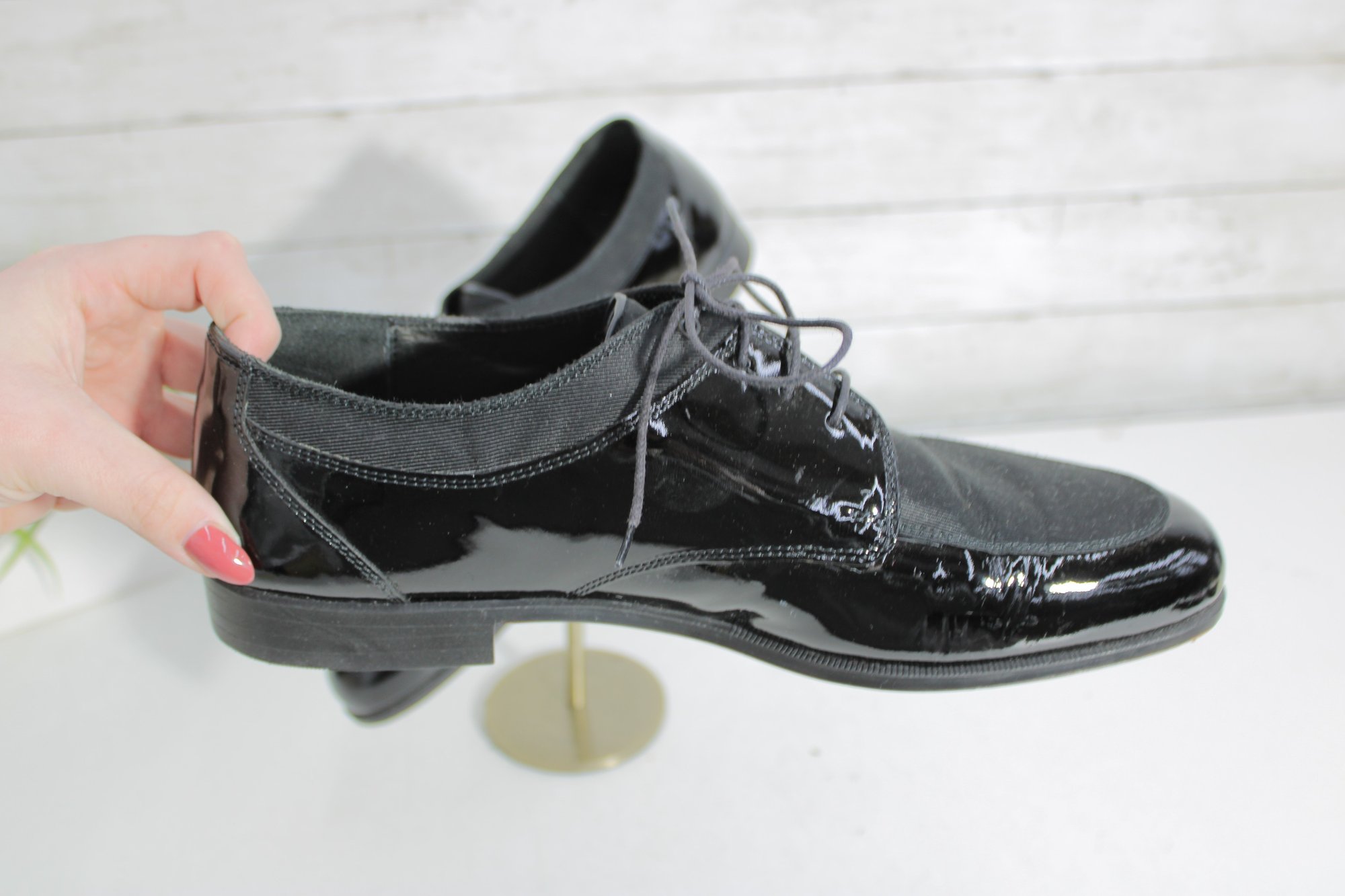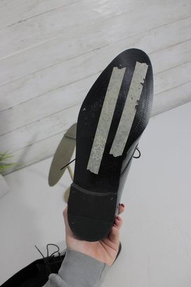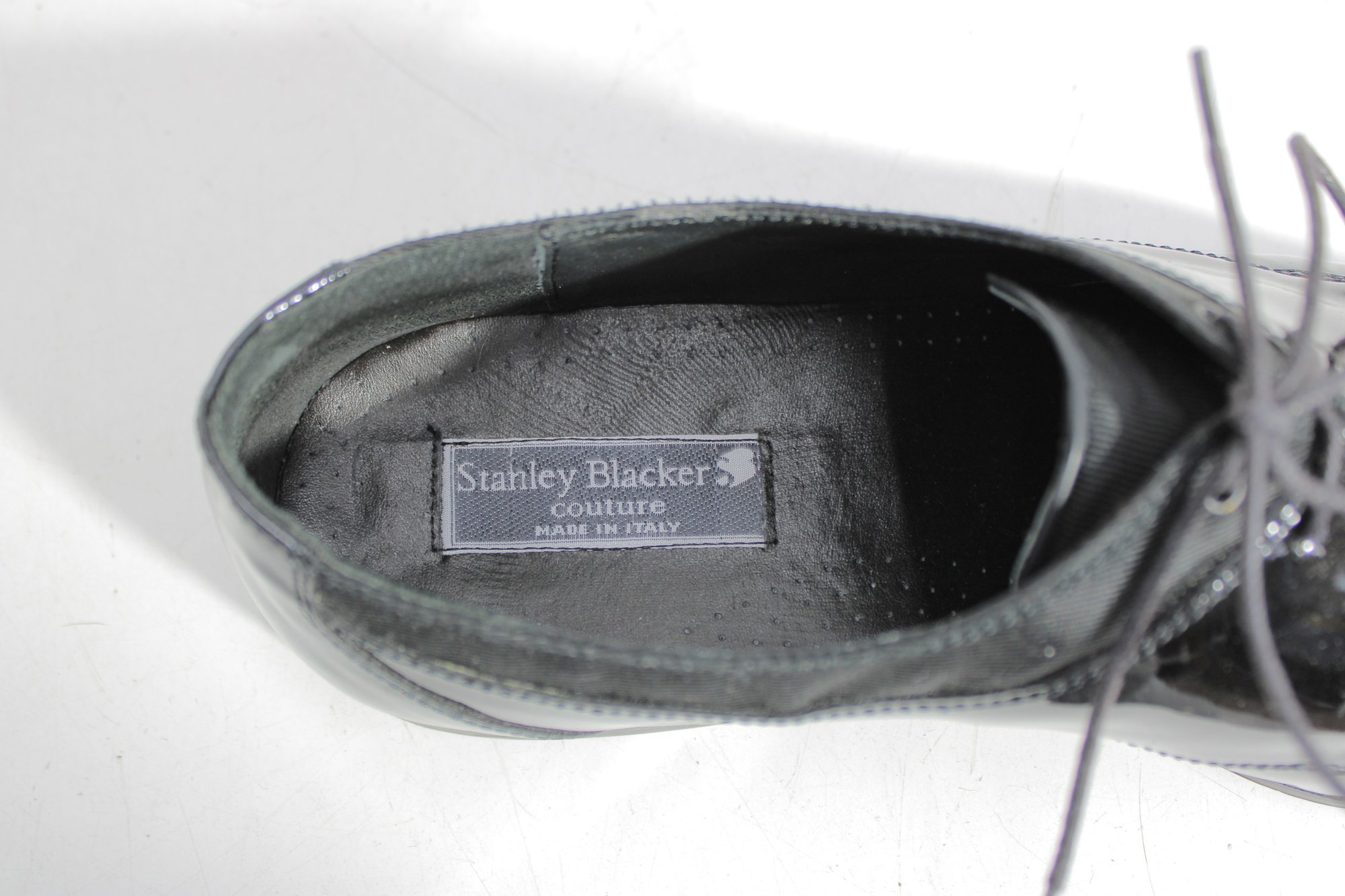 Sleek and sophisticated, these Stanley Blacker Couture oxfords blend classic tailoring with modern style. Featuring a striking mix of glossy black patent leather and soft suede, these lace-up shoes offer a polished look perfect for workwear, dressy casual outfits, or menswear-inspired fashion.