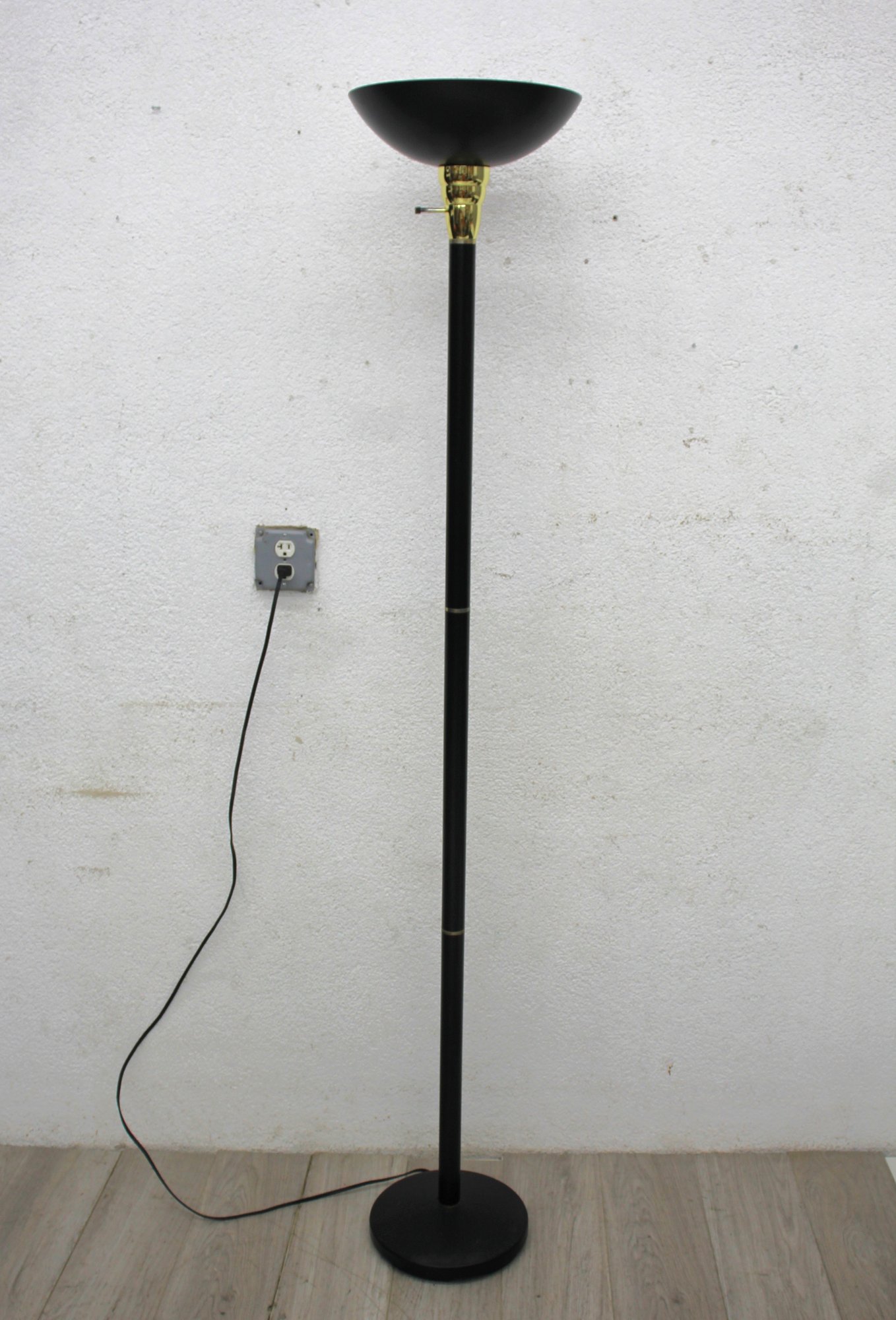 72" Tall Black Torchiere Floor Lamp With Brass Accents