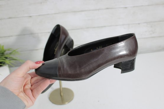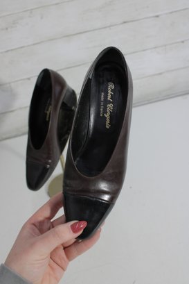 Timeless elegance from iconic French designer Robert Clergerie. These classic brown leather pumps are beautifully crafted in France and feature a sleek, minimalist silhouette with a comfortable low block heel—perfect for everyday wear or polished office looks.