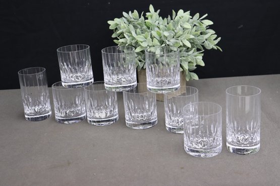 8 Mikasa Park Avenue Vertical Cut Crystal Old Fashioned Glasses And 2 Highballs