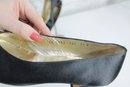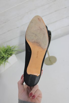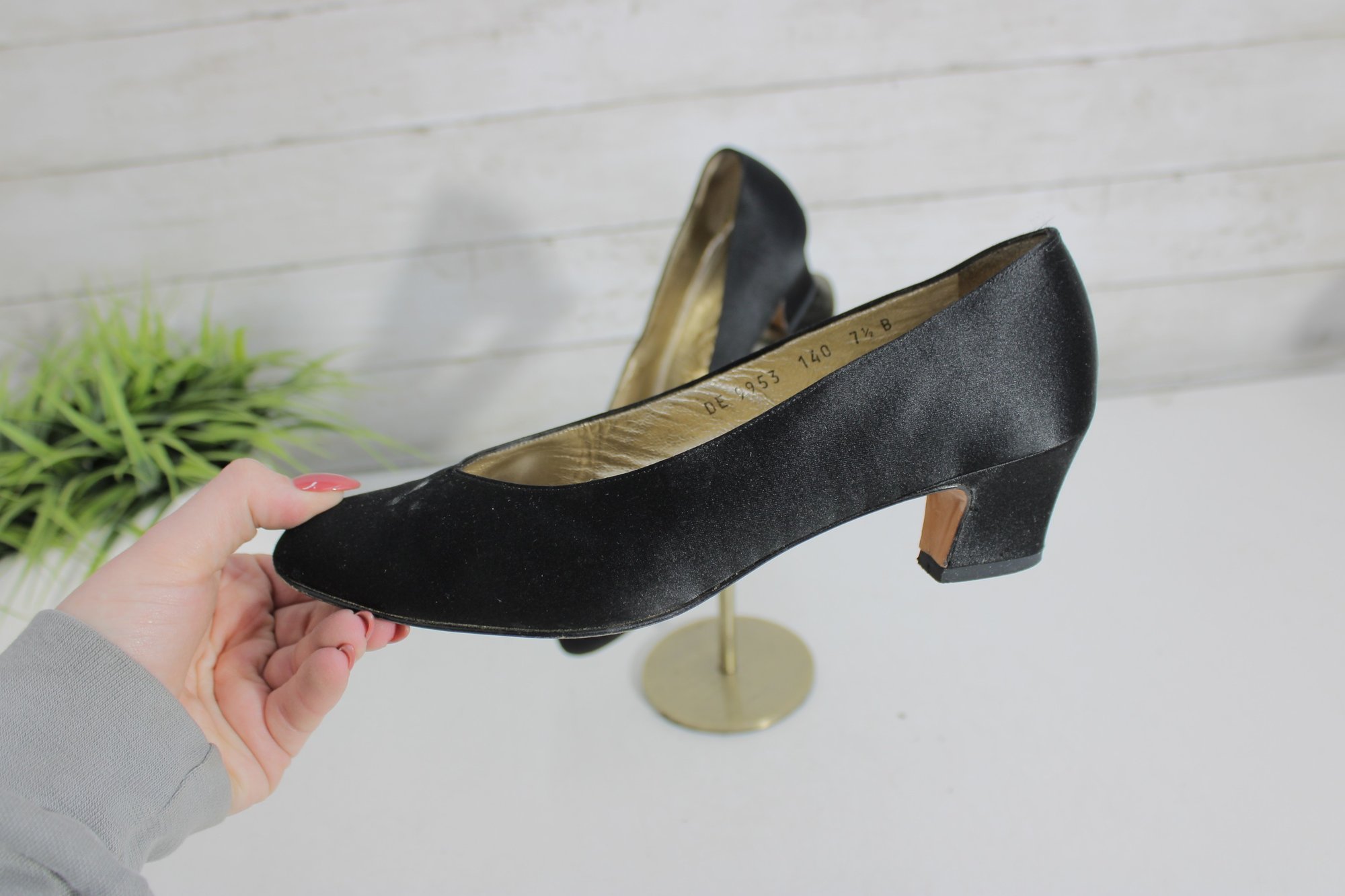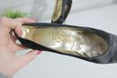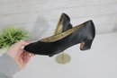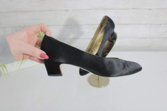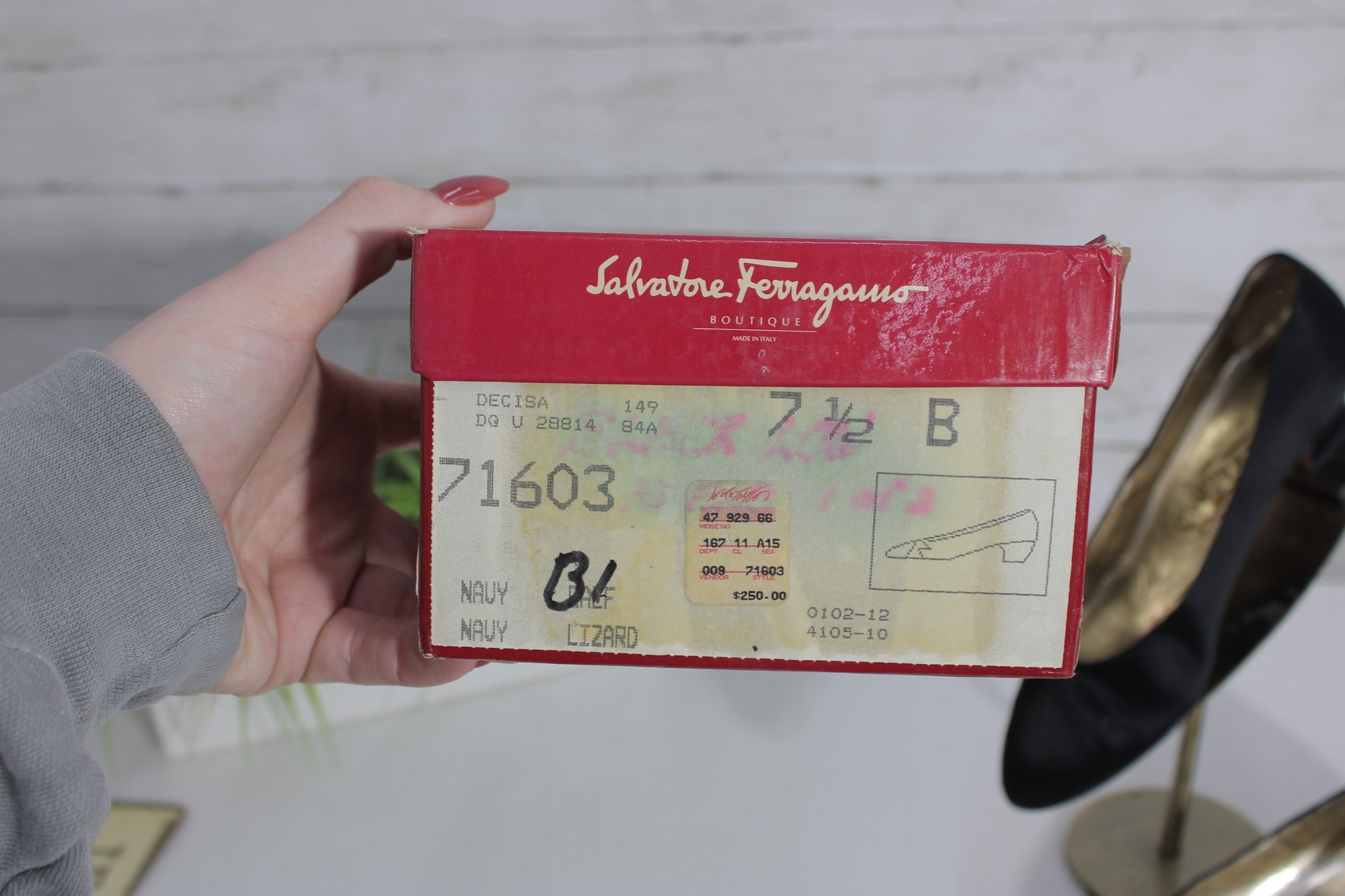 Timeless designer elegance from Salvatore Ferragamo. These classic black pumps feature a refined silhouette with a comfortable low block heel, making them perfect for professional wear, special occasions, or everyday sophistication.