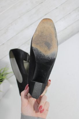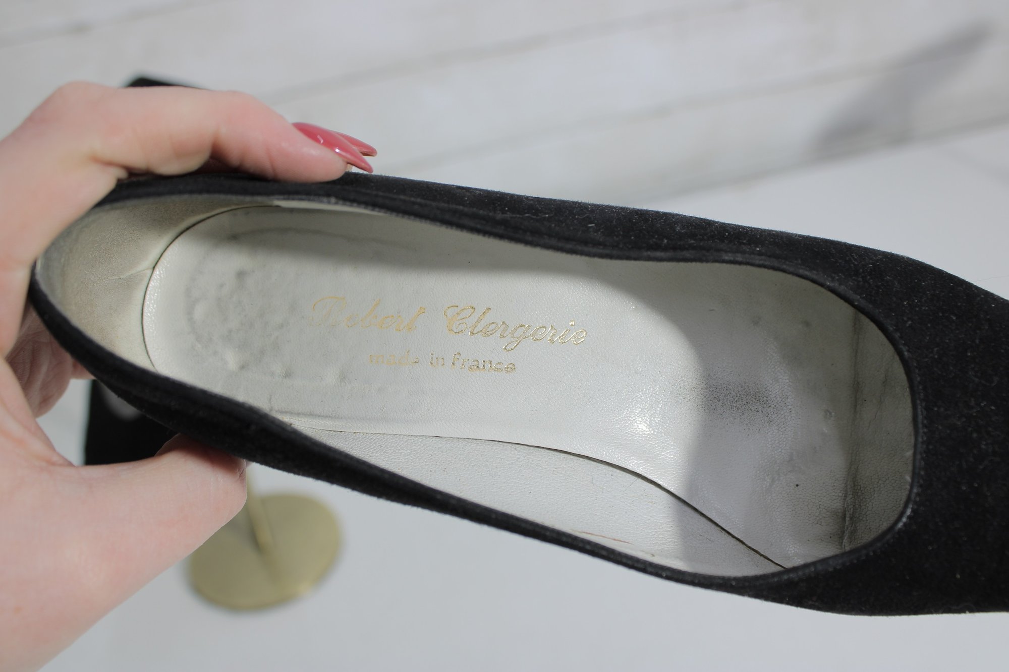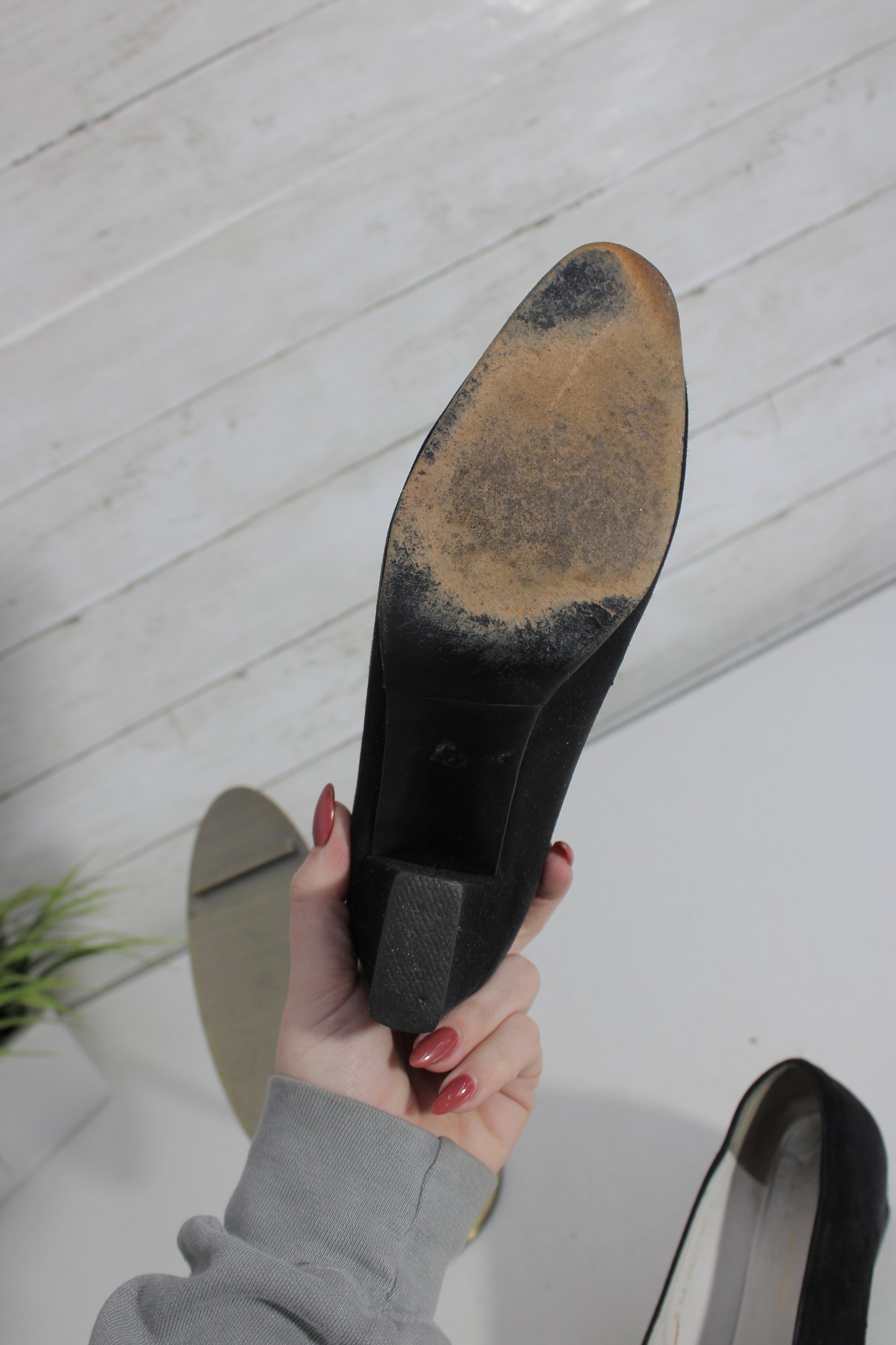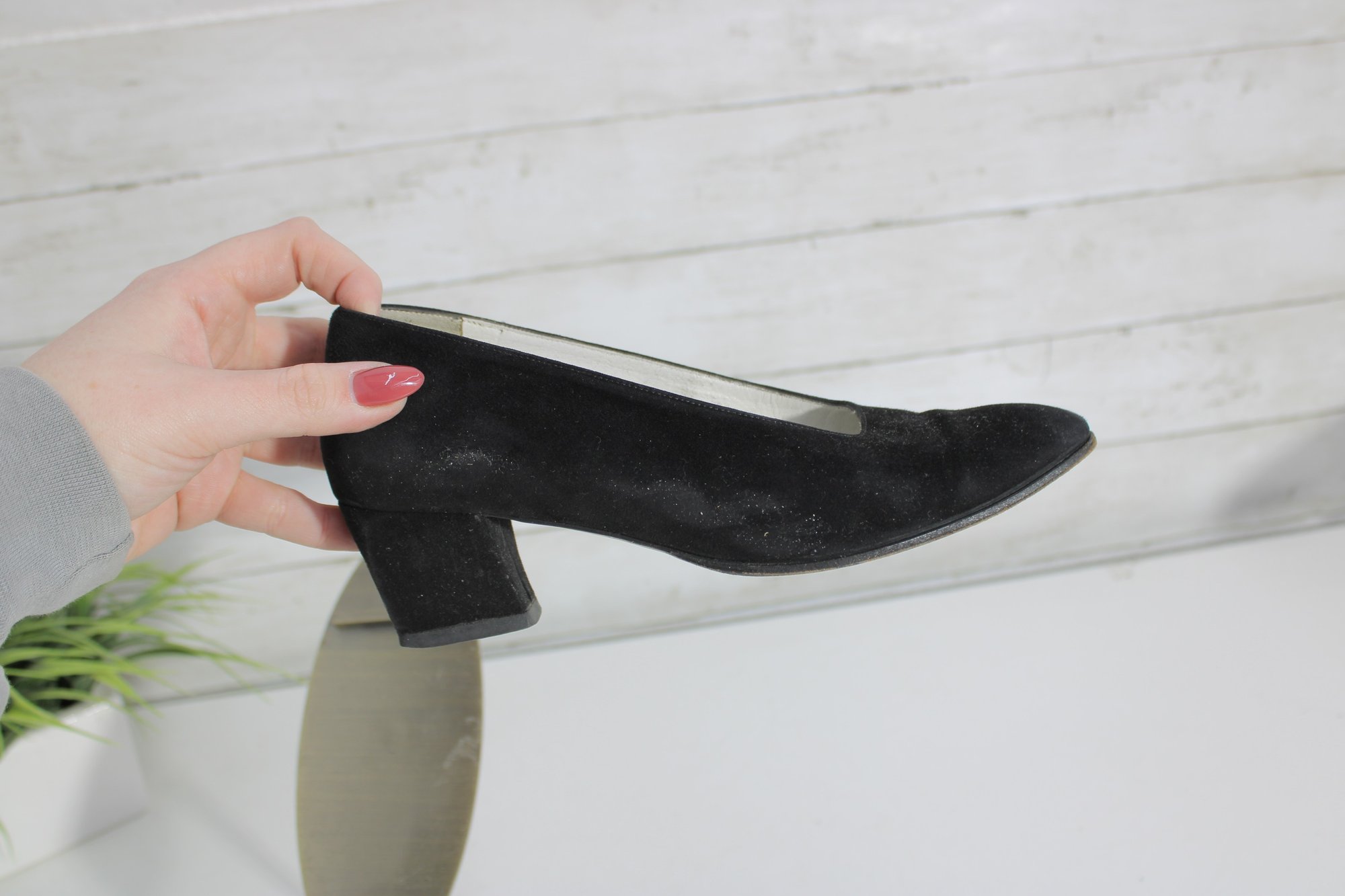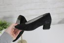 Timeless French design from Robert Clergerie. These elegant black suede pumps feature a clean, classic silhouette paired with a comfortable block heel—perfect for professional wear, special occasions, or refined everyday style.