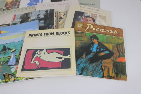 Extensive collection of vintage and modern art books and exhibition catalogs featuring a wide range of artists, styles, and movements. This diverse lot includes titles on renowned artists such as Picasso, Matisse, Pierre Bonnard, and others, along with museum publications and printmaking references.