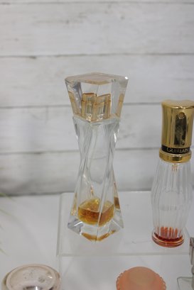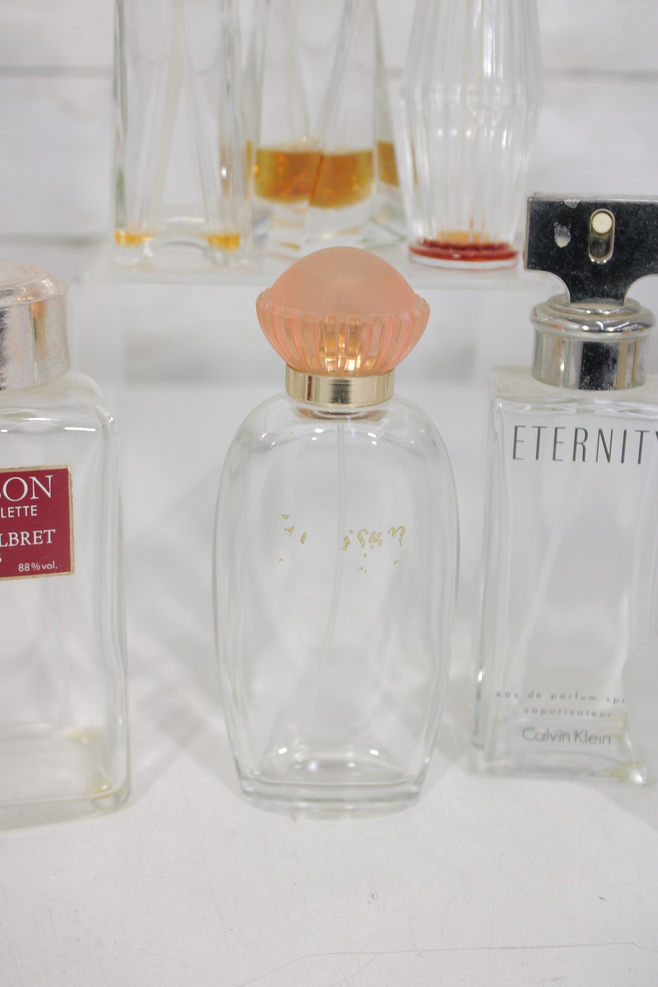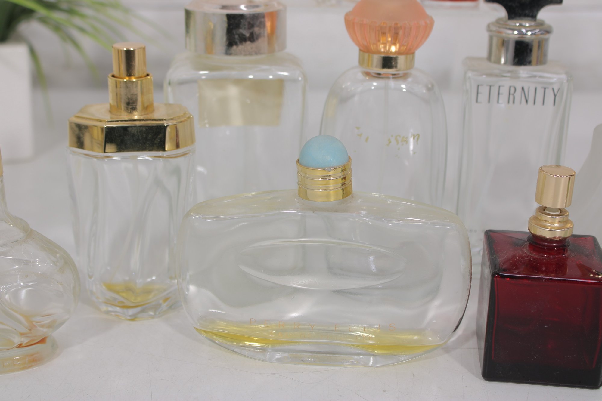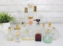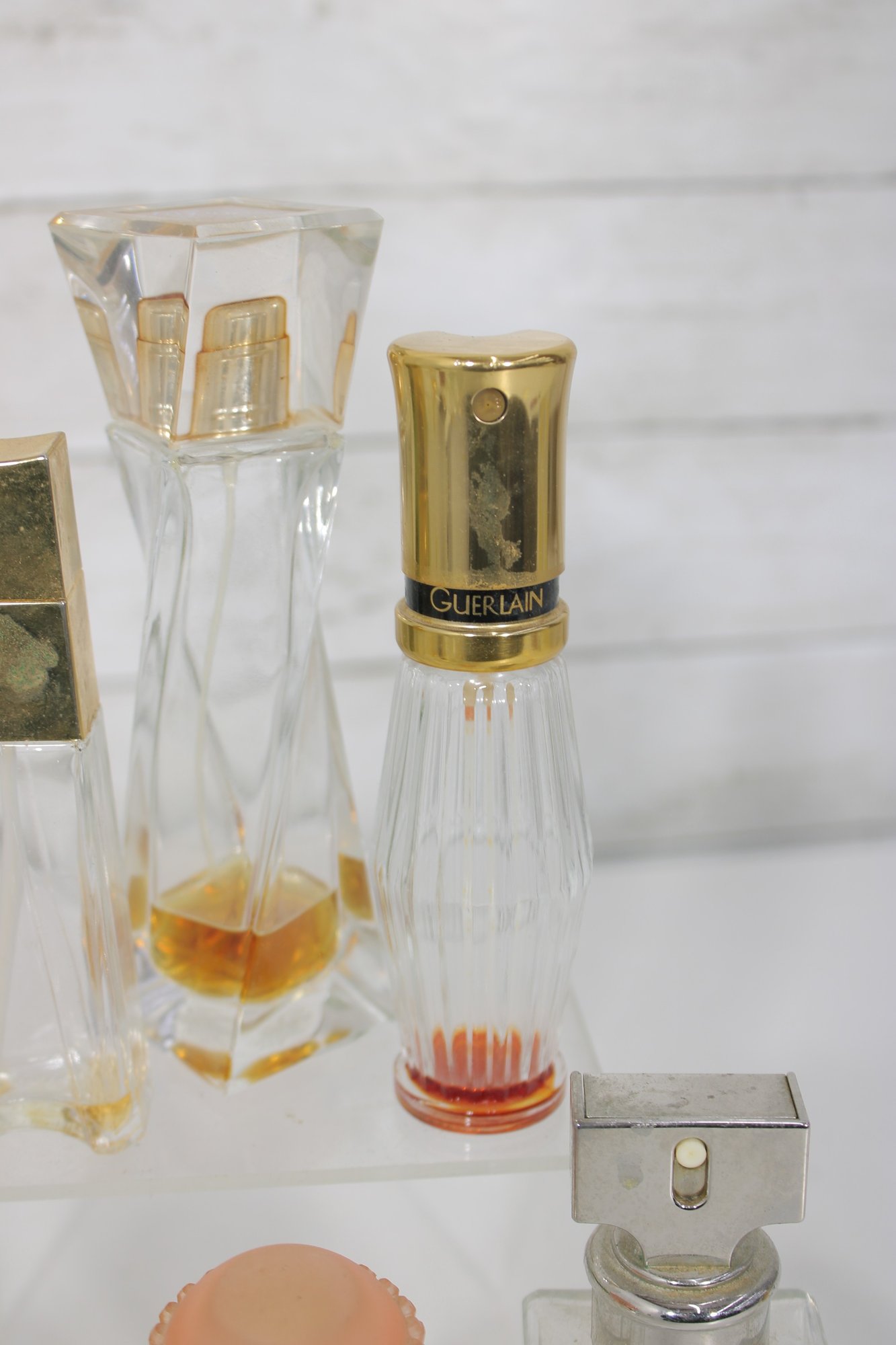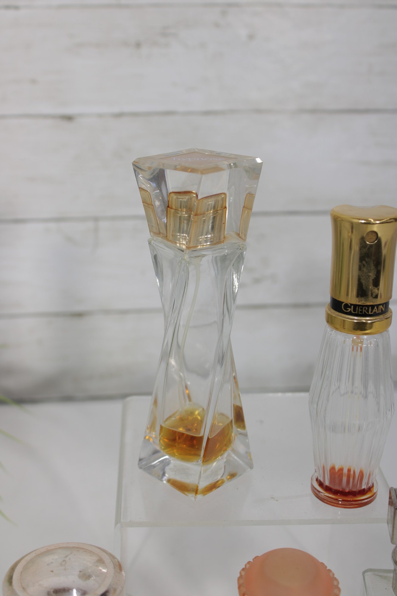 vintage designer perfume bottle group lot, featuring a variety of recognizable fragrance brands — all pre-owned and previously used.