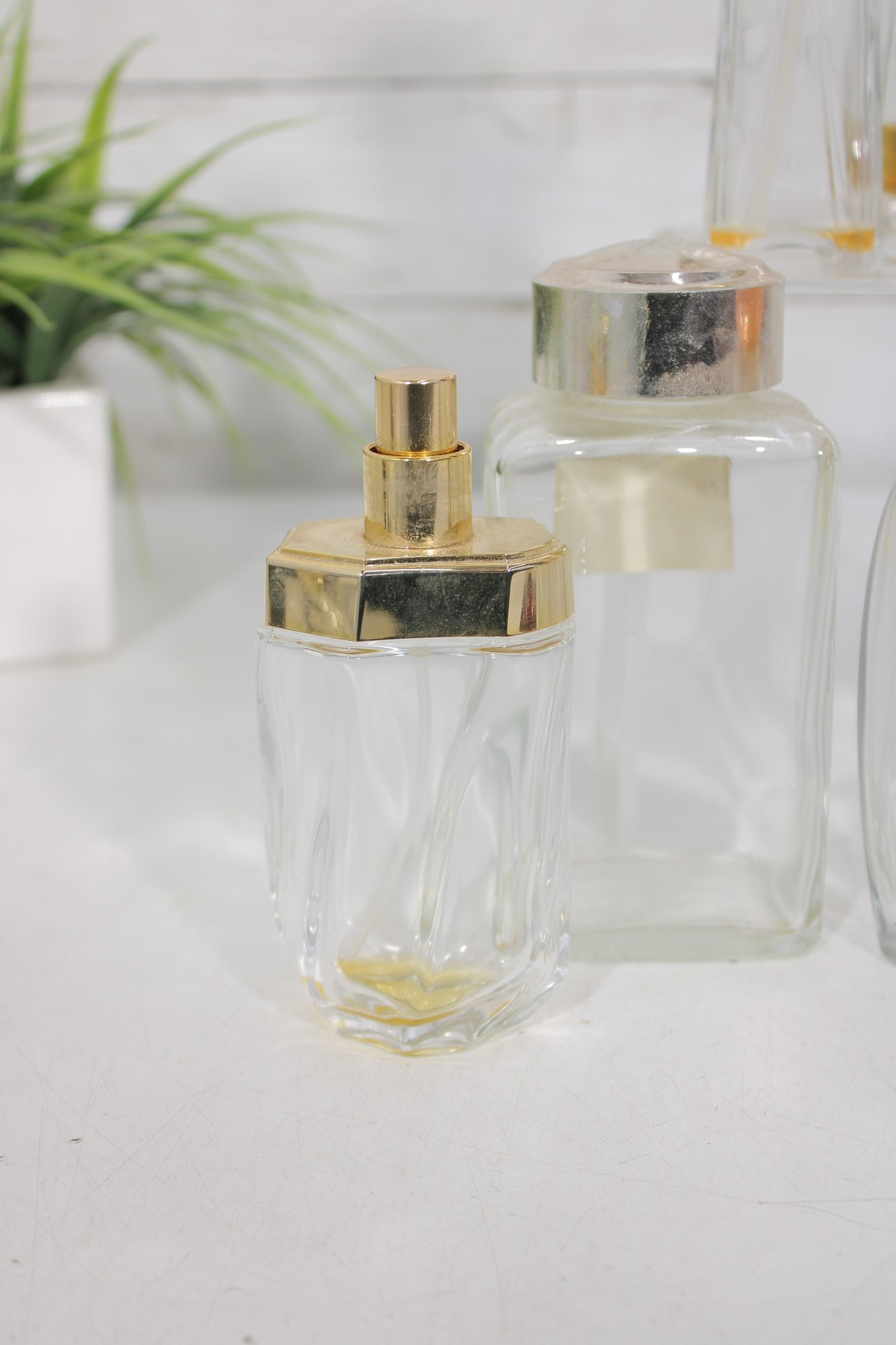 This elegant assortment includes multiple glass perfume bottles in classic and decorative styles, including splash bottles and spray atomizers. A great opportunity for collectors, resellers, or decorative display.