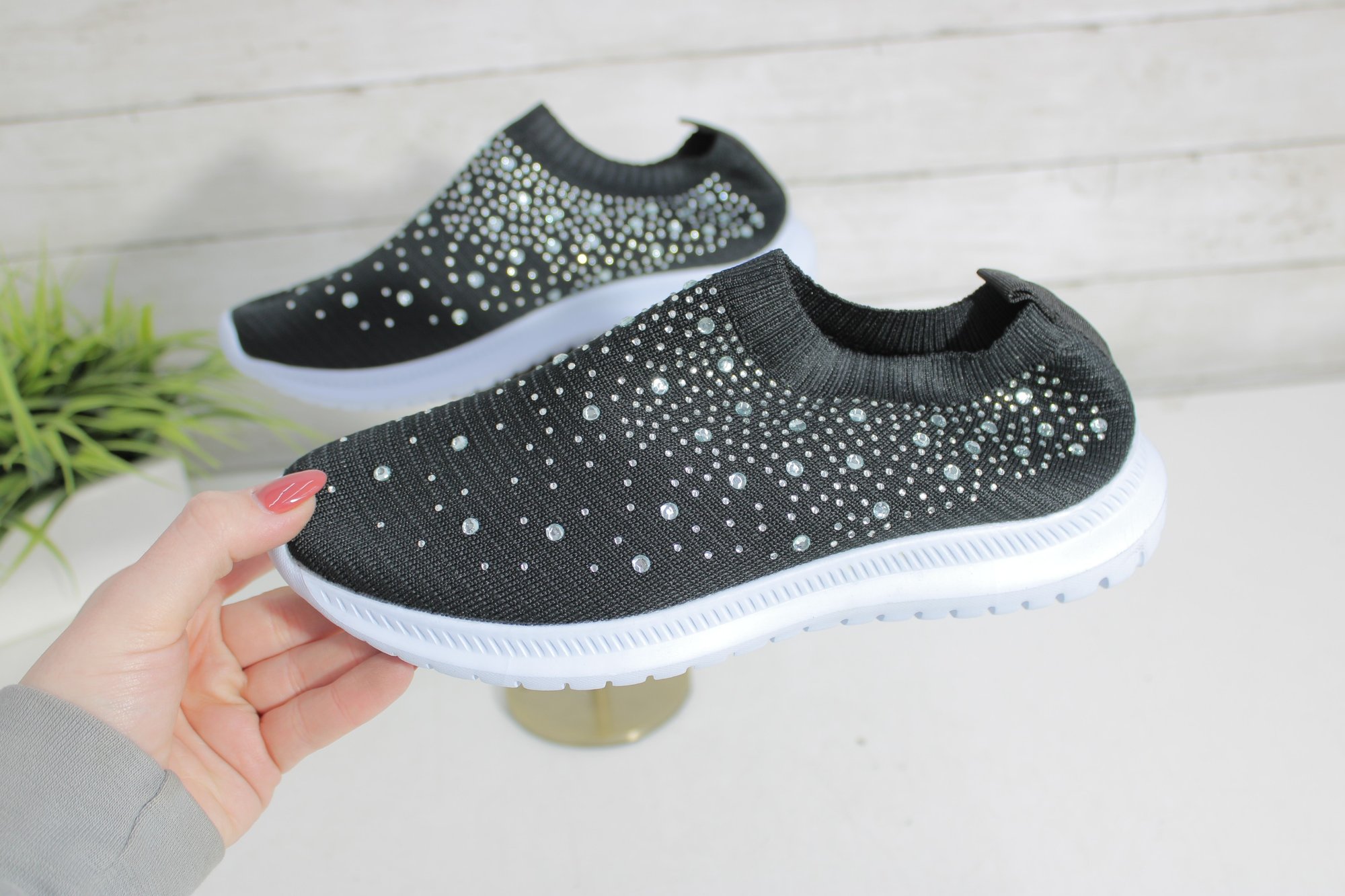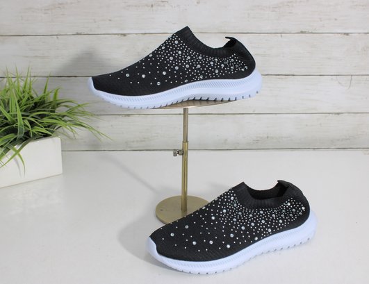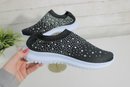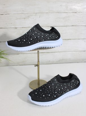 Chic, lightweight slip-on sneakers featuring an all-over rhinestone sparkle design. These shoes combine comfort with eye-catching style, perfect for everyday wear, travel, or adding a touch of glam to casual outfits.