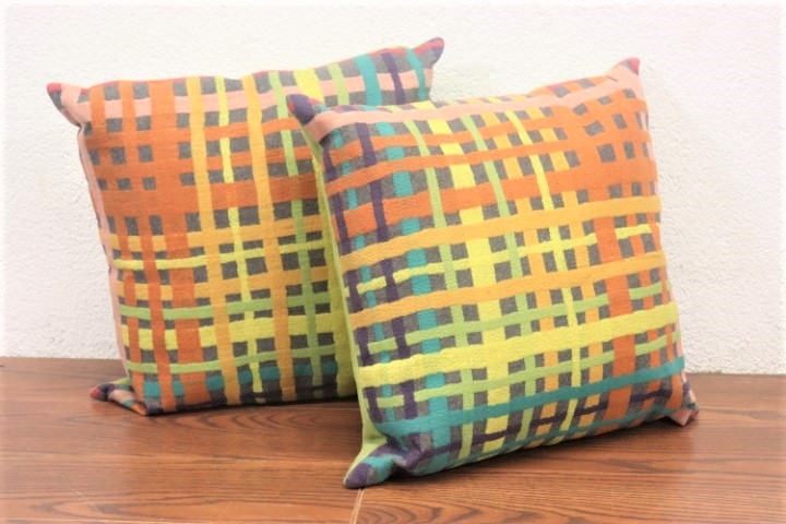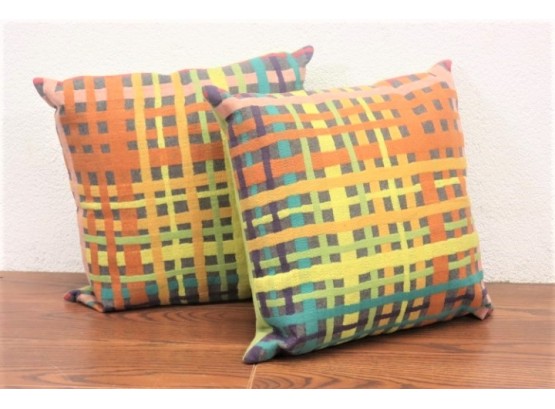 A Pair Of Technicolor Dazzle Plaid Throw Pillows