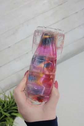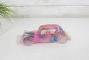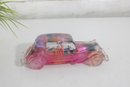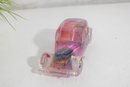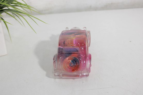 Unique and eye-catching Nachtmann “Magic Crystal” art glass paperweight in the form of a vintage-style automobile. Measuring approximately 7 inches long, this sculptural piece features a beautifully detailed car design crafted in clear crystal with vibrant iridescent pink, purple, and blue tones.
