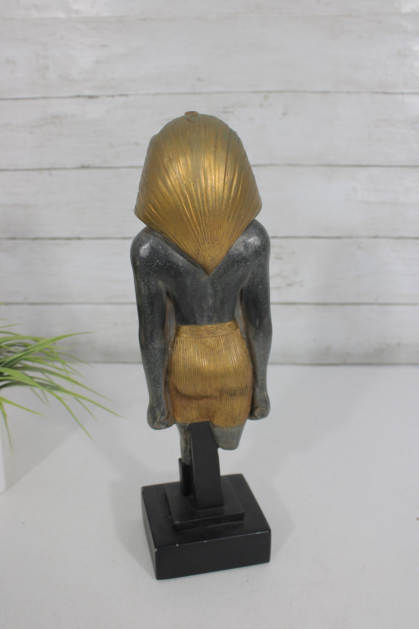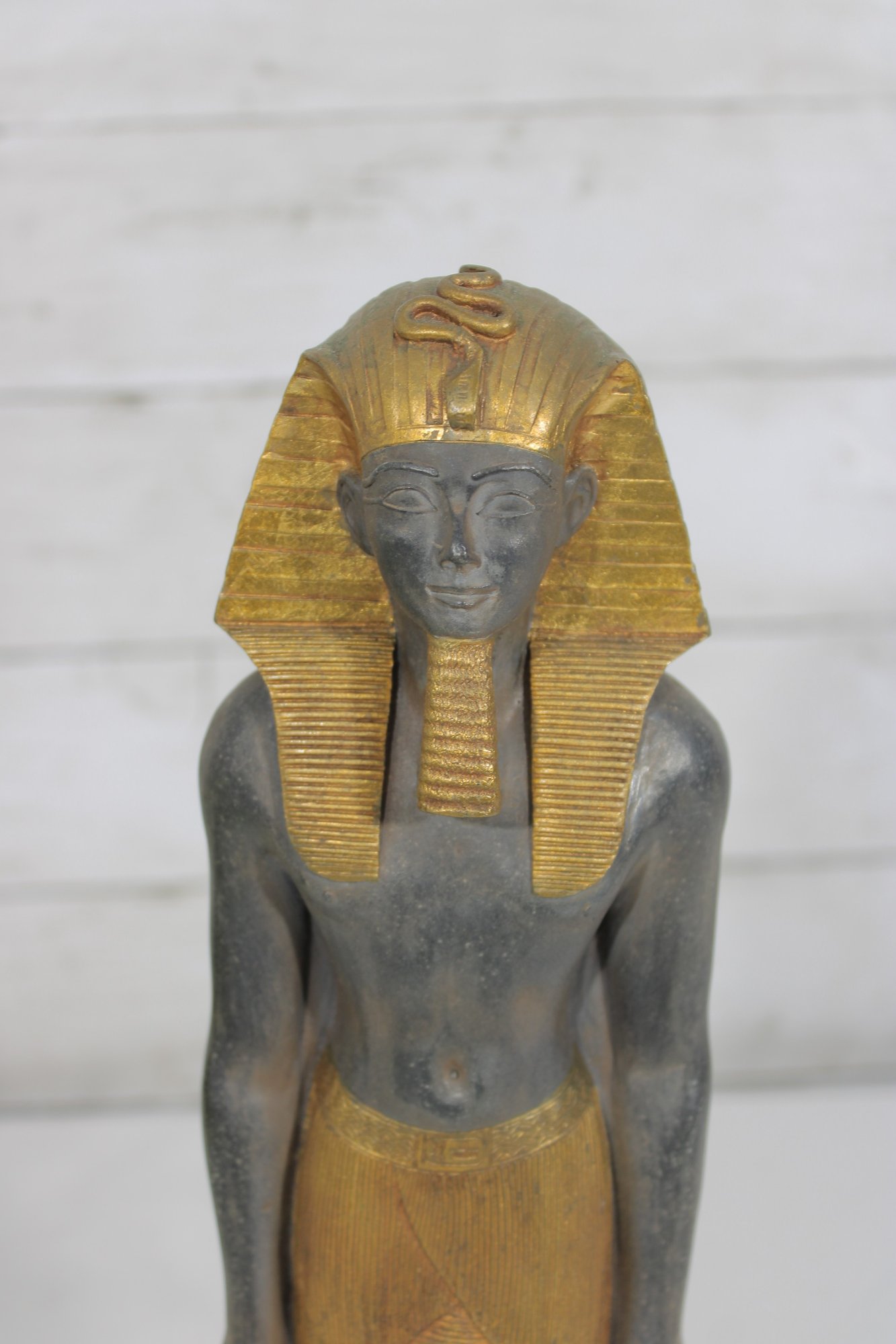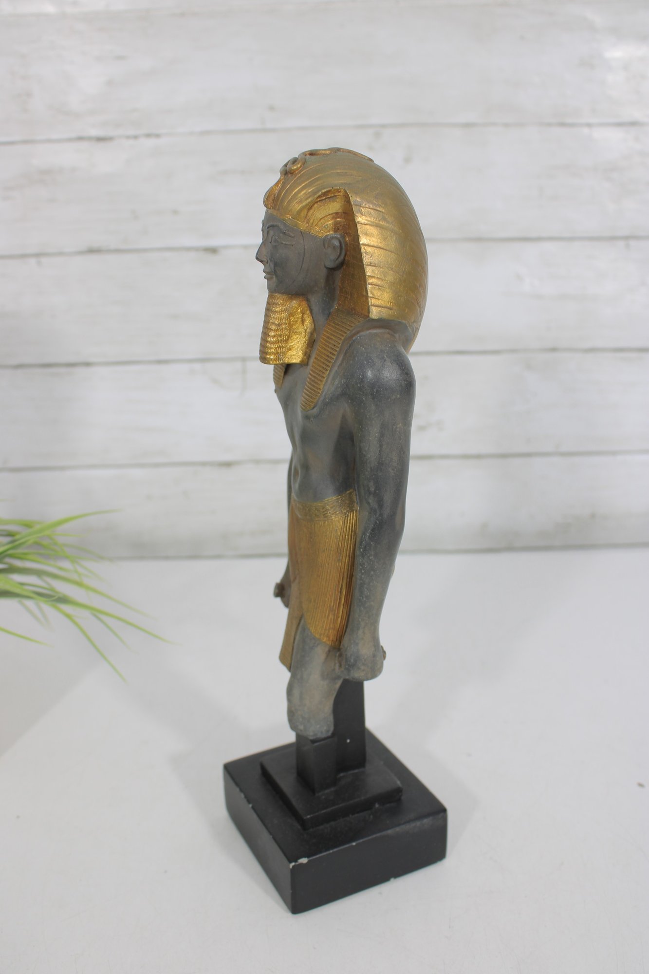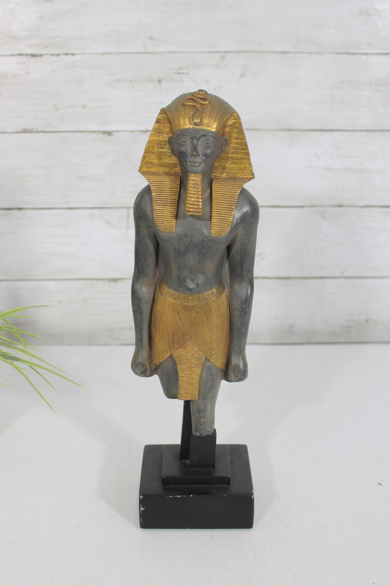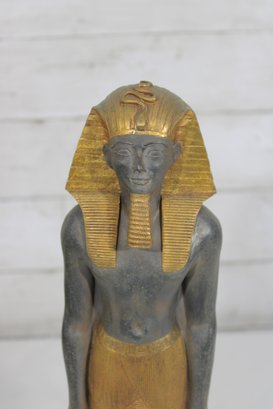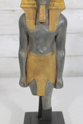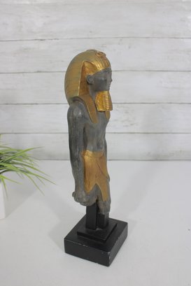 Striking Egyptian-style statue of Ramesses III depicted as a High Priest, produced by Artisans Guild International (AGI). Standing approximately 13 inches tall, this decorative sculpture features a classic ancient Egyptian stance with finely detailed facial features, traditional headdress, and stylized kilt.
